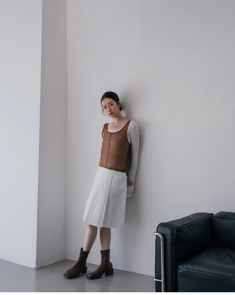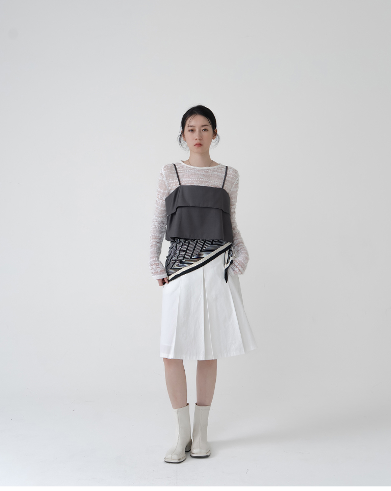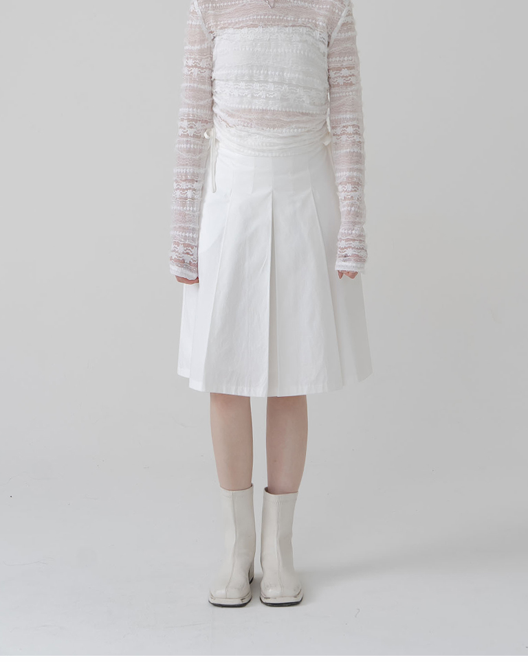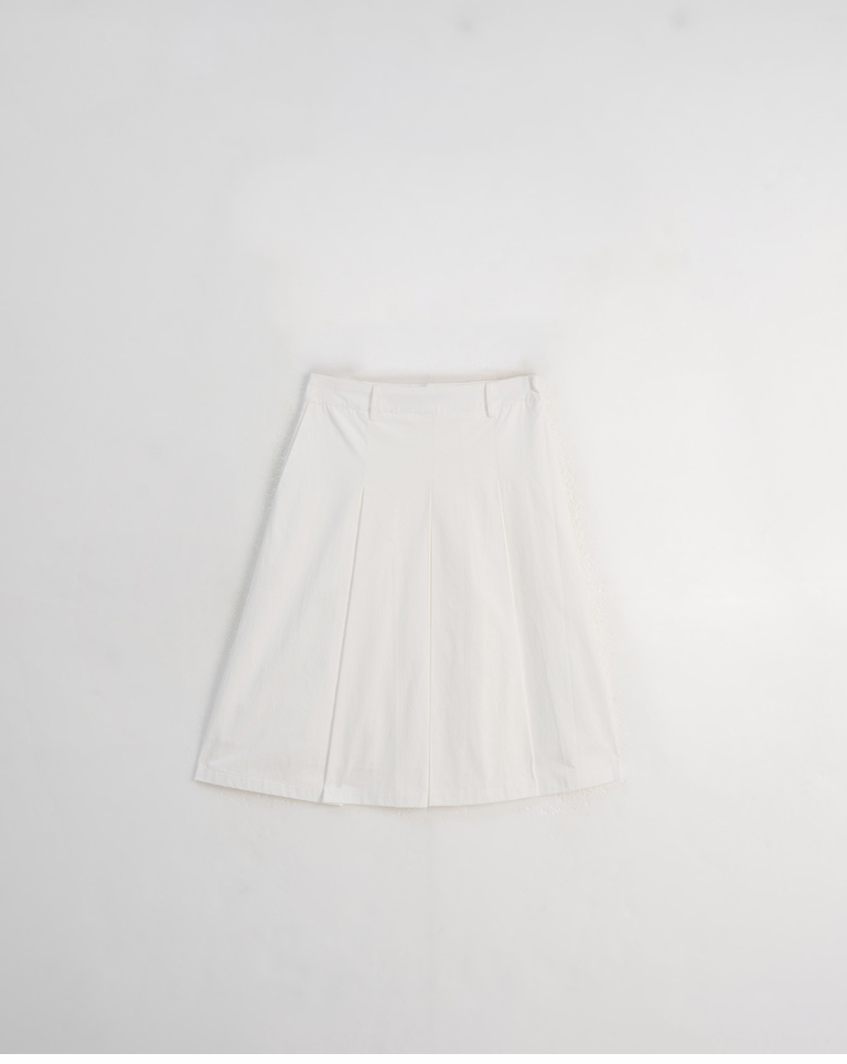 Simple Pleated High Waist Short Skirt - Off-WhiteS/M/L