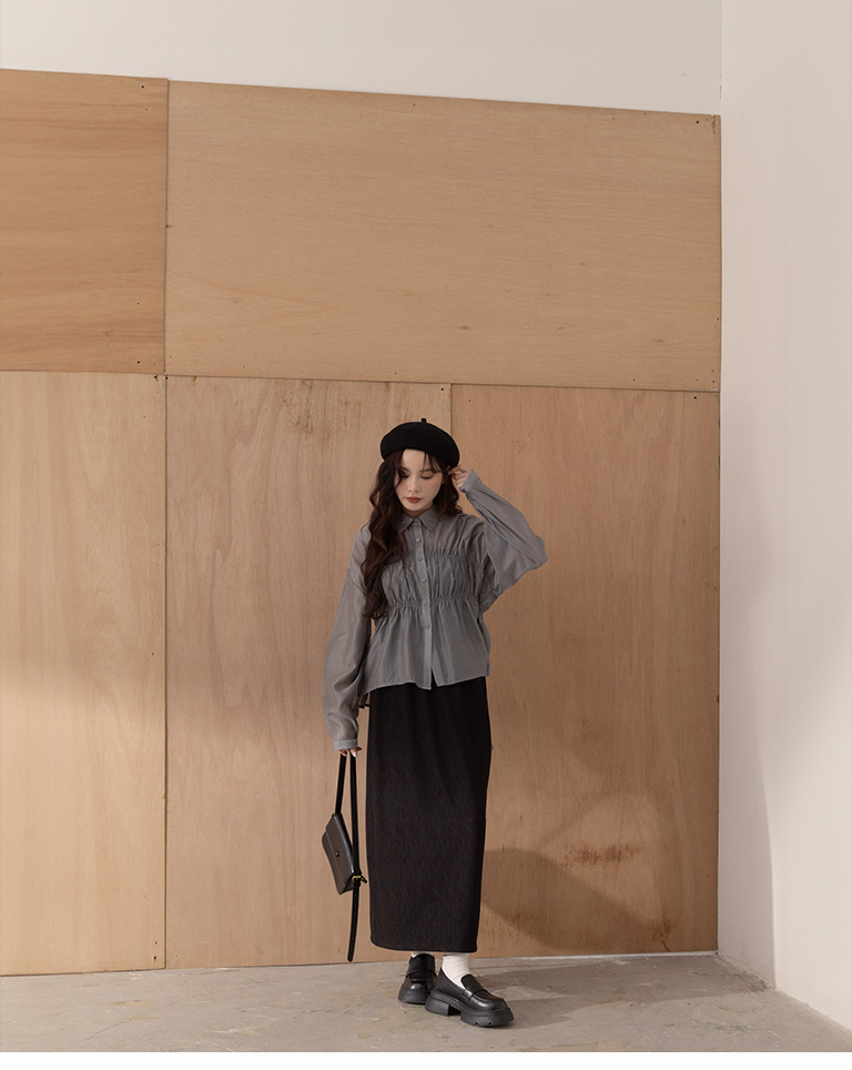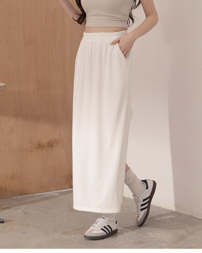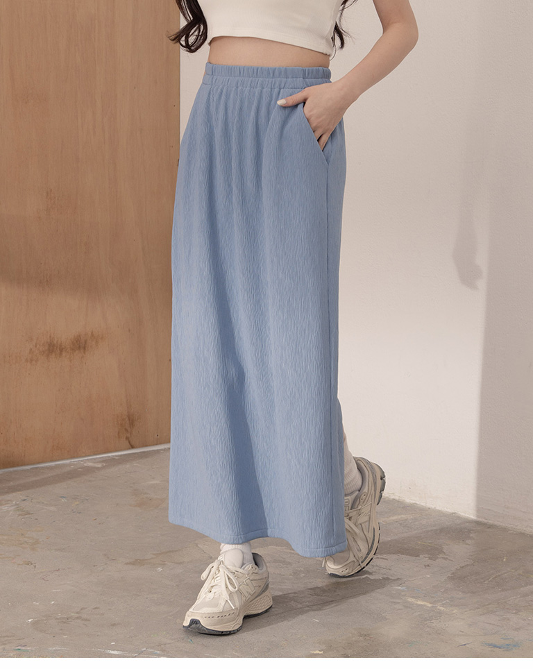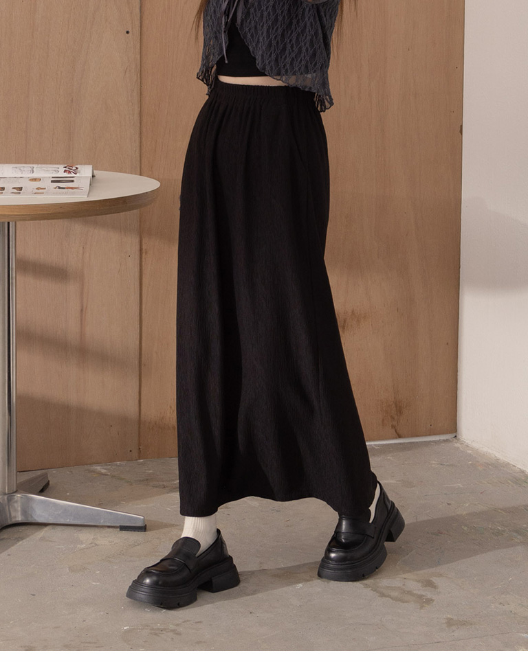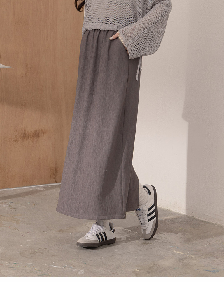 Wrinkled textured back slit straight long skirt, four colors for sale