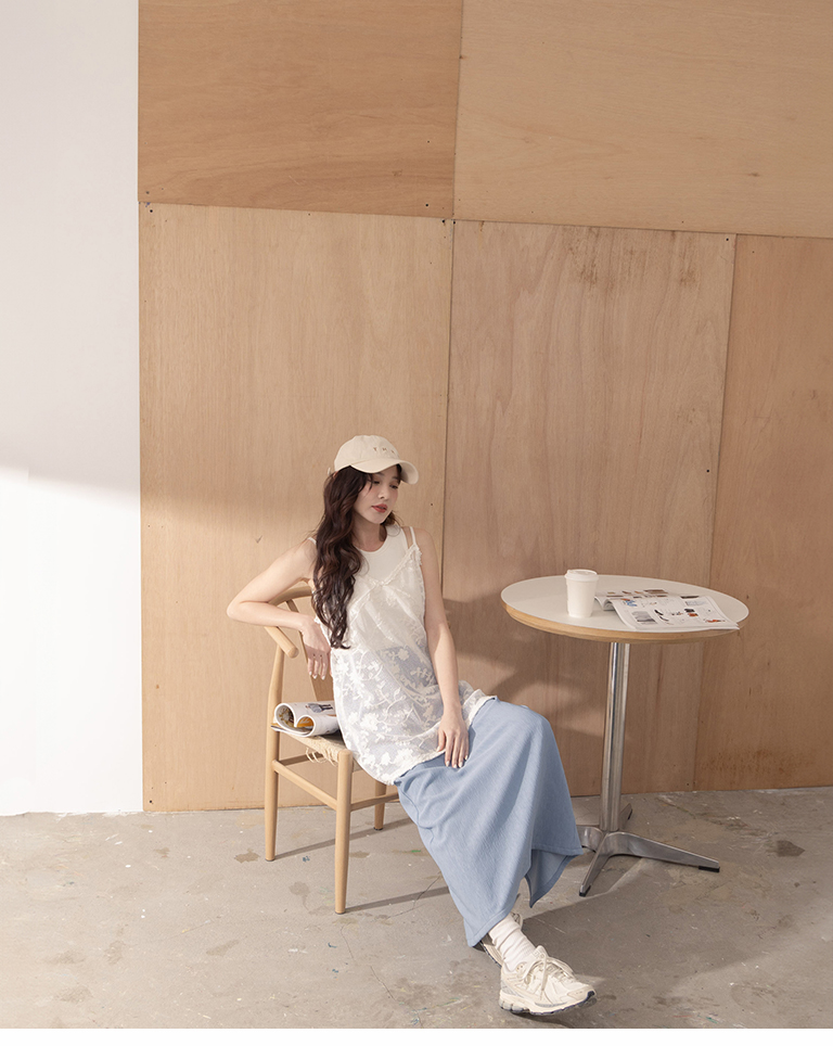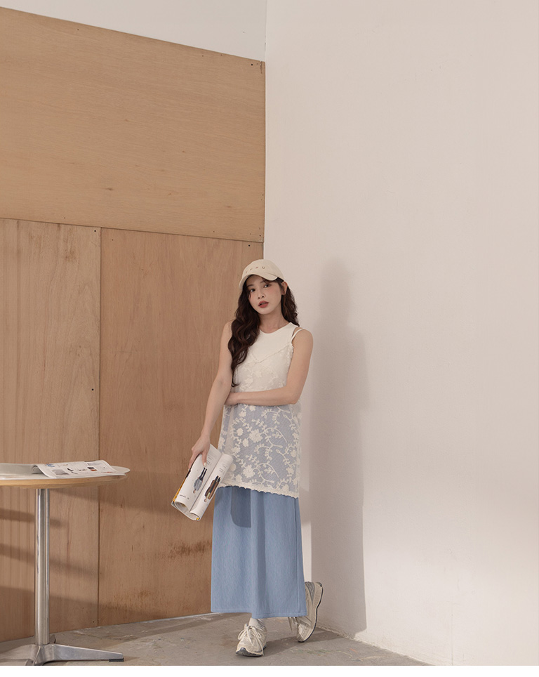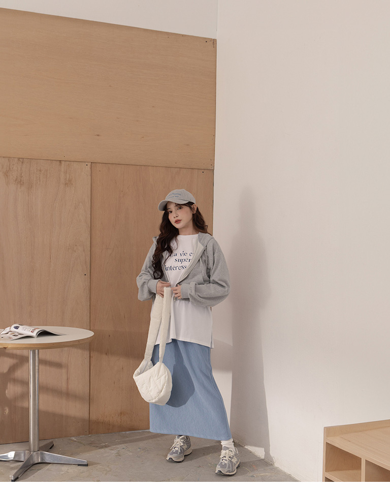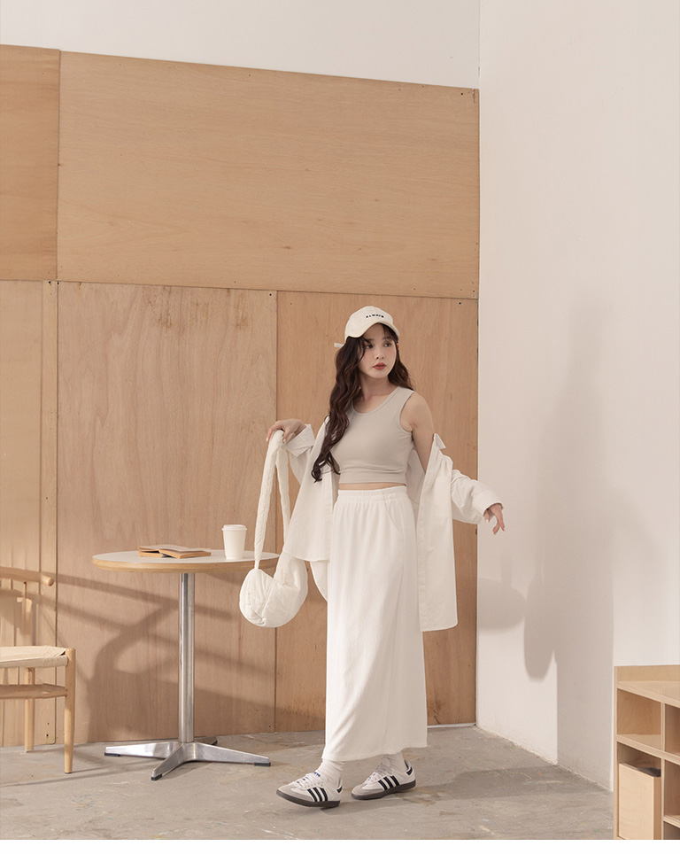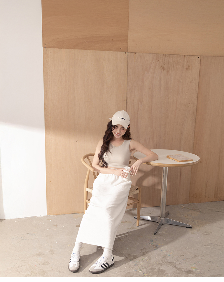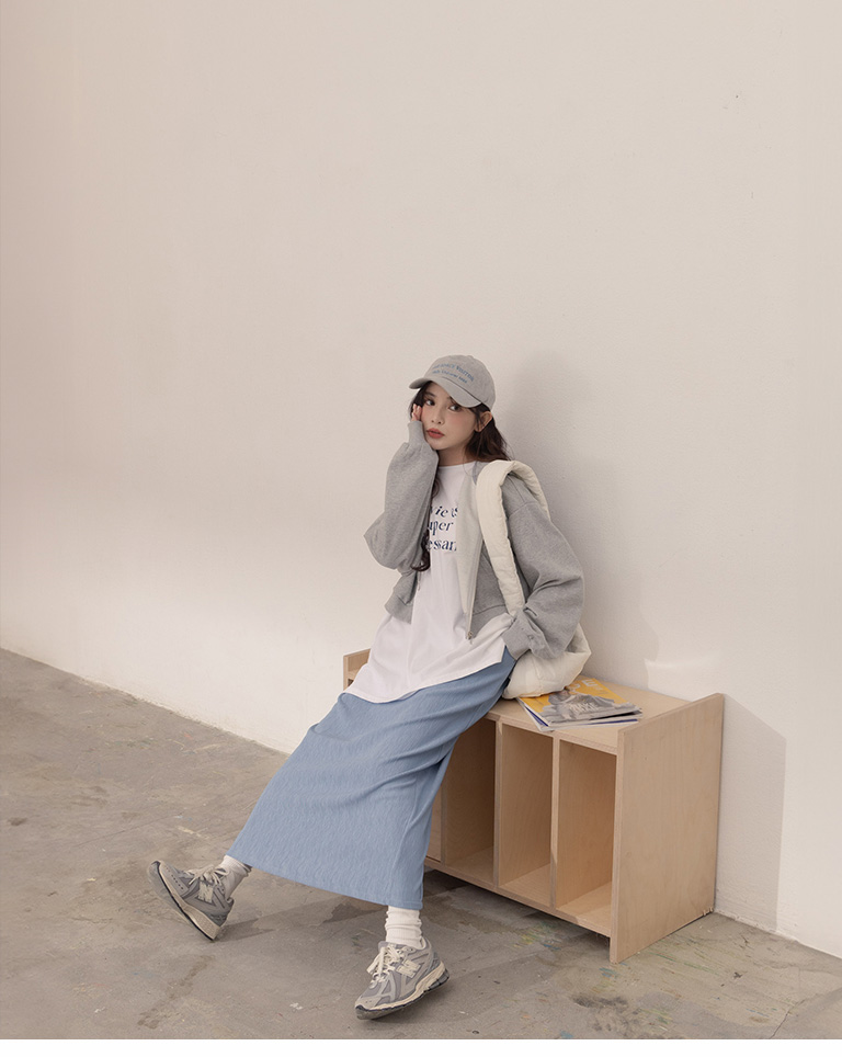 Wrinkled textured back slit straight long skirt, four colors for sale