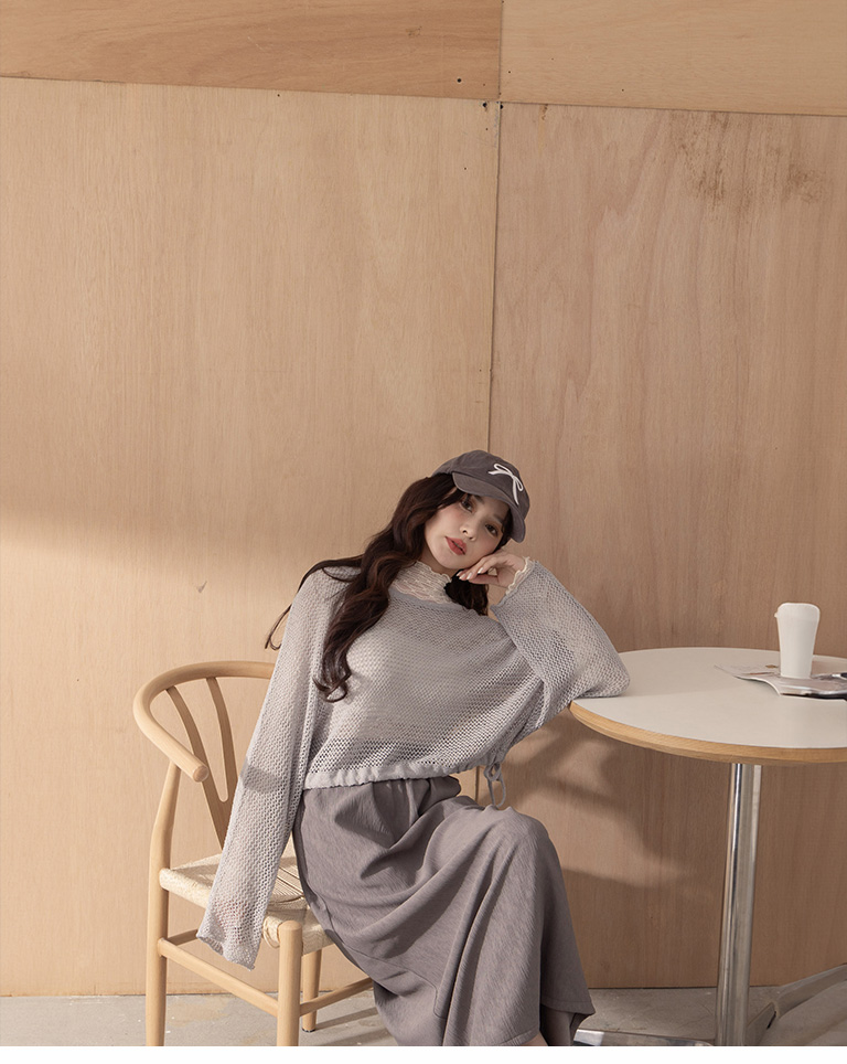 您詢問的商品為【01098739下擺抽繩造型洞洞針織上衣 三色售】,謝謝!