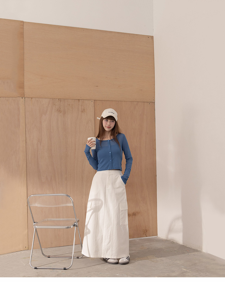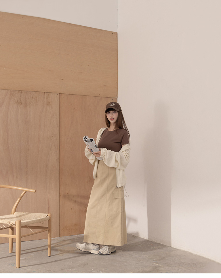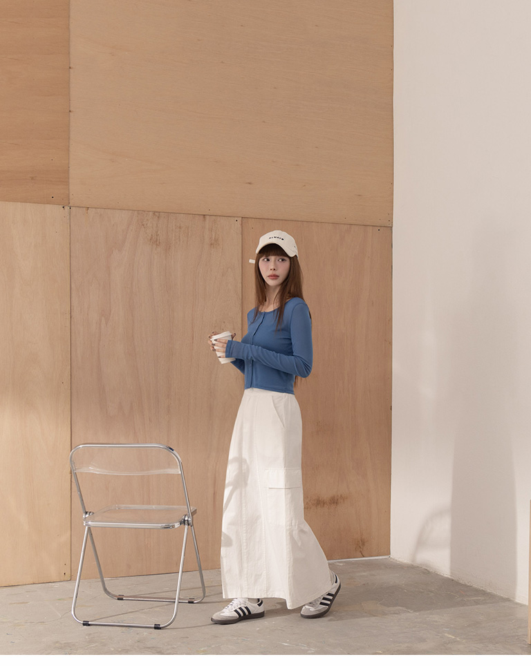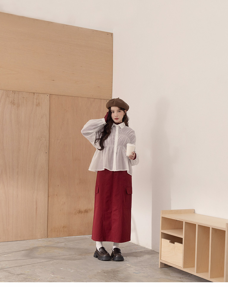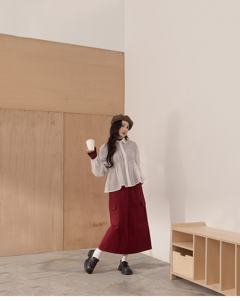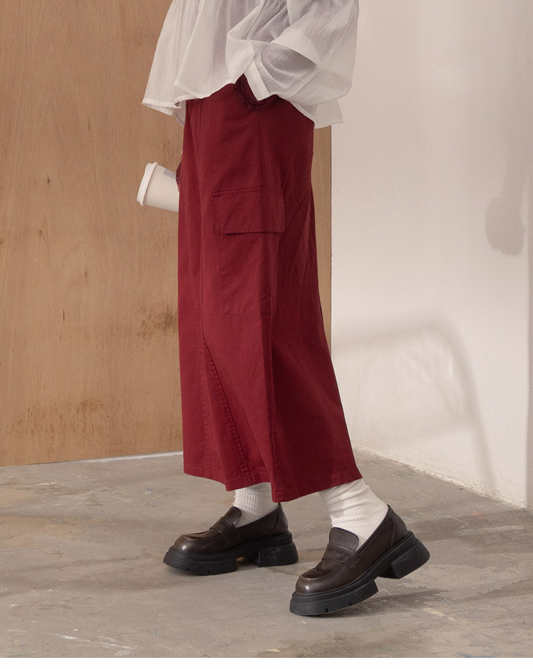 Plain large pockets cut-out work dress long skirt four colors for sale S/M