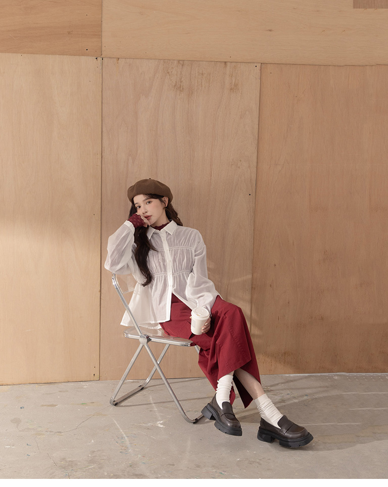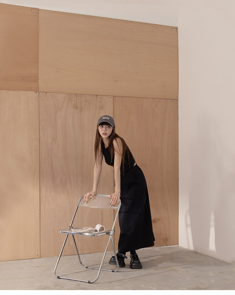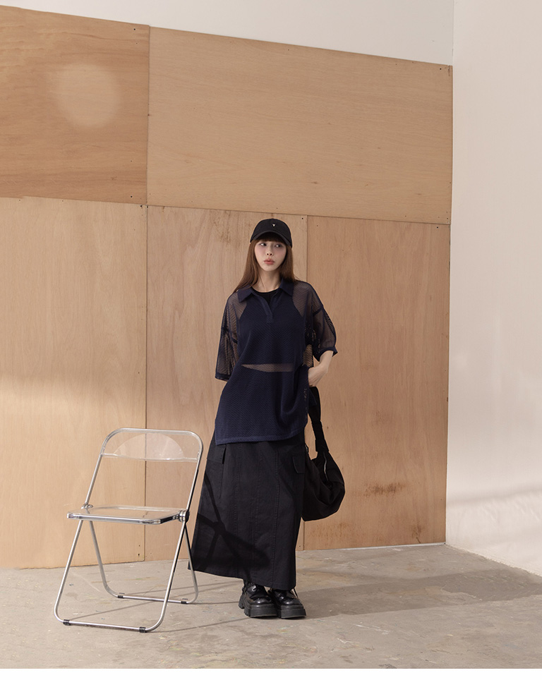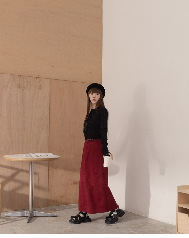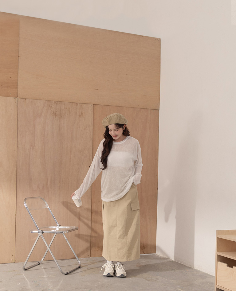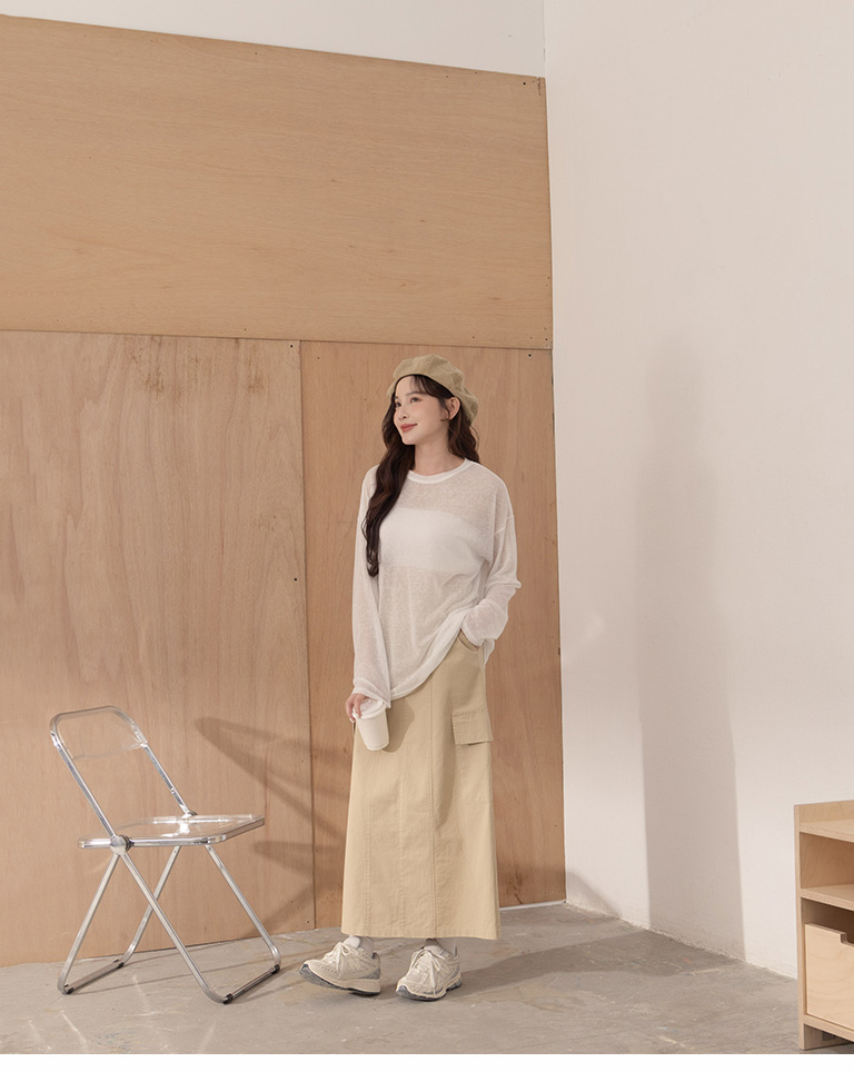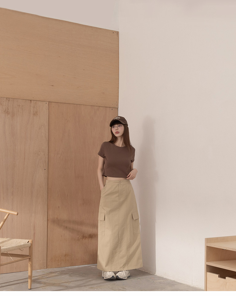 Plain large pockets cut-out work dress long skirt four colors for sale S/M