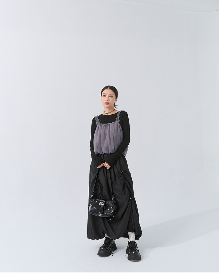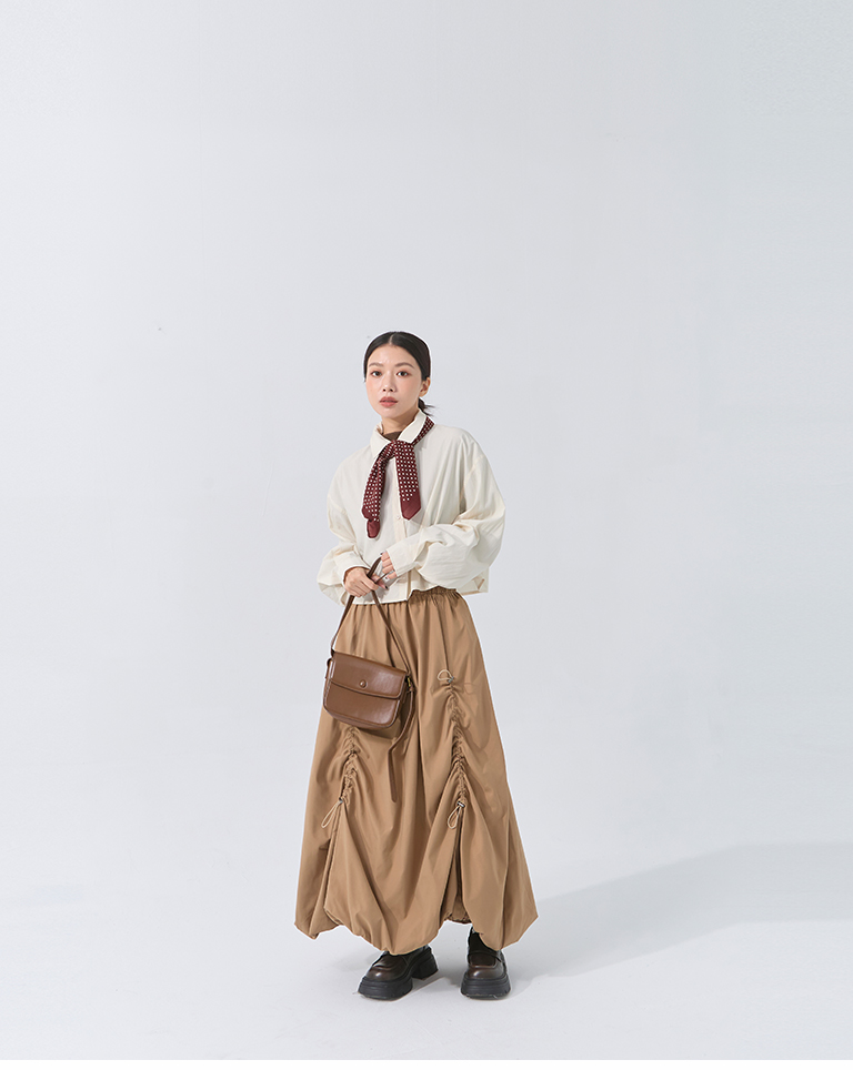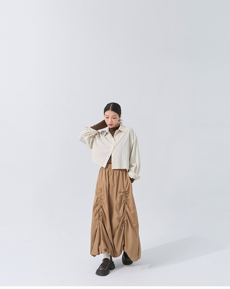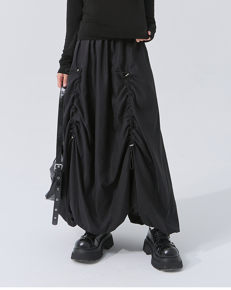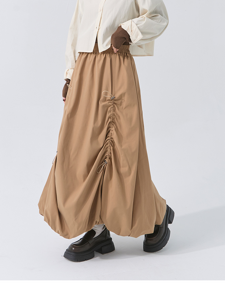 Pleated hem flower bud maxi skirt, available in two colors