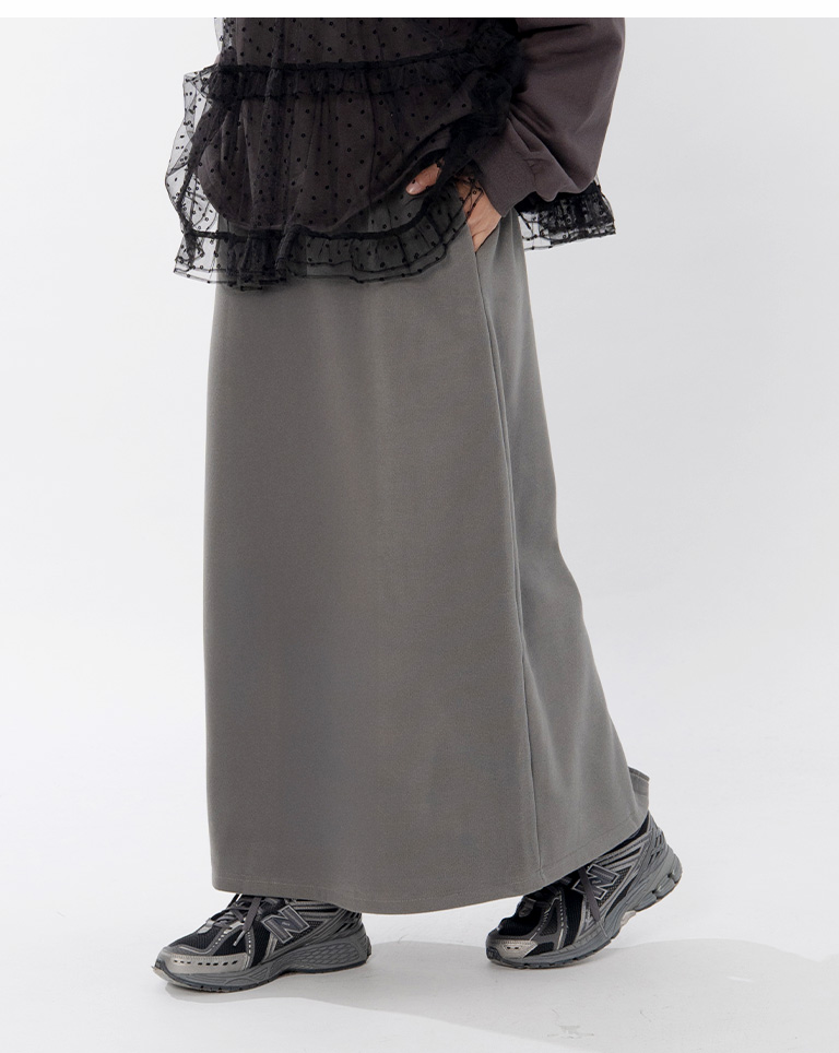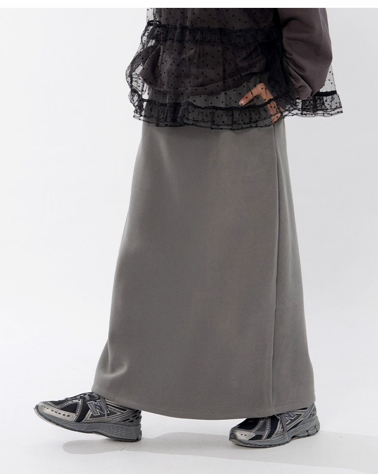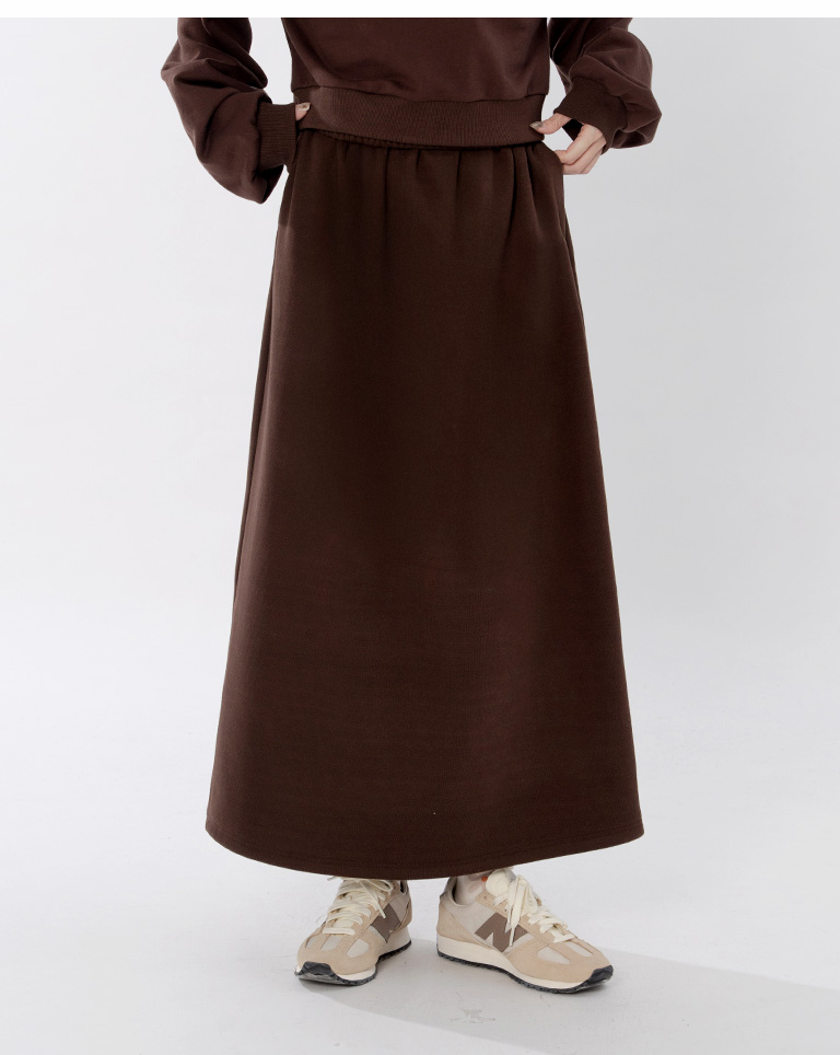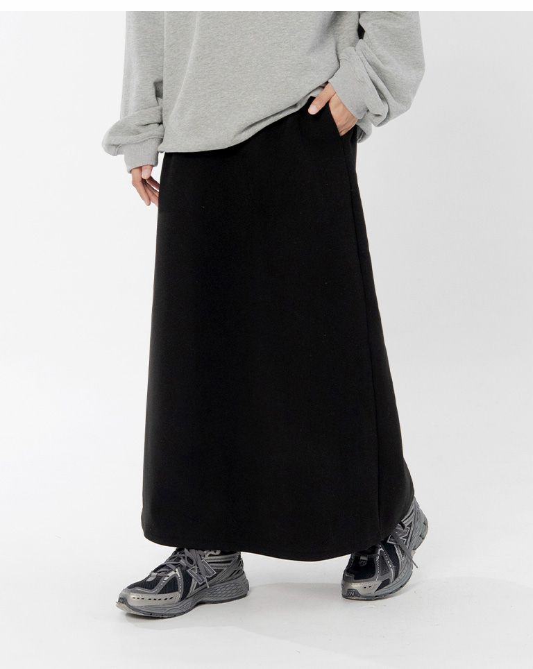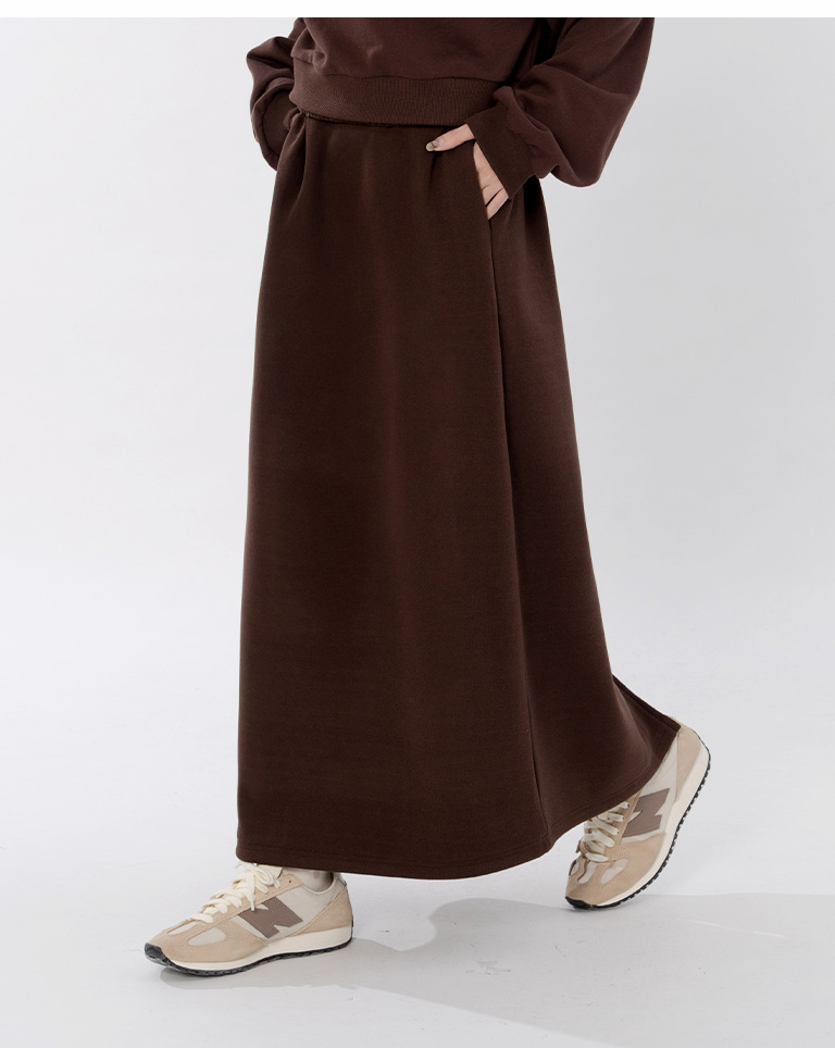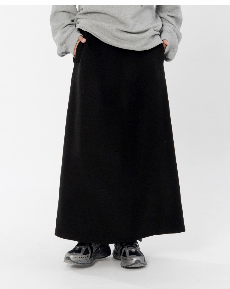 Warm brushed fleece-lined slit maxi skirt, available in four colors, sizes S/M/L.