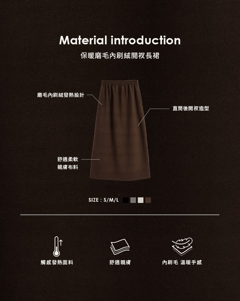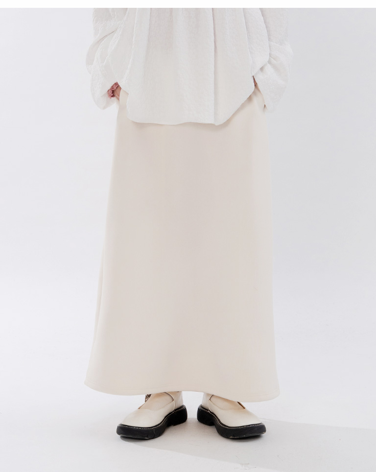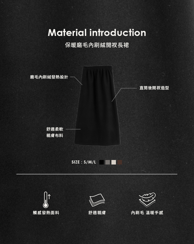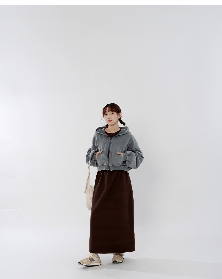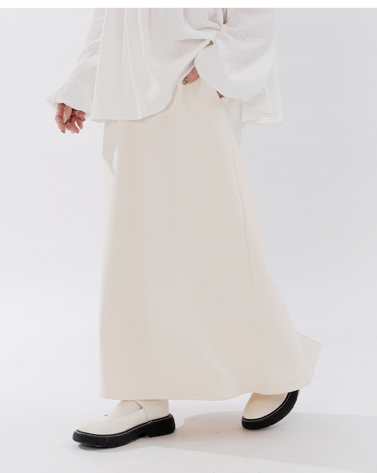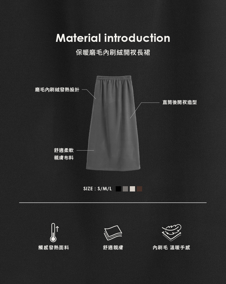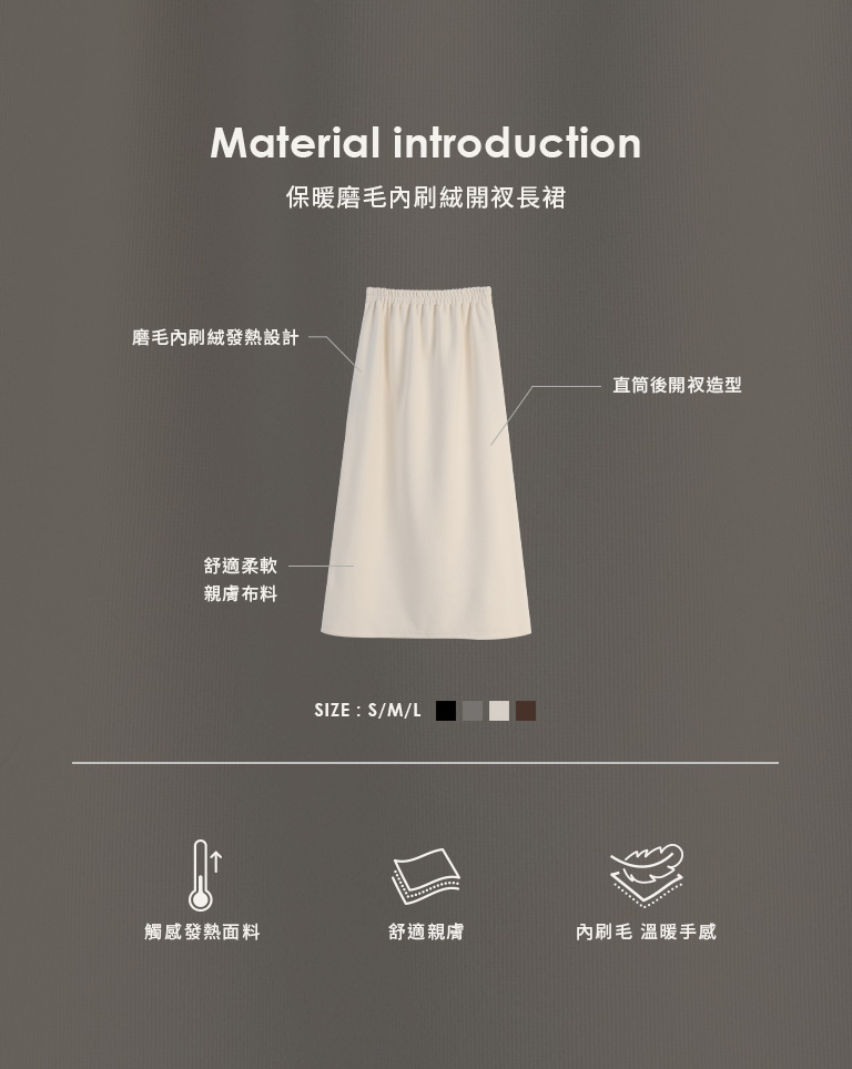 Warm brushed fleece-lined slit maxi skirt, available in four colors, sizes S/M/L.
