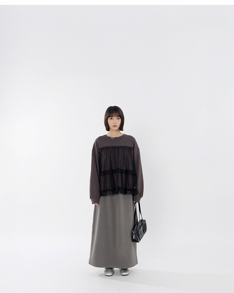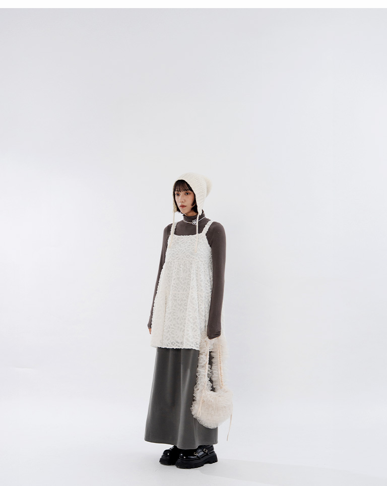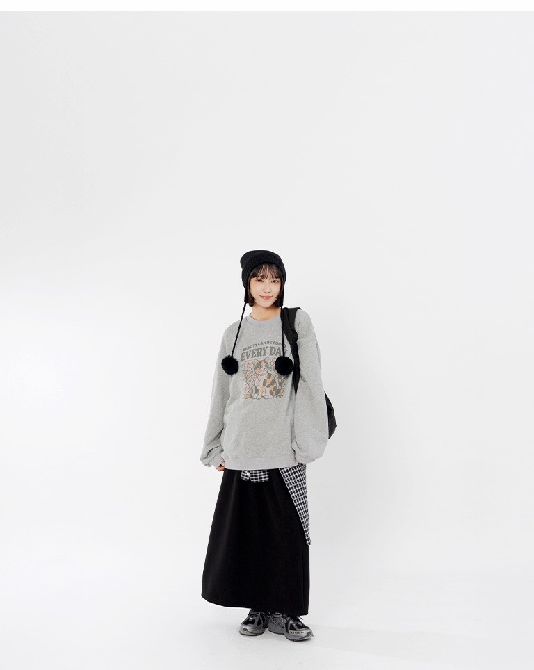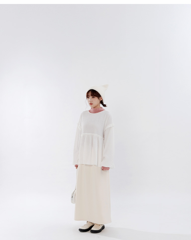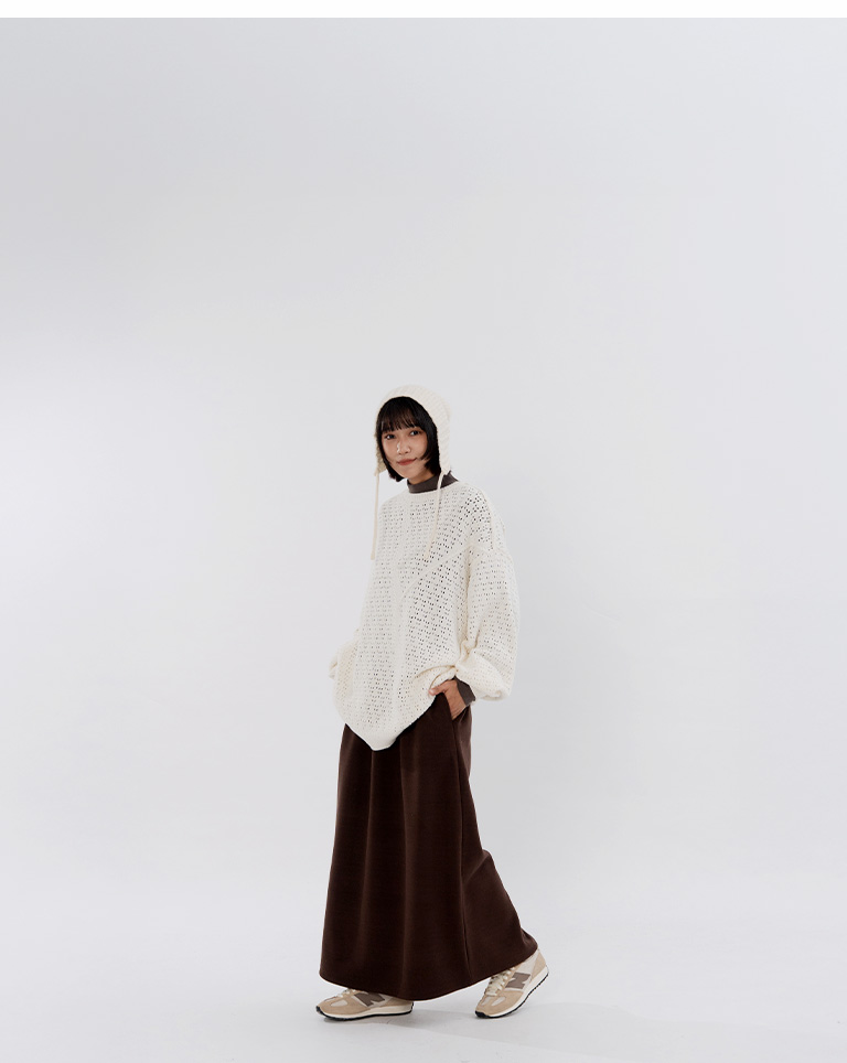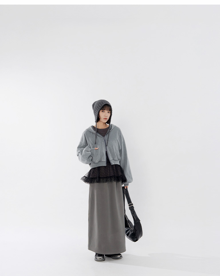 Warm brushed fleece-lined slit maxi skirt, available in four colors, sizes S/M/L.