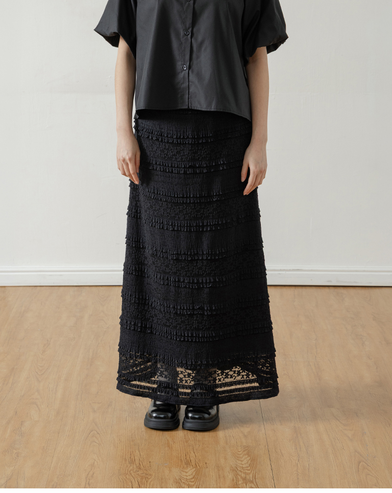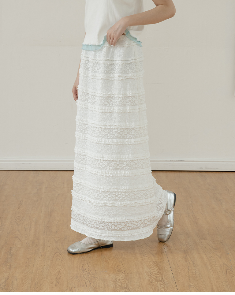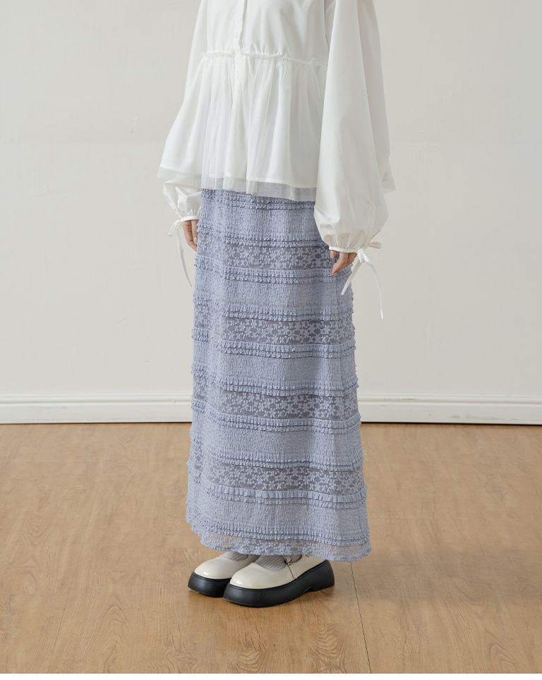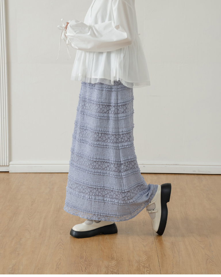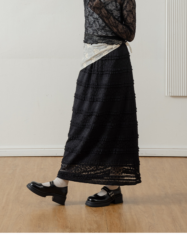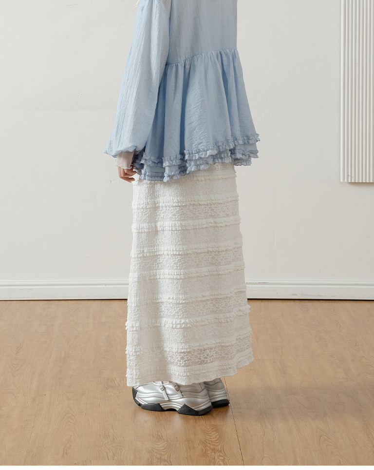 Multi-layered lotus leaf jacquard hollow-out long dress, available in three colors, S/M.