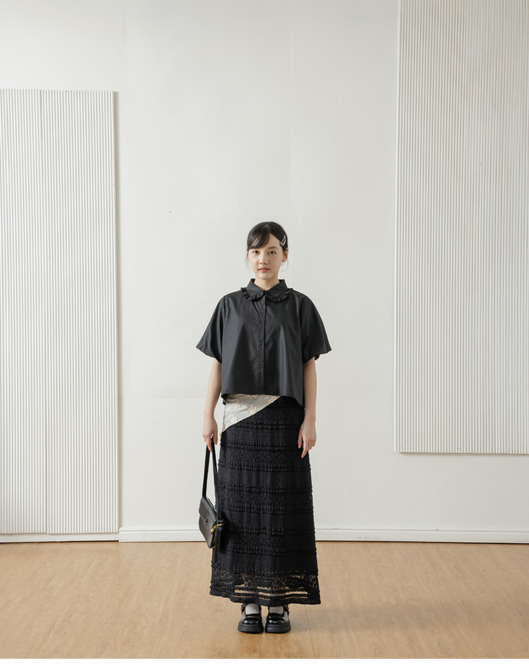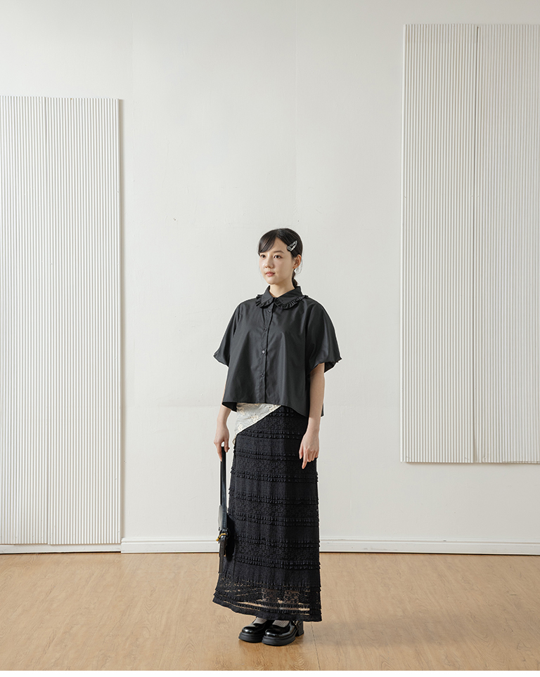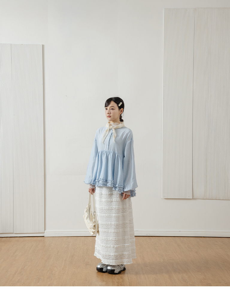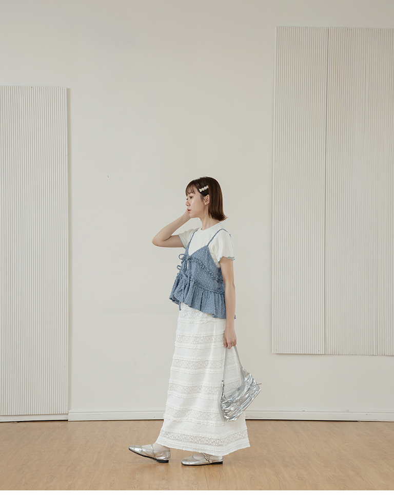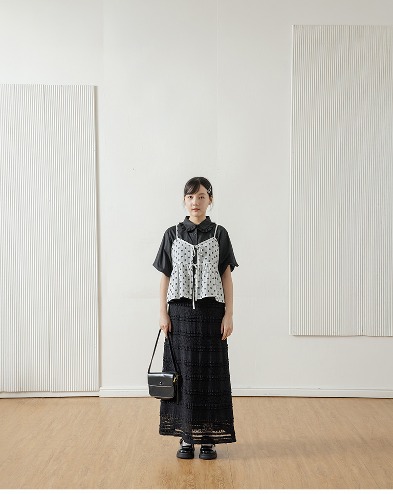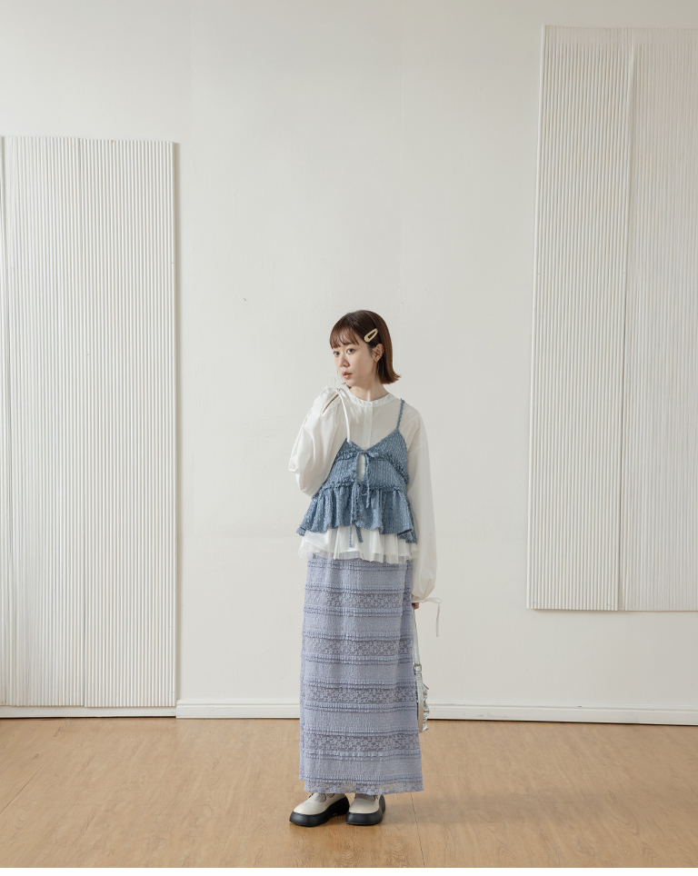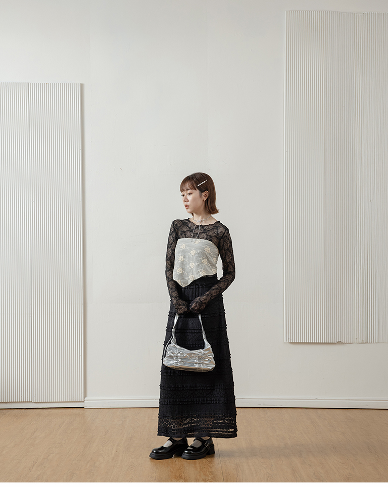 Multi-layered lotus leaf jacquard hollow-out long dress, available in three colors, S/M.