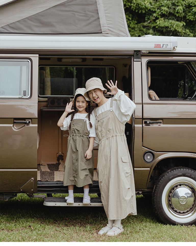 Children's Clothing Parent-Child Series Pocket Drawstring Suspender Skirt Sold in Two Colors M-XL