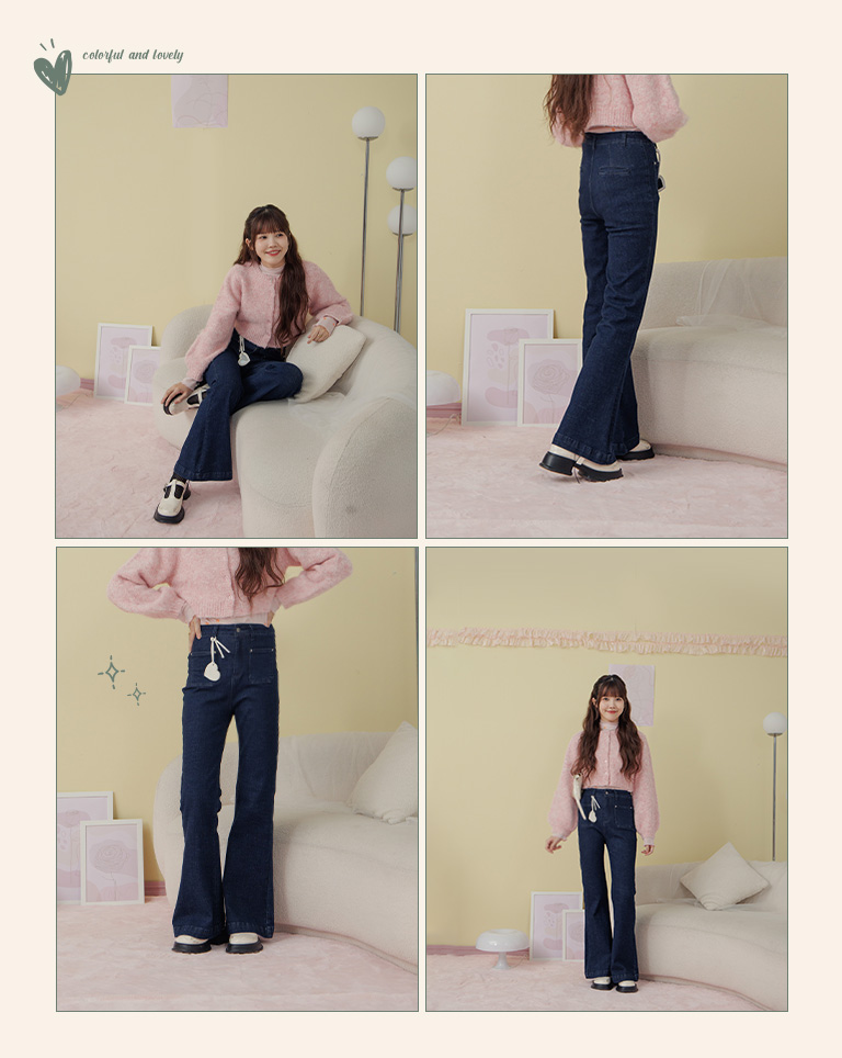 GINNY co-branded flared denim trousers with front pockets S-L+