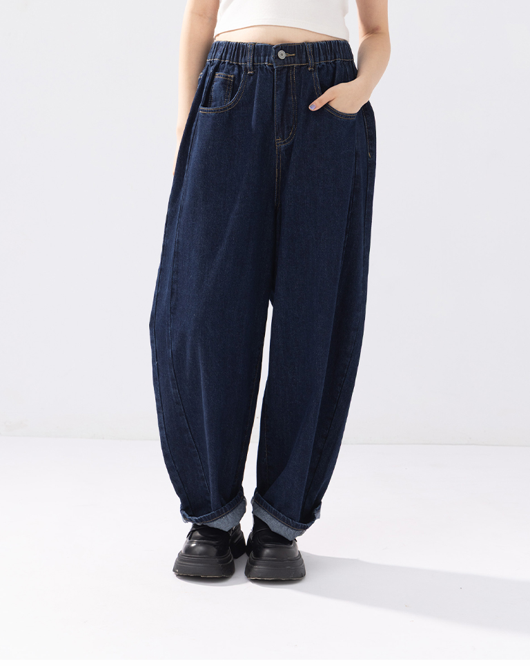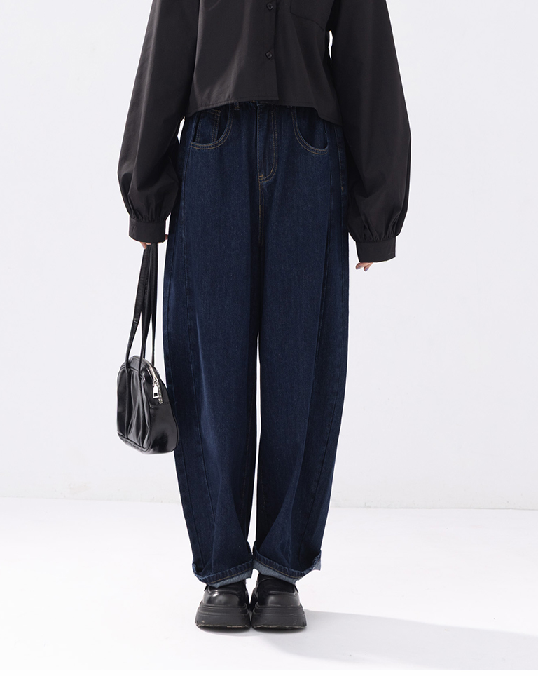 Side-cut denim cocoon trousers S/M