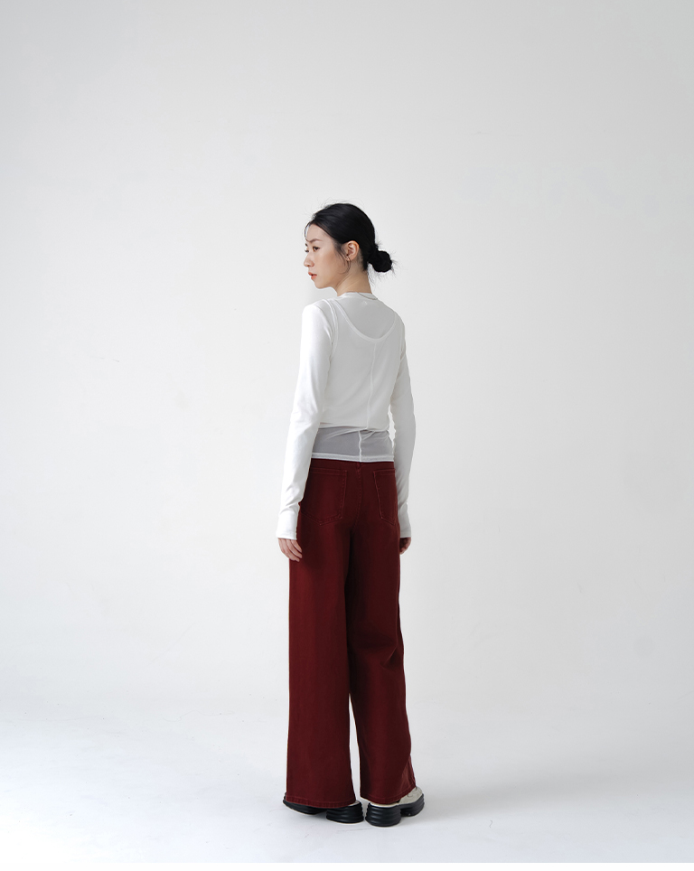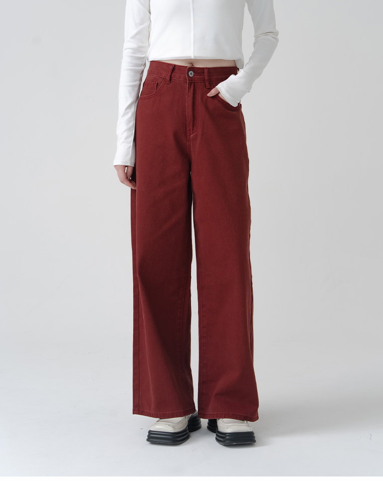 Simple Washed Design Wide Fit Denim Pants - RedS/M/L