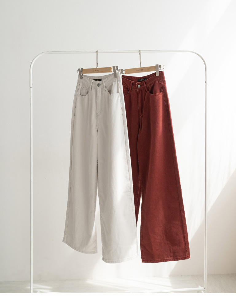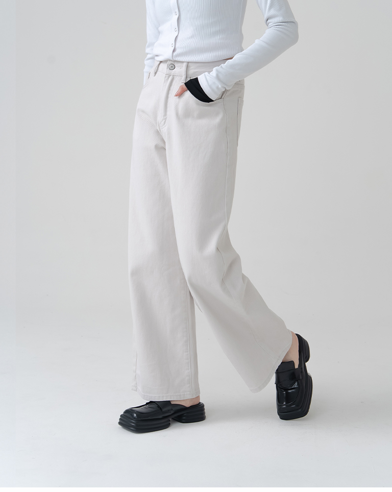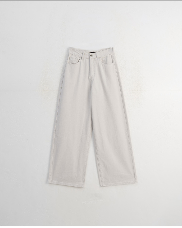 Simple Washed Design Wide-Cut Denim Pants - Apricot GrayS/M/L