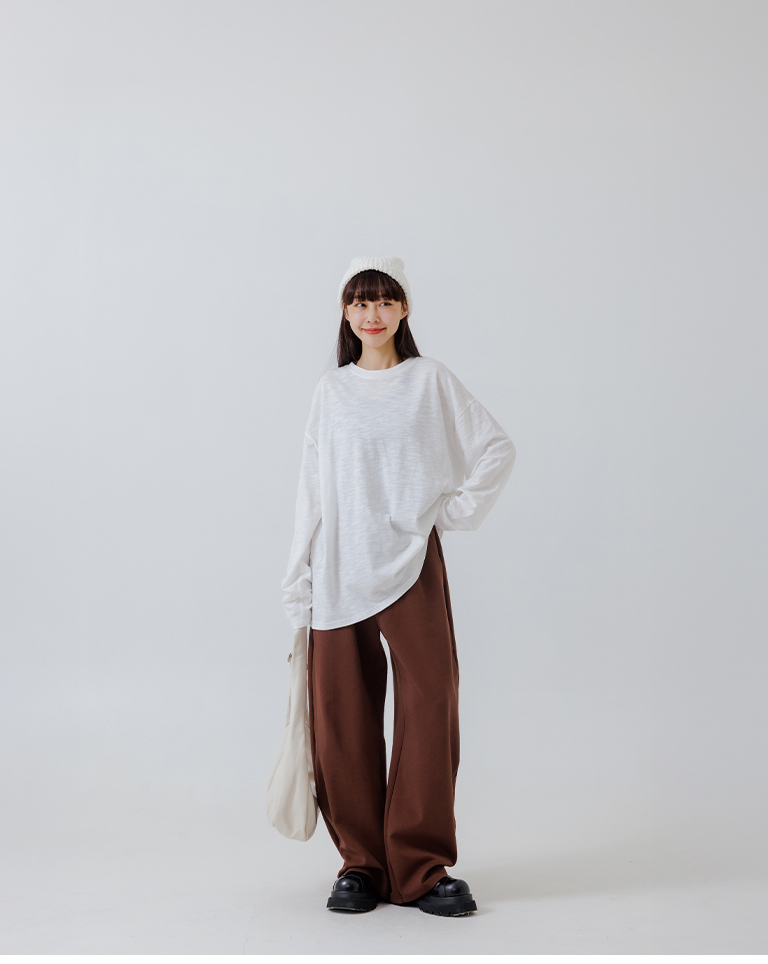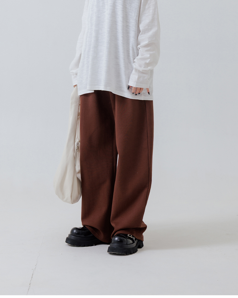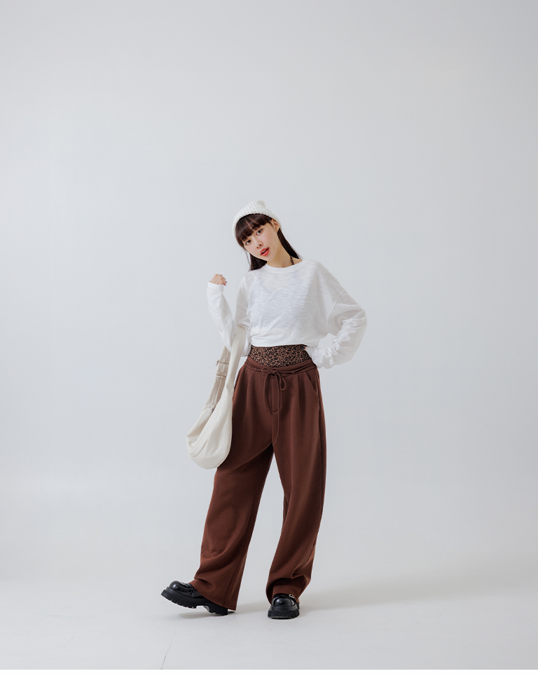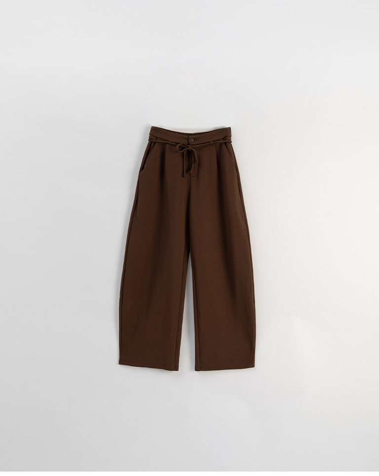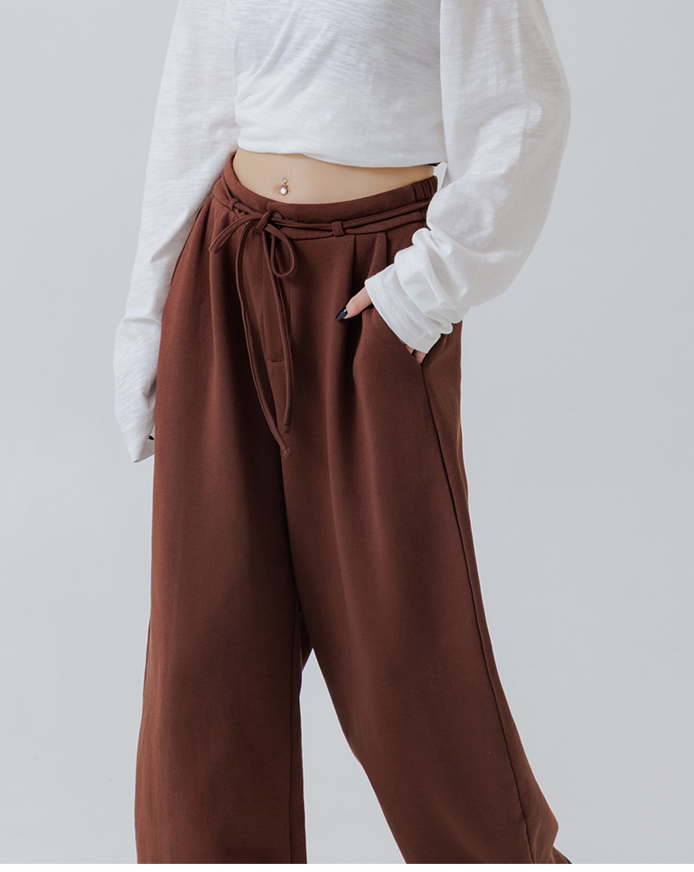 Air-cotton drawstring wide-leg trousers - brown S/M/L