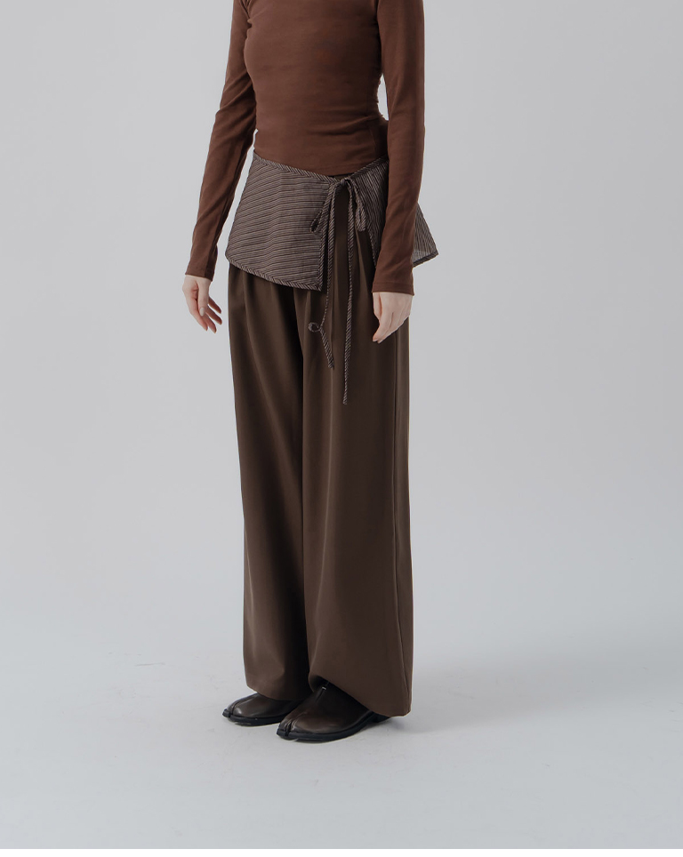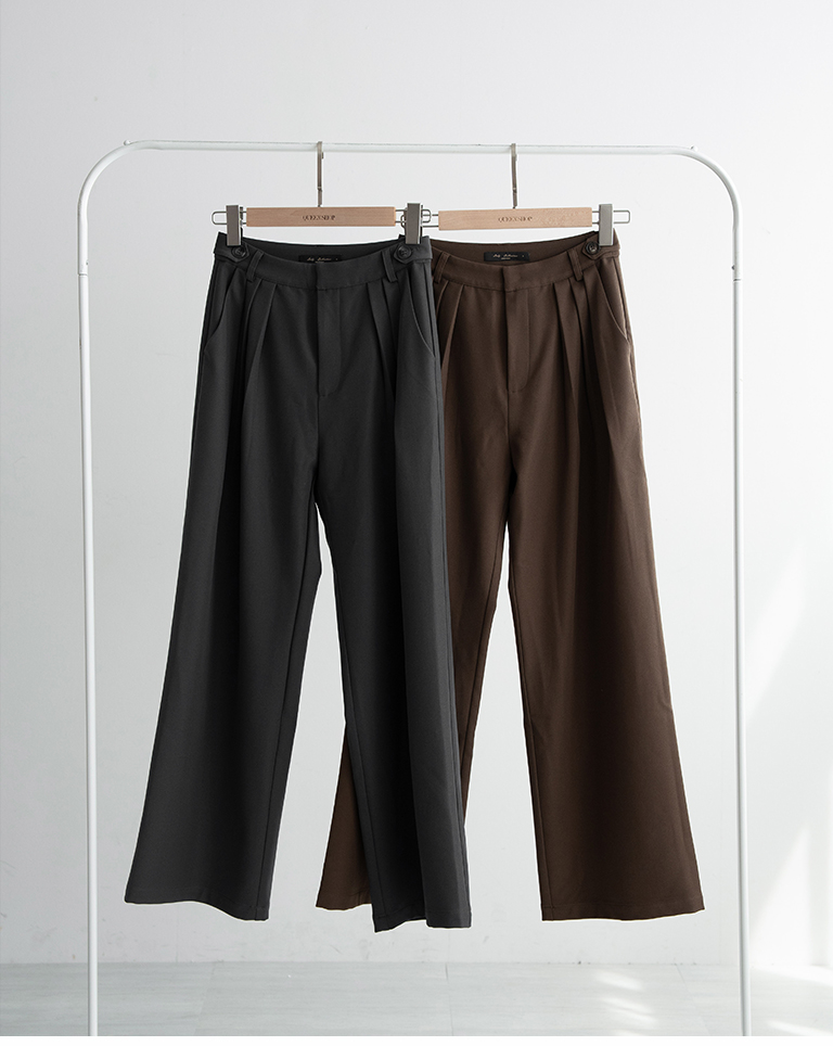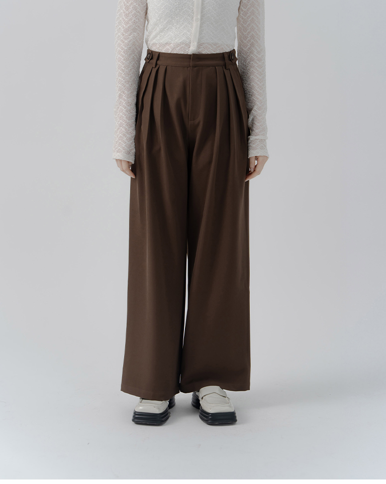 Side waist buckle decorated pleated suit trousers - coffee