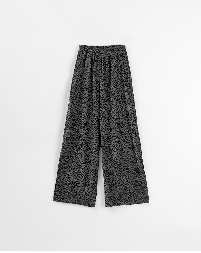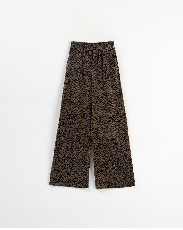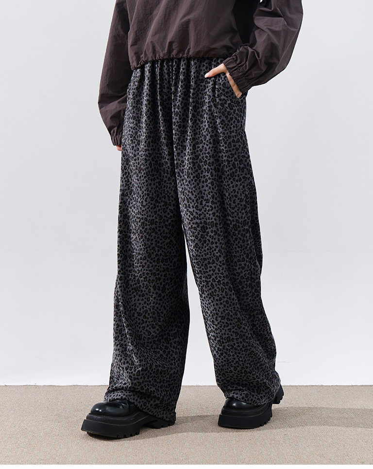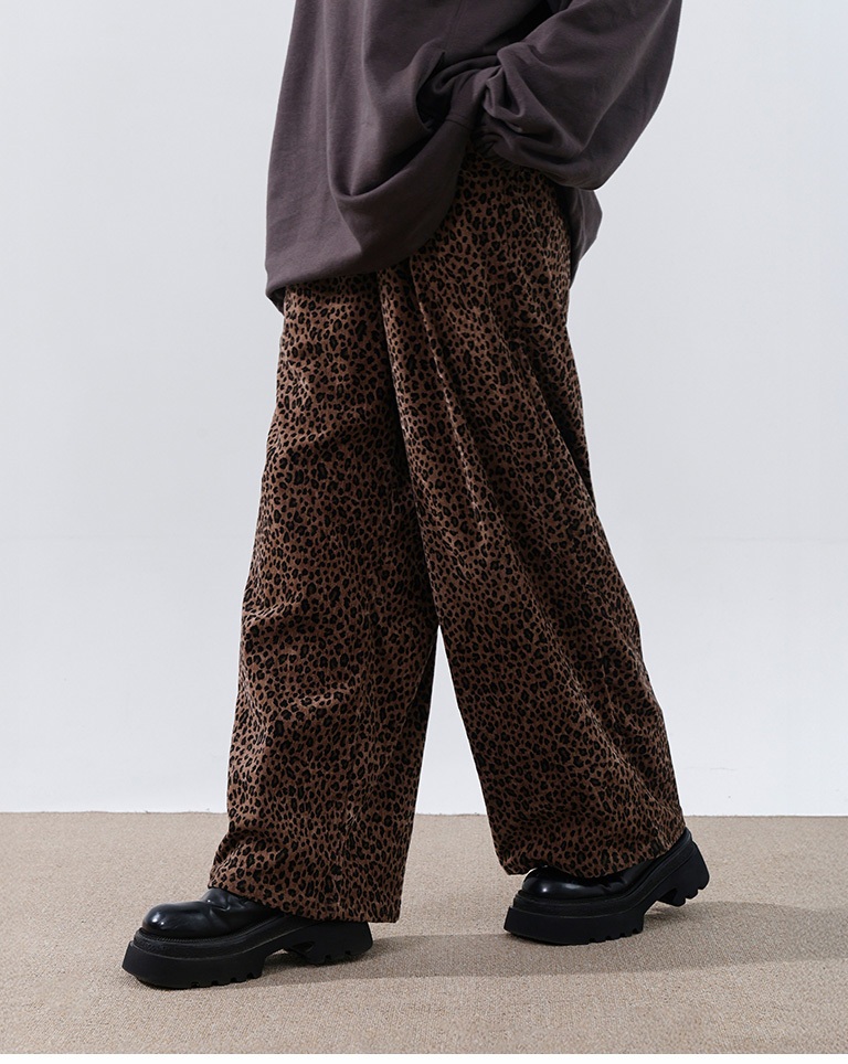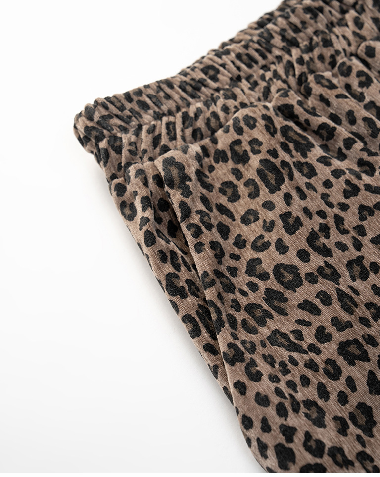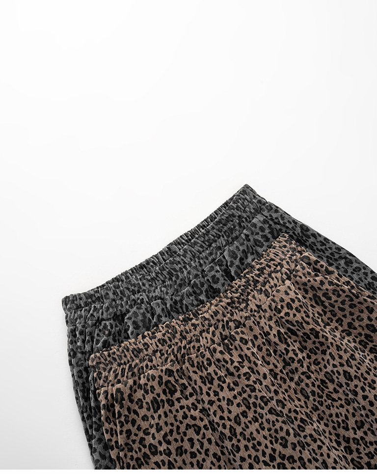 Leopard print glossy suede trousers, available in two colors, S/M.