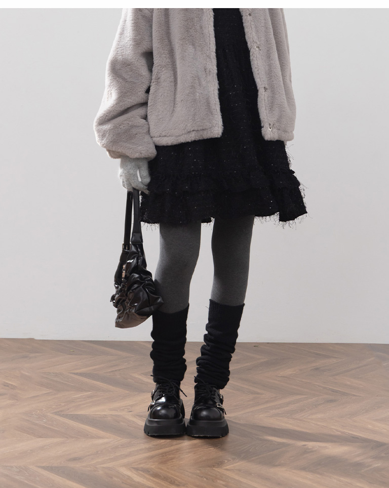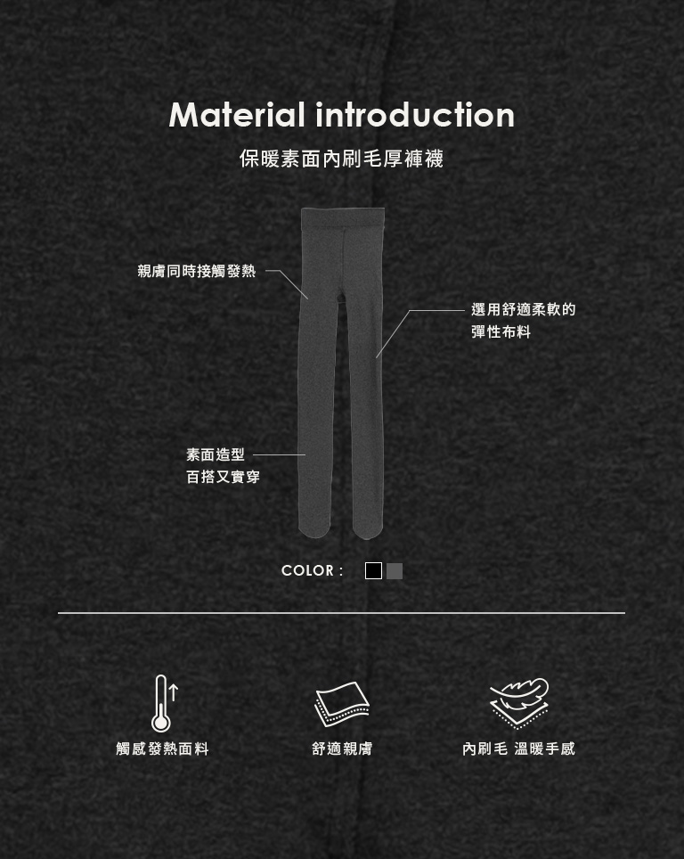 Warm, plain, brushed-fleck thick tights, available in two colors.