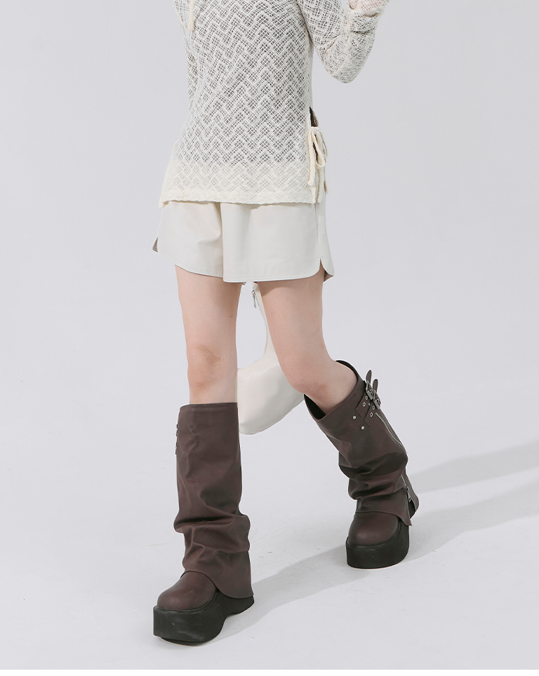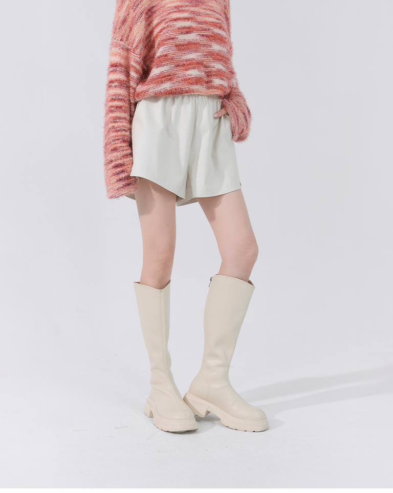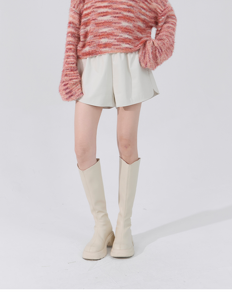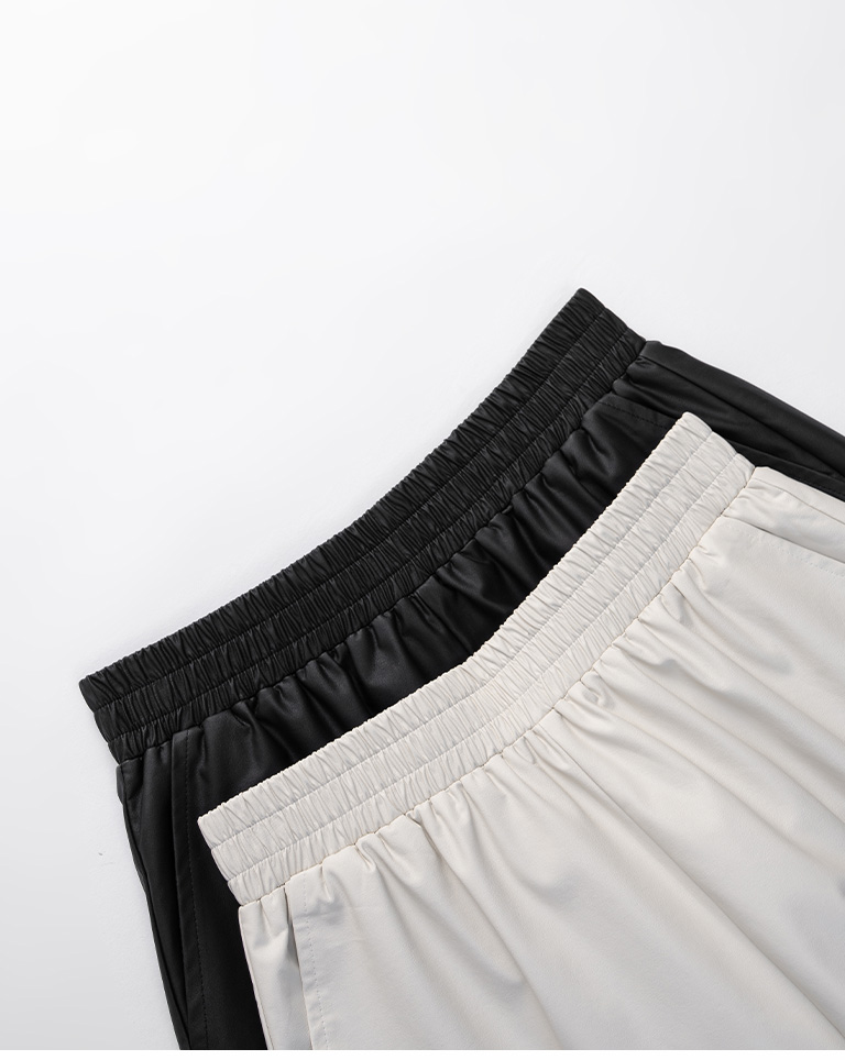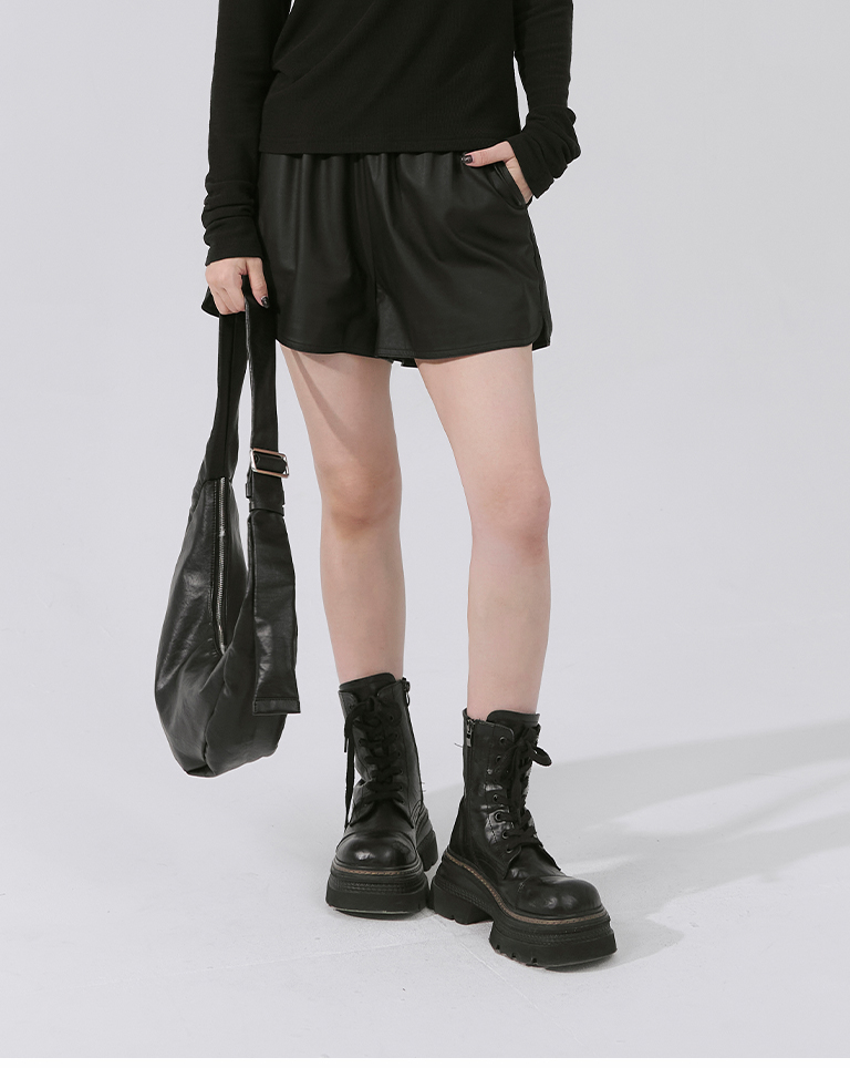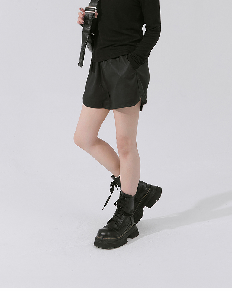 Plain side slit leather shorts, available in two colors:S/M