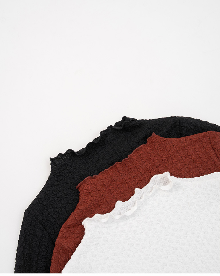 Marshmallow 3D jacquard high-neck long-sleeved top (three colors available) M/L/XL