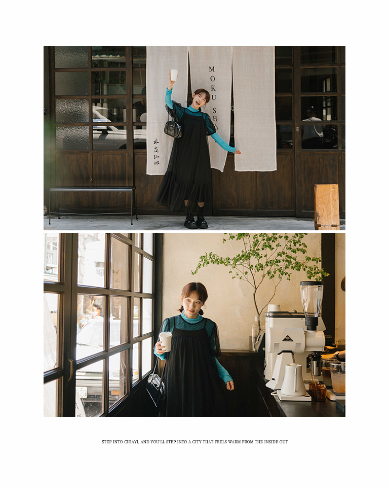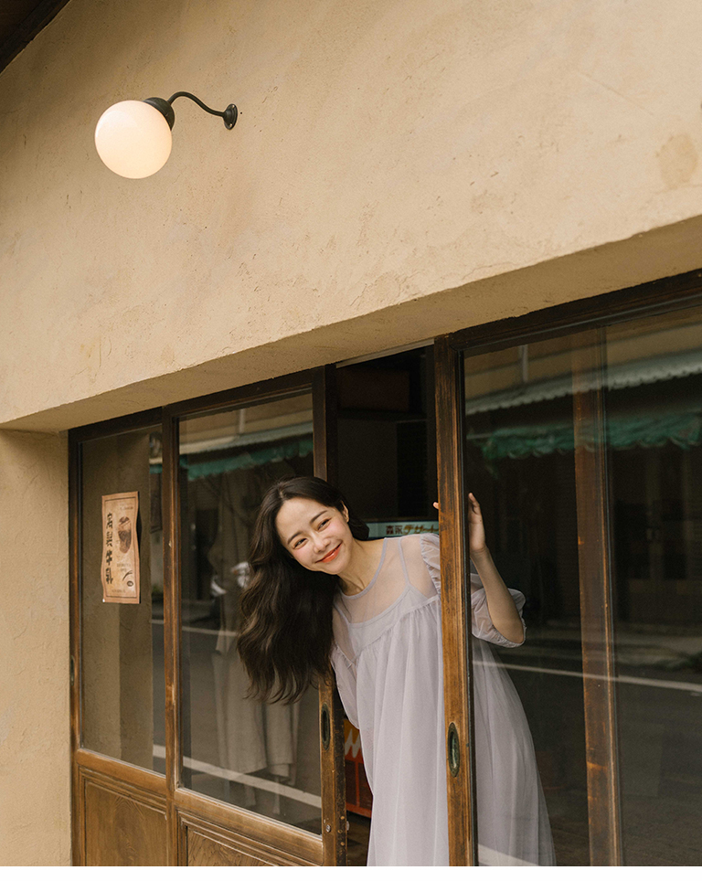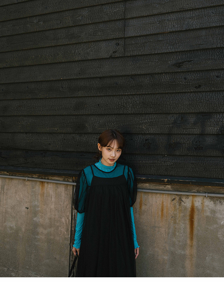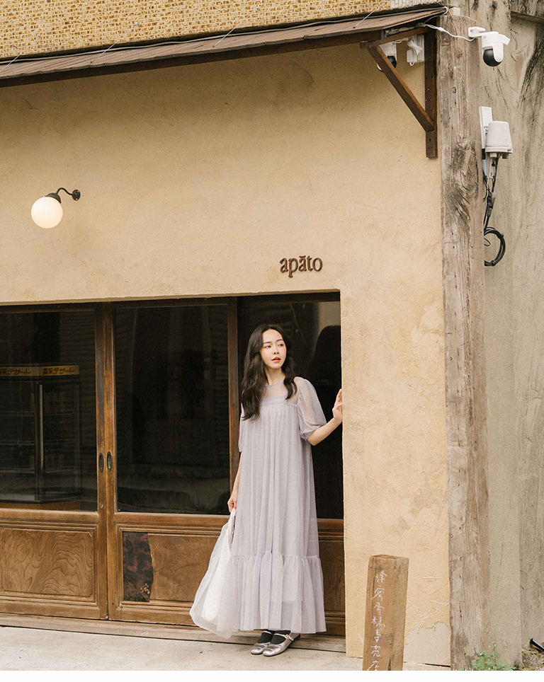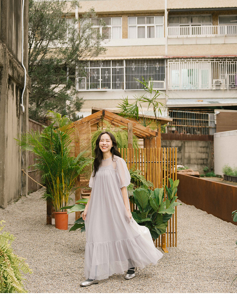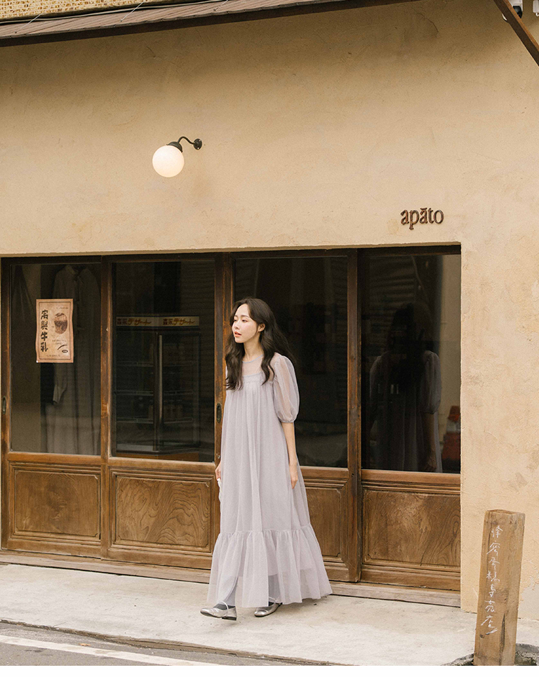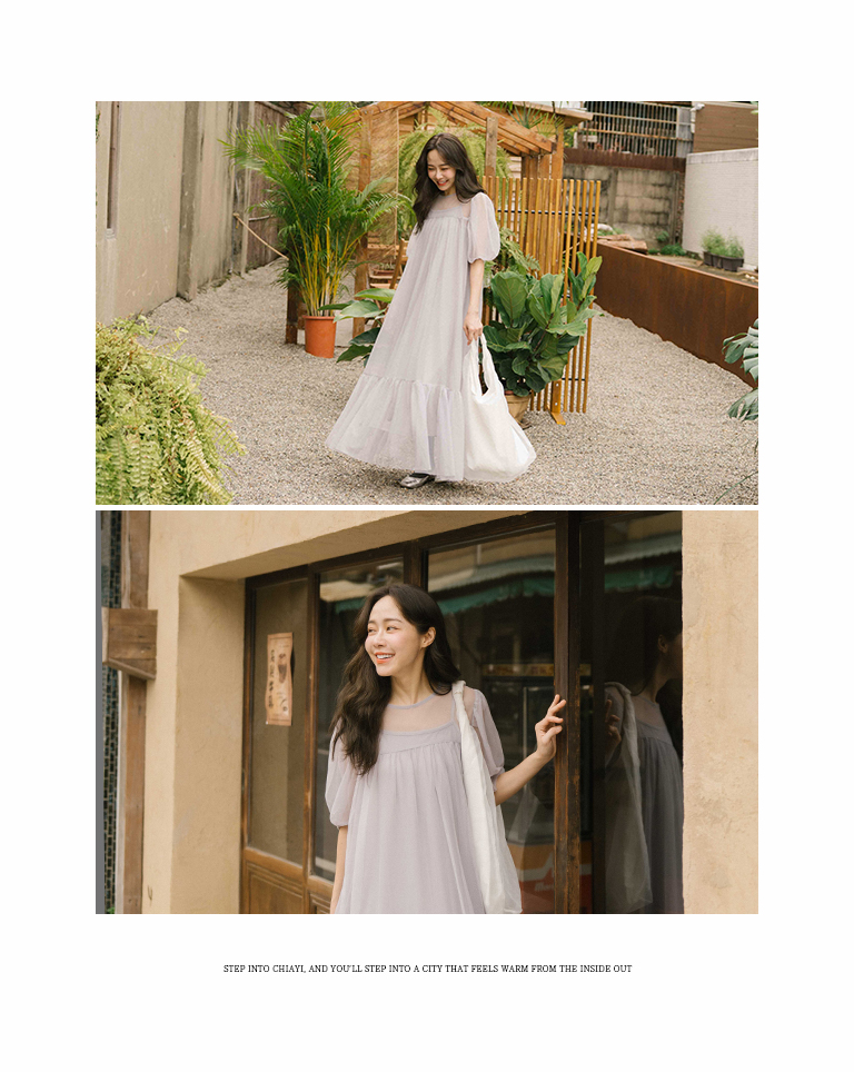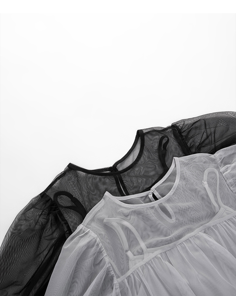 Puff sleeve mesh two-piece long dress, two colors for sale S/M