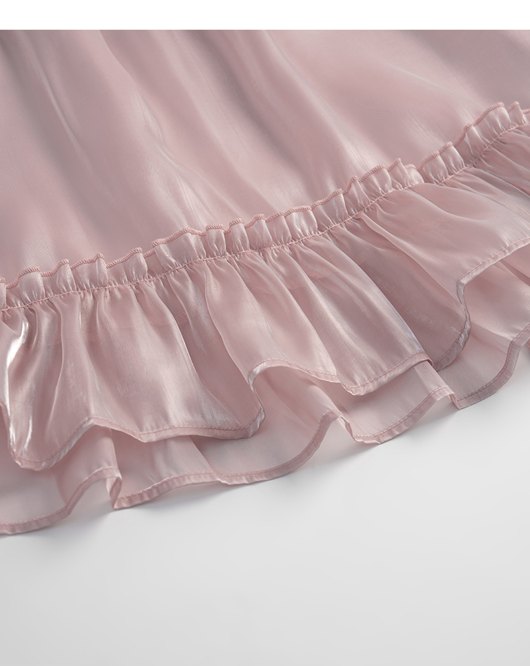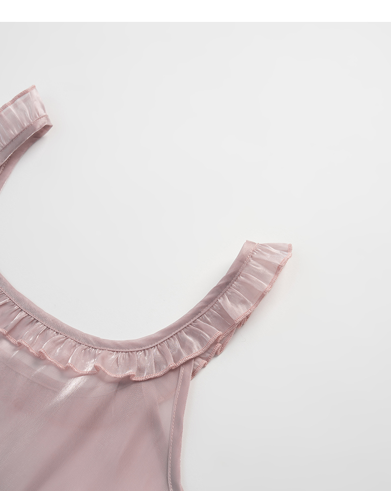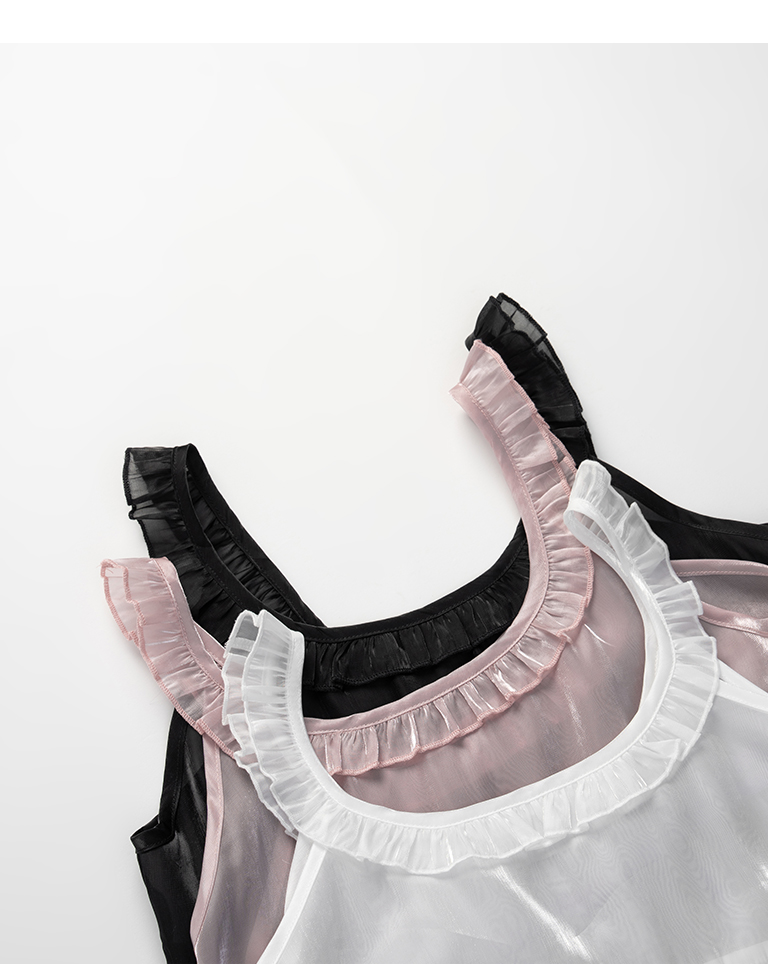 Slightly shiny tulle ruffled blouse vest three colors for sale