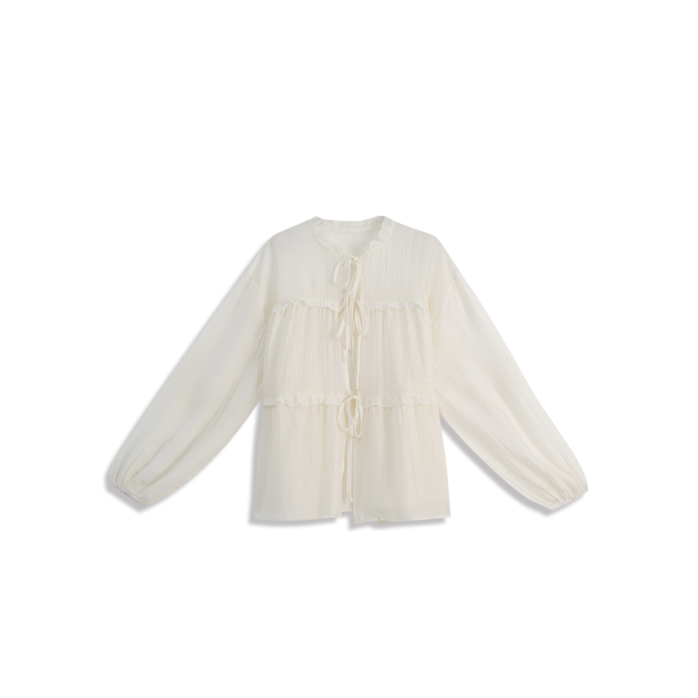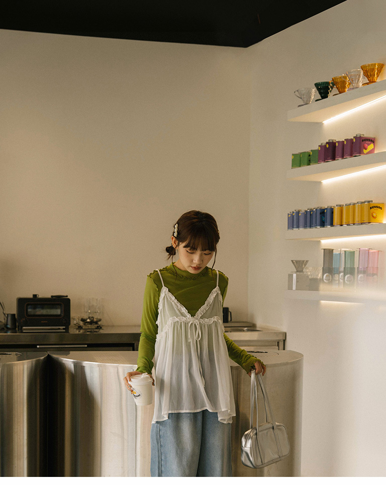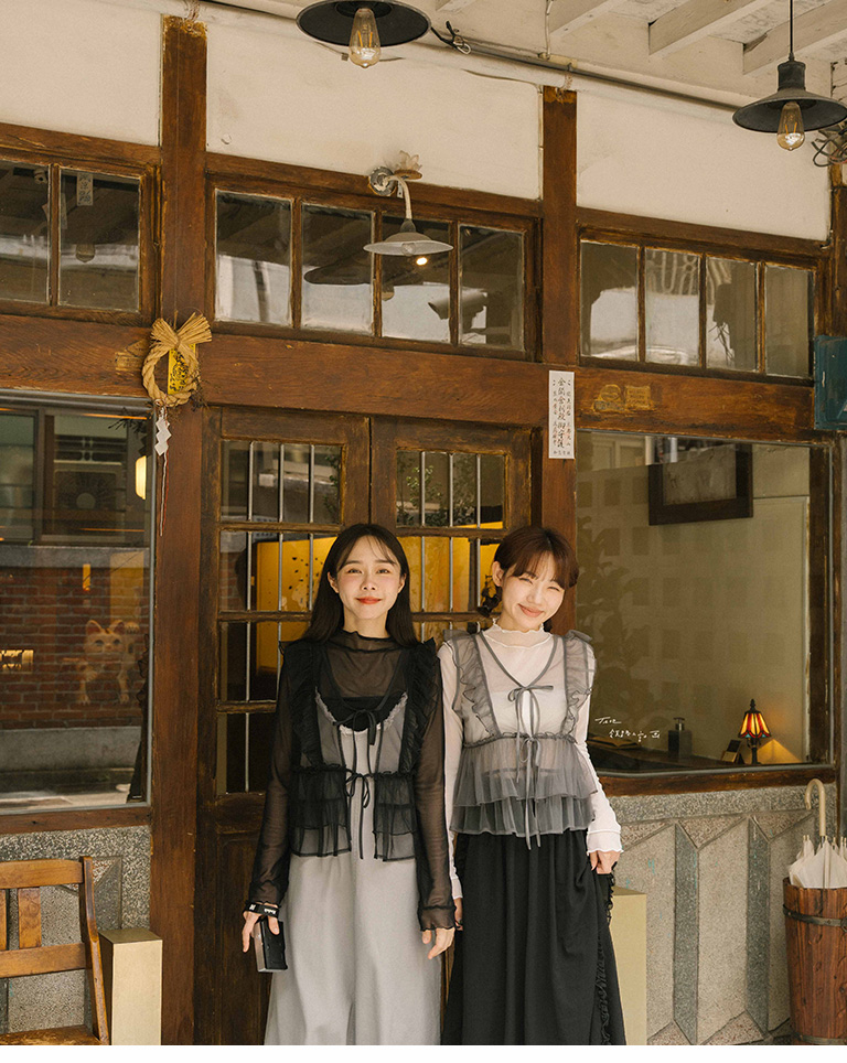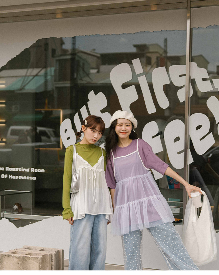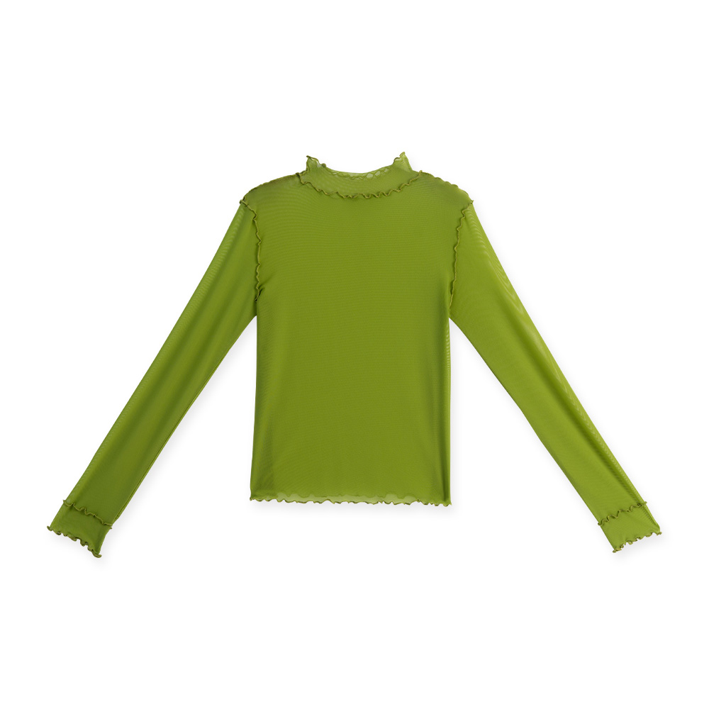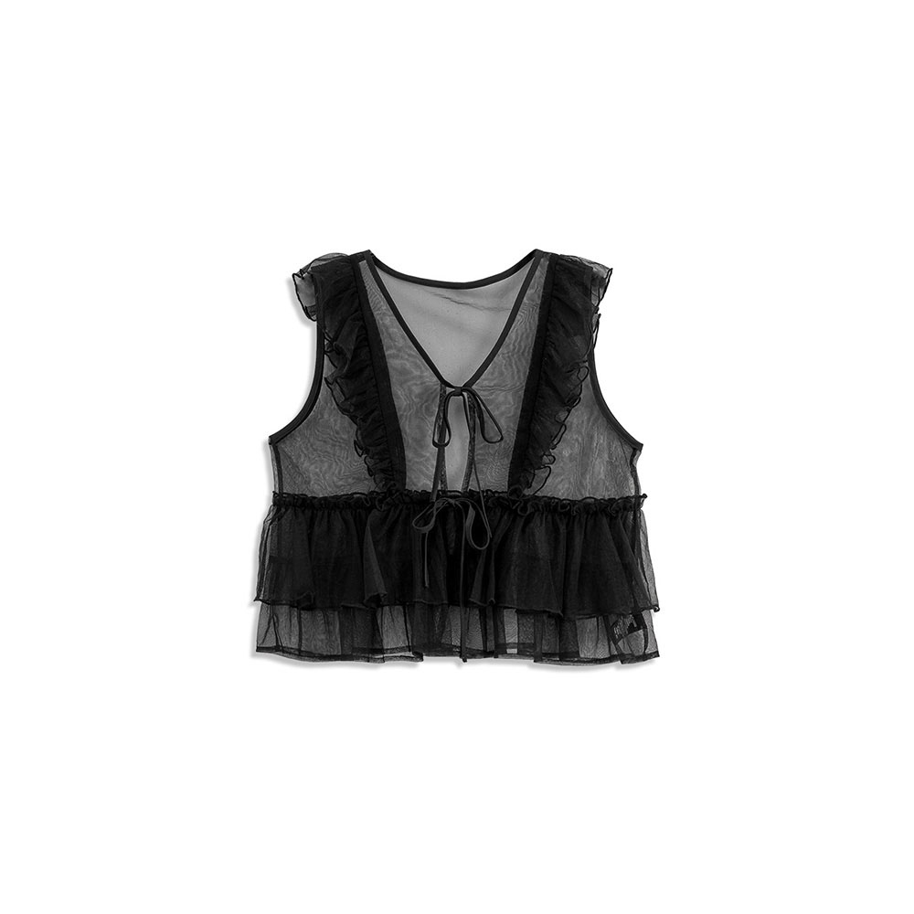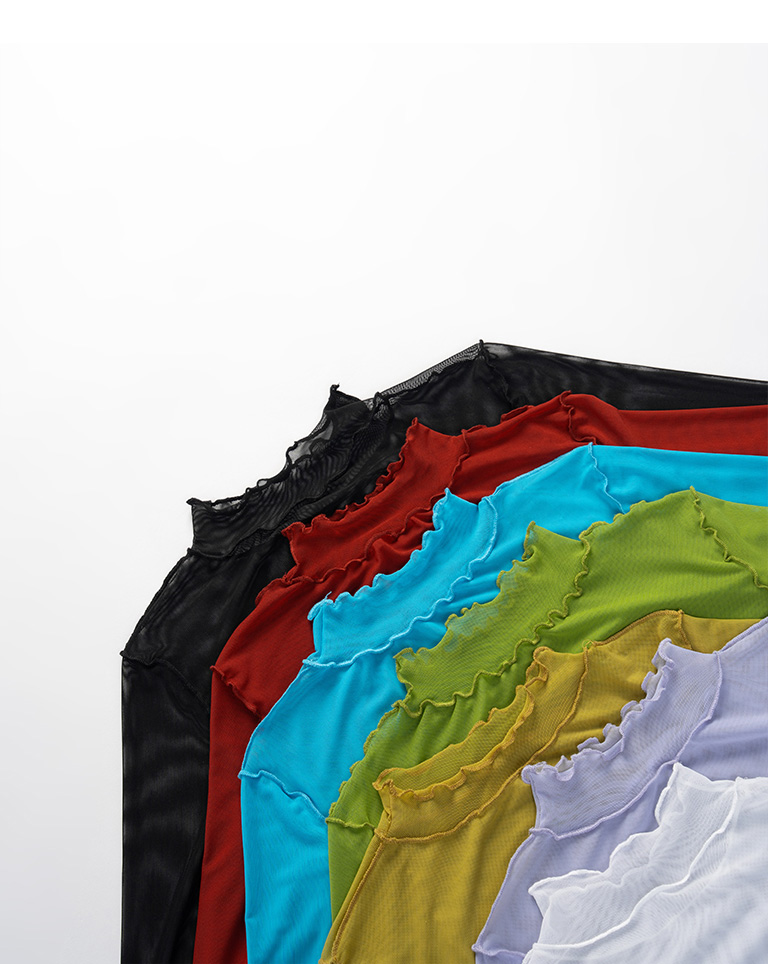 Saturated color ruffled sheer top, seven colors for sale