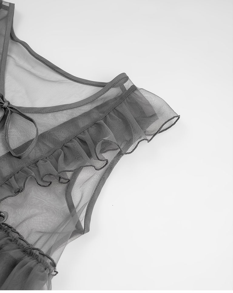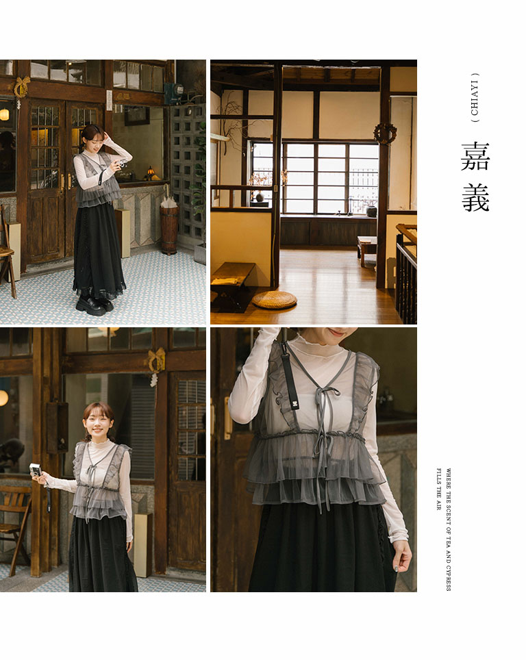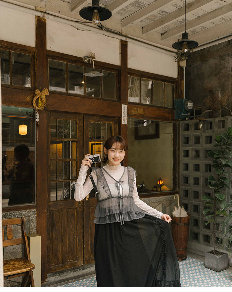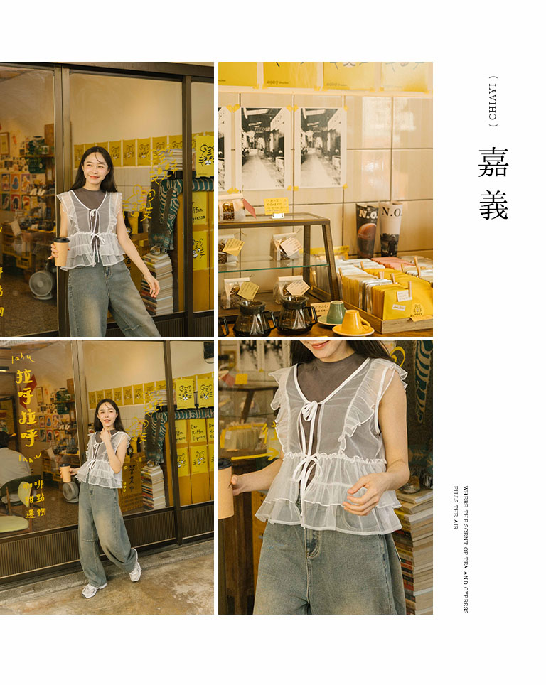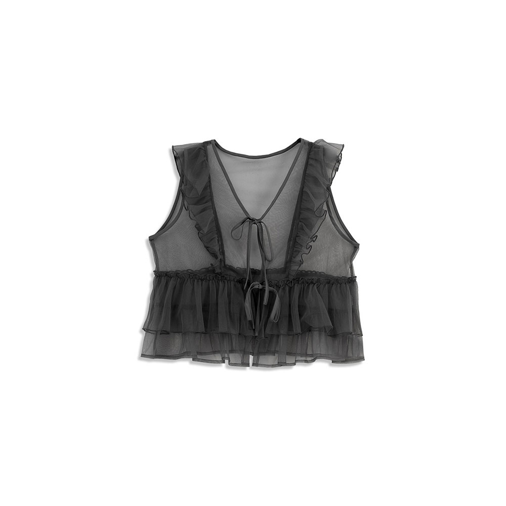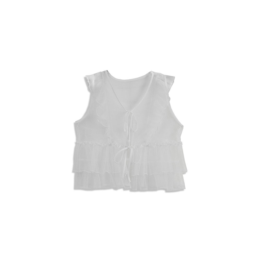 Lotus leaf tie shape sheer vest blouse three colors for sale