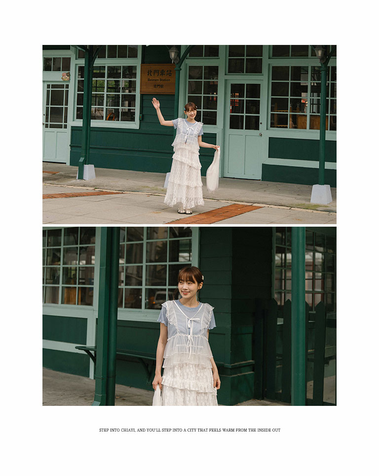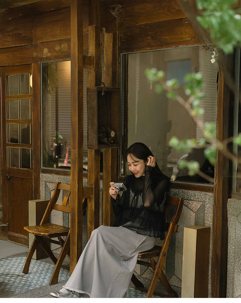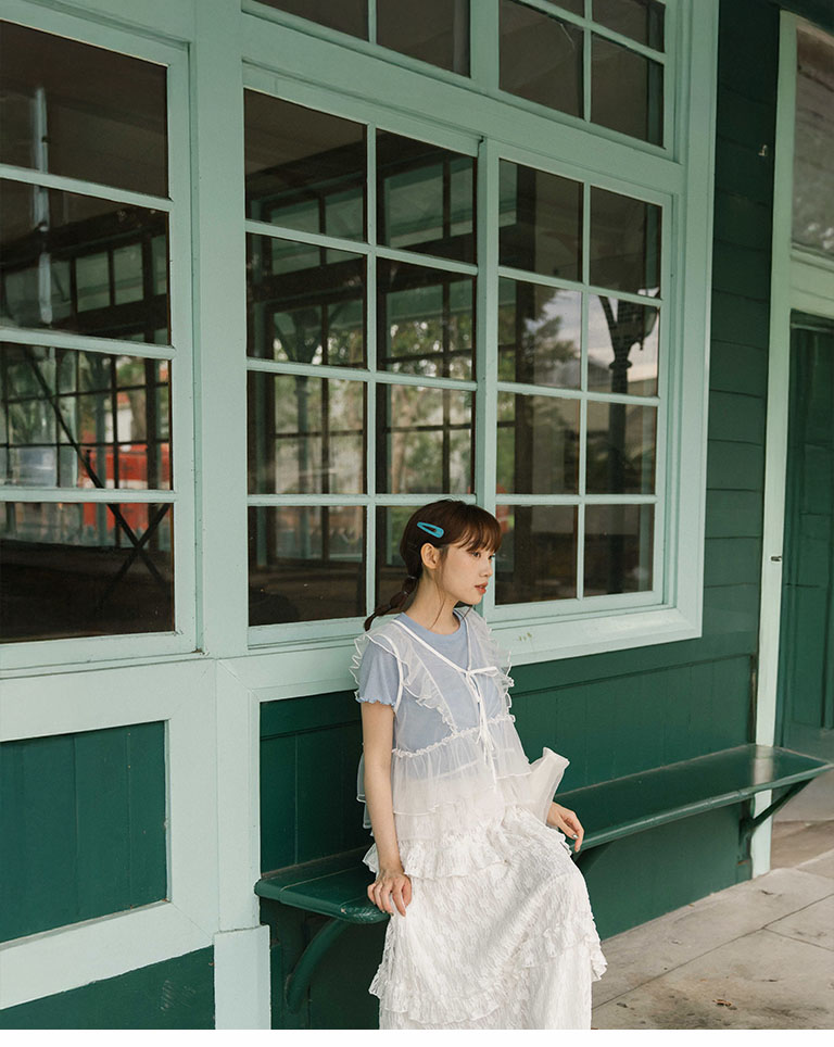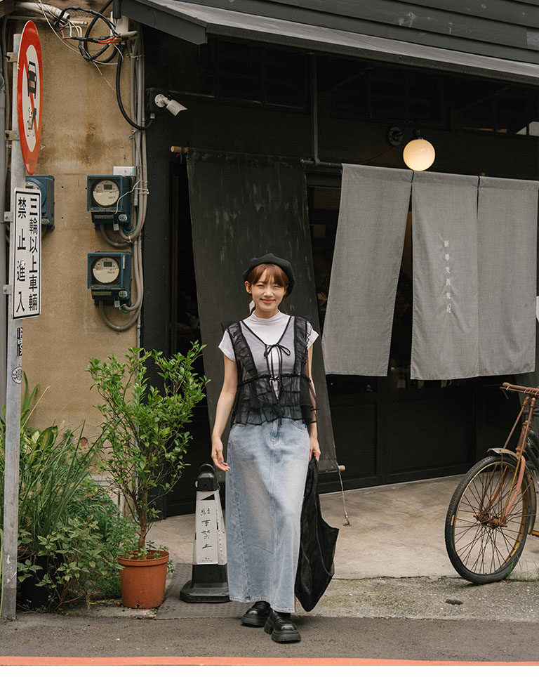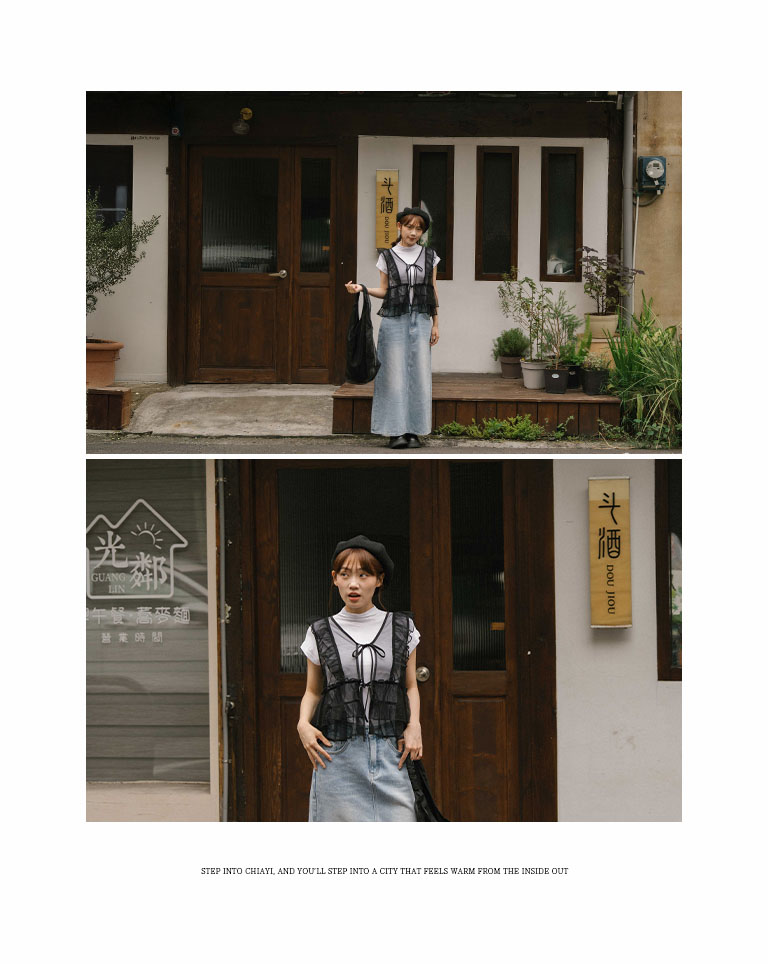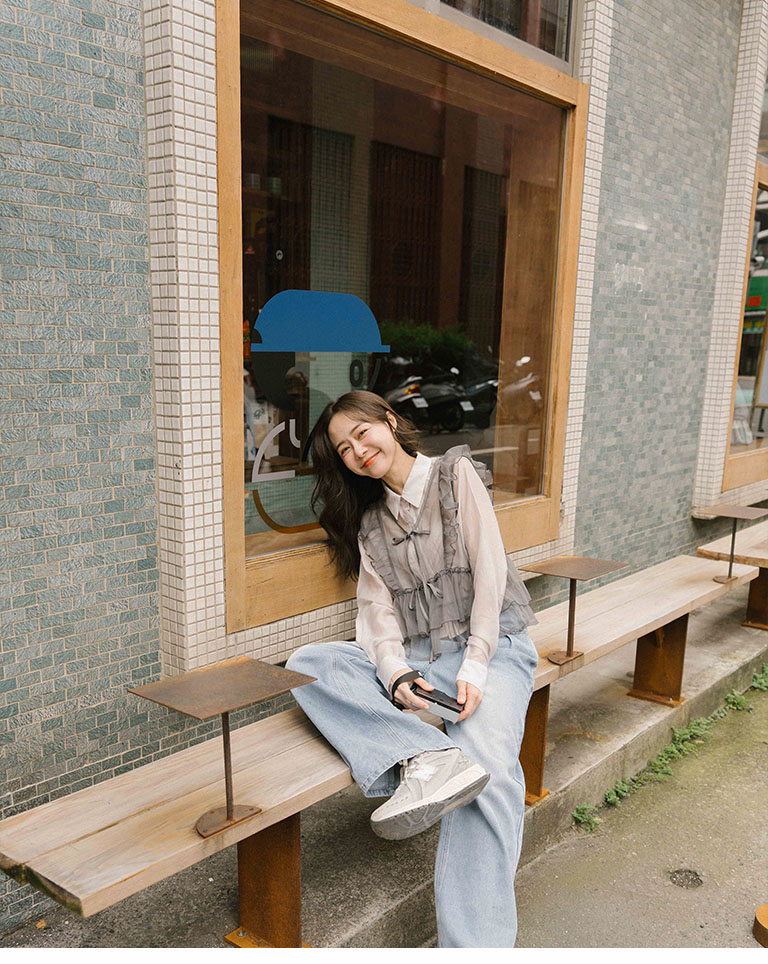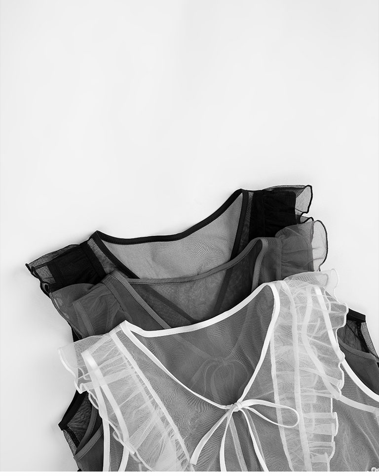 Lotus leaf tie shape sheer vest blouse three colors for sale