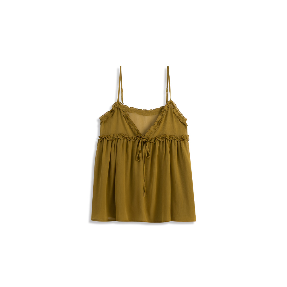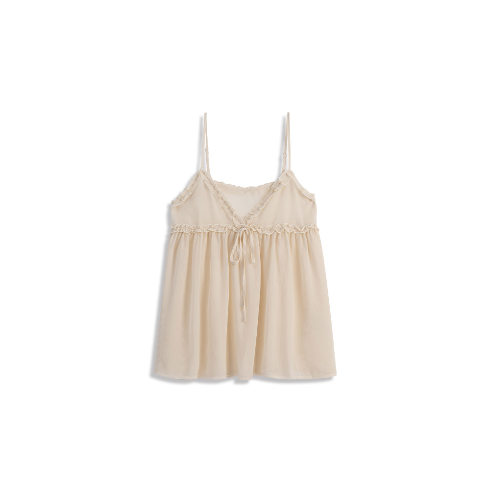 Sheer Bandage Lotus Leaf Cardigan Vest - Apricot
