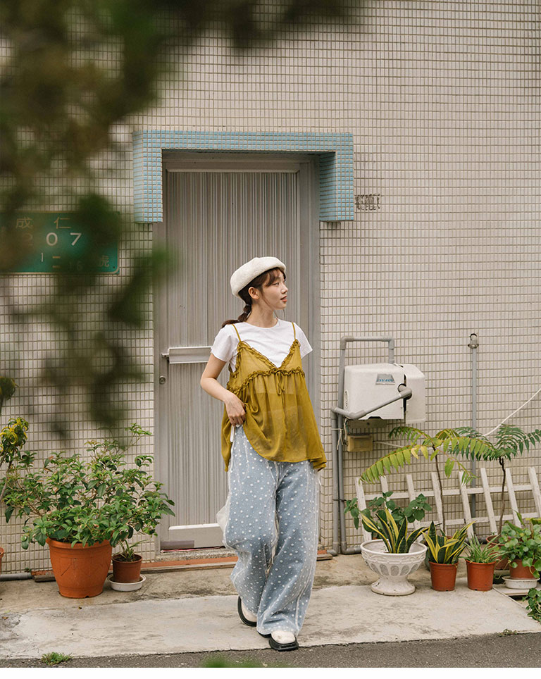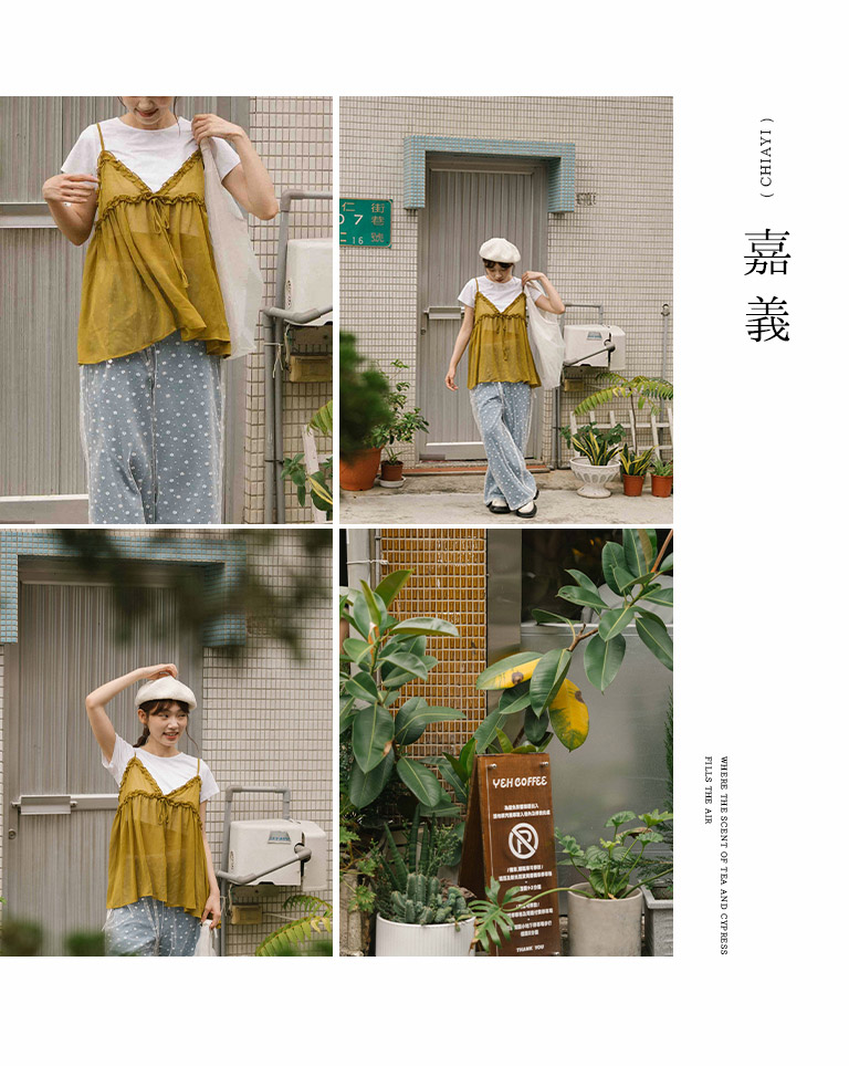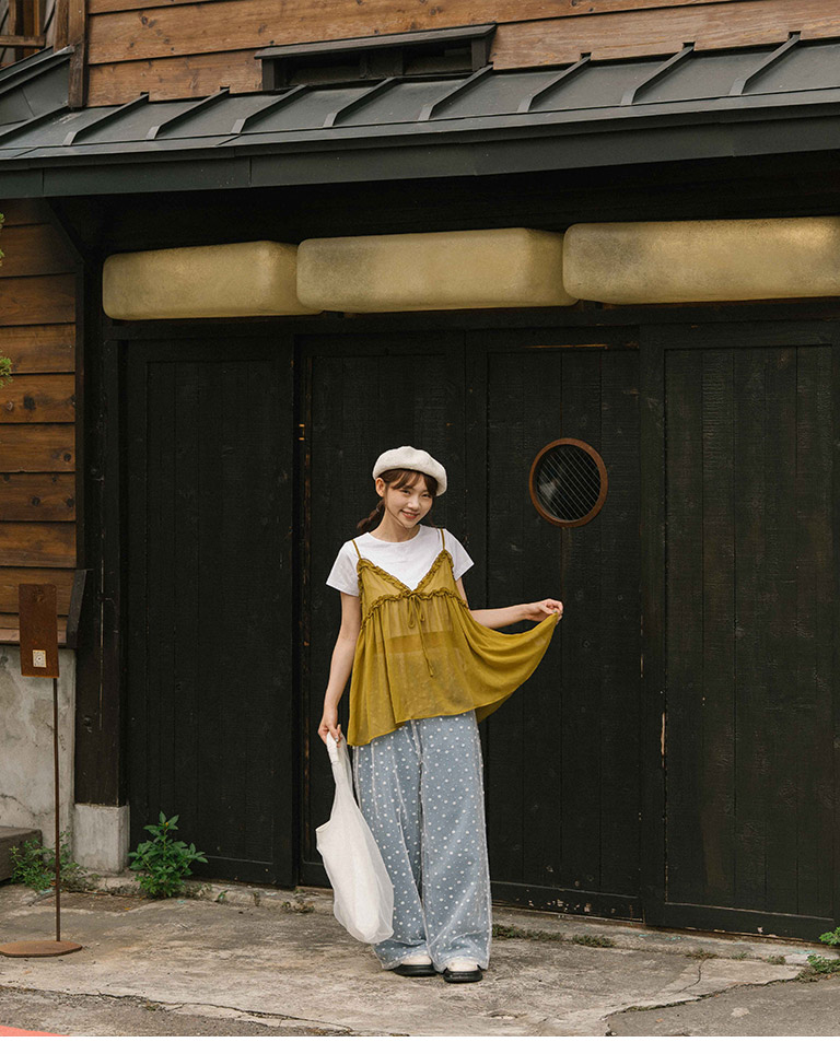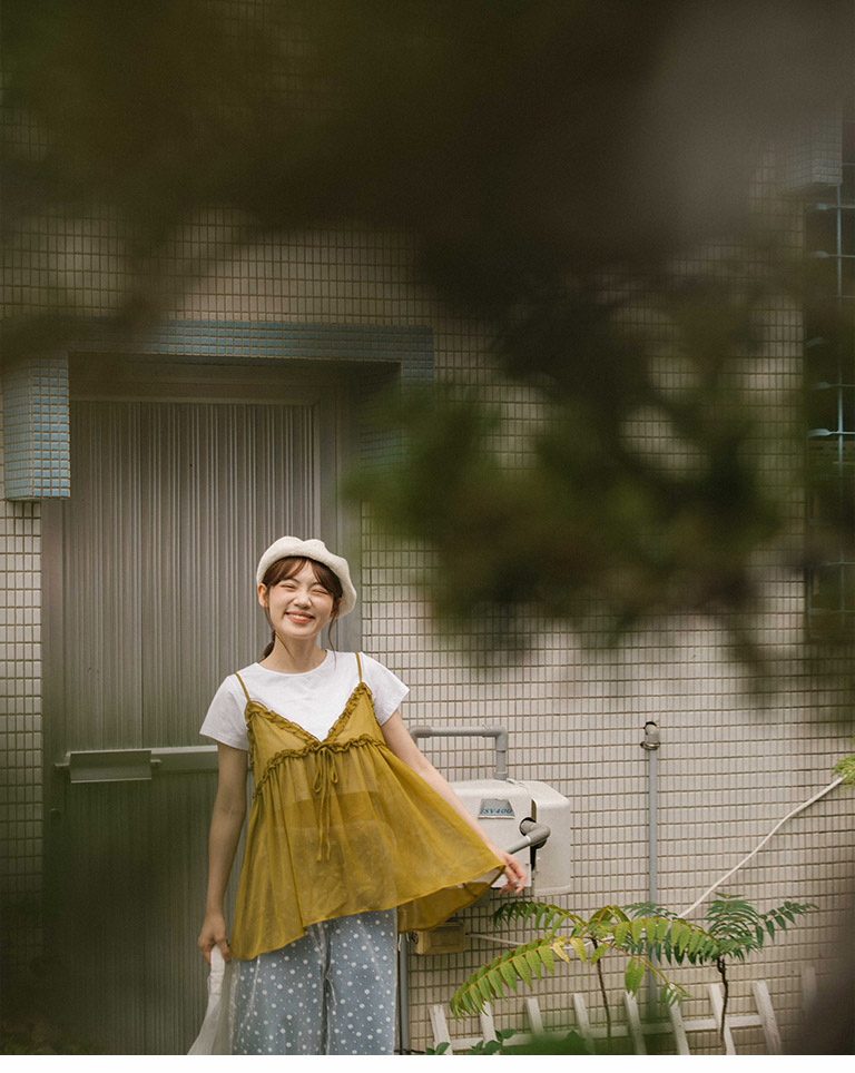 Sheer Bandage Lotus Leaf Cardigan Vest - Mustard Yellow