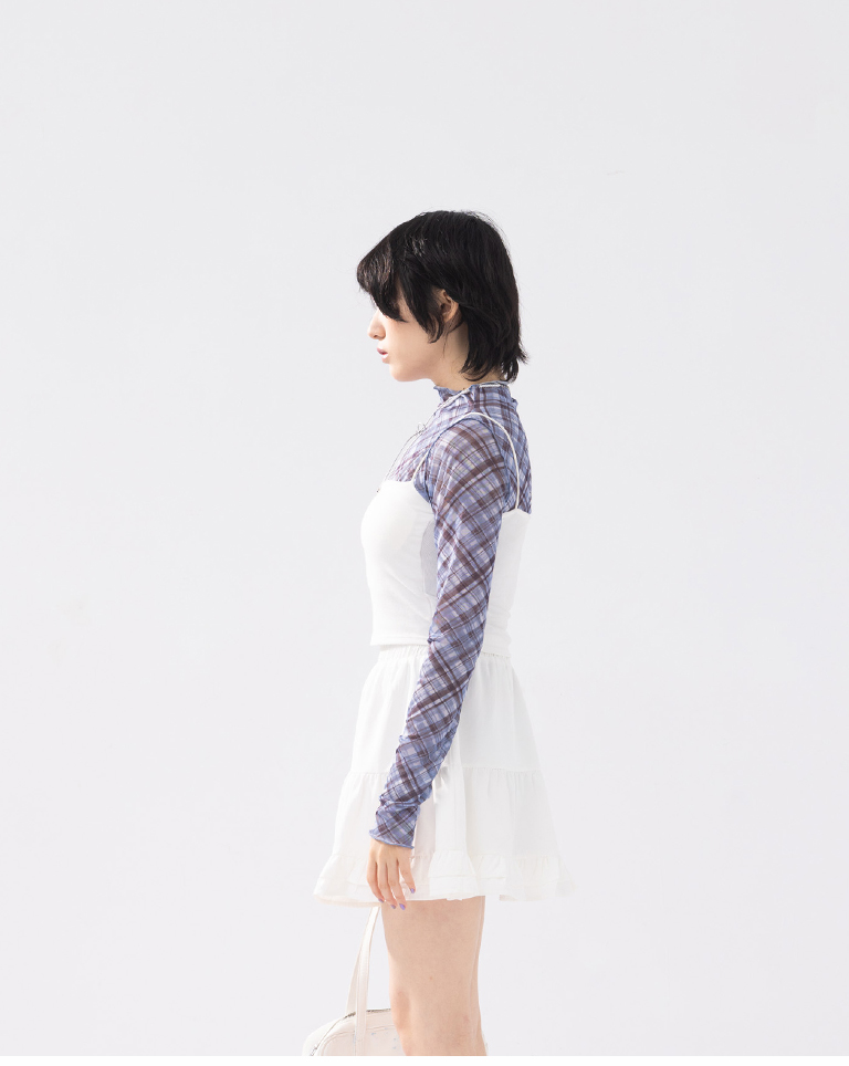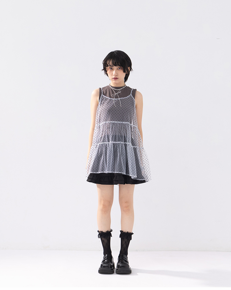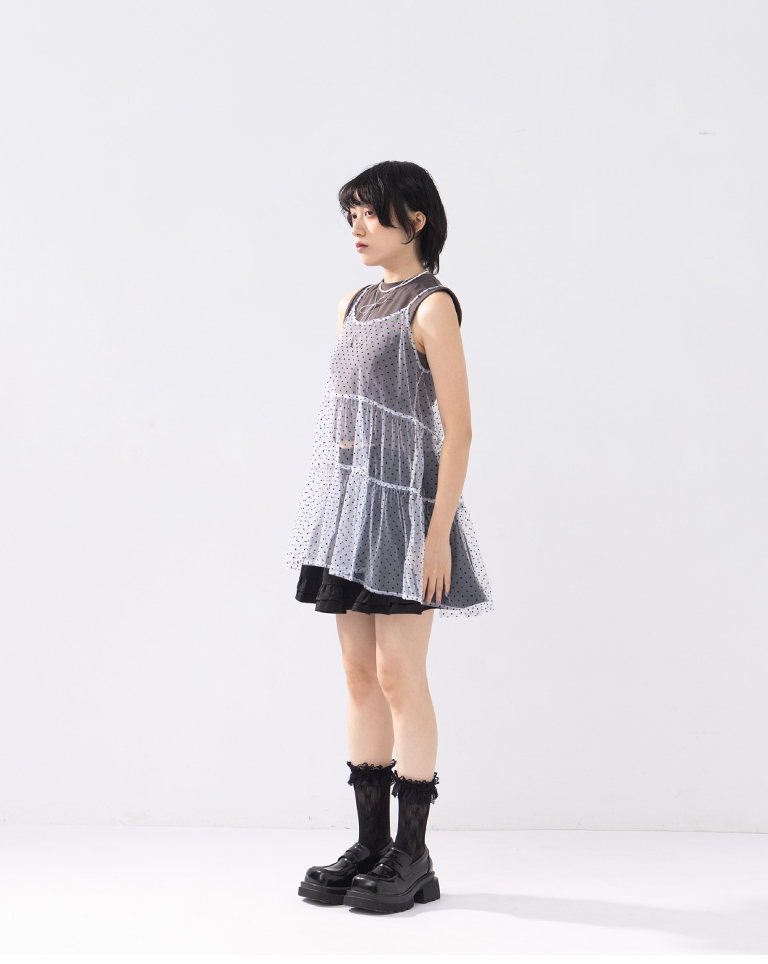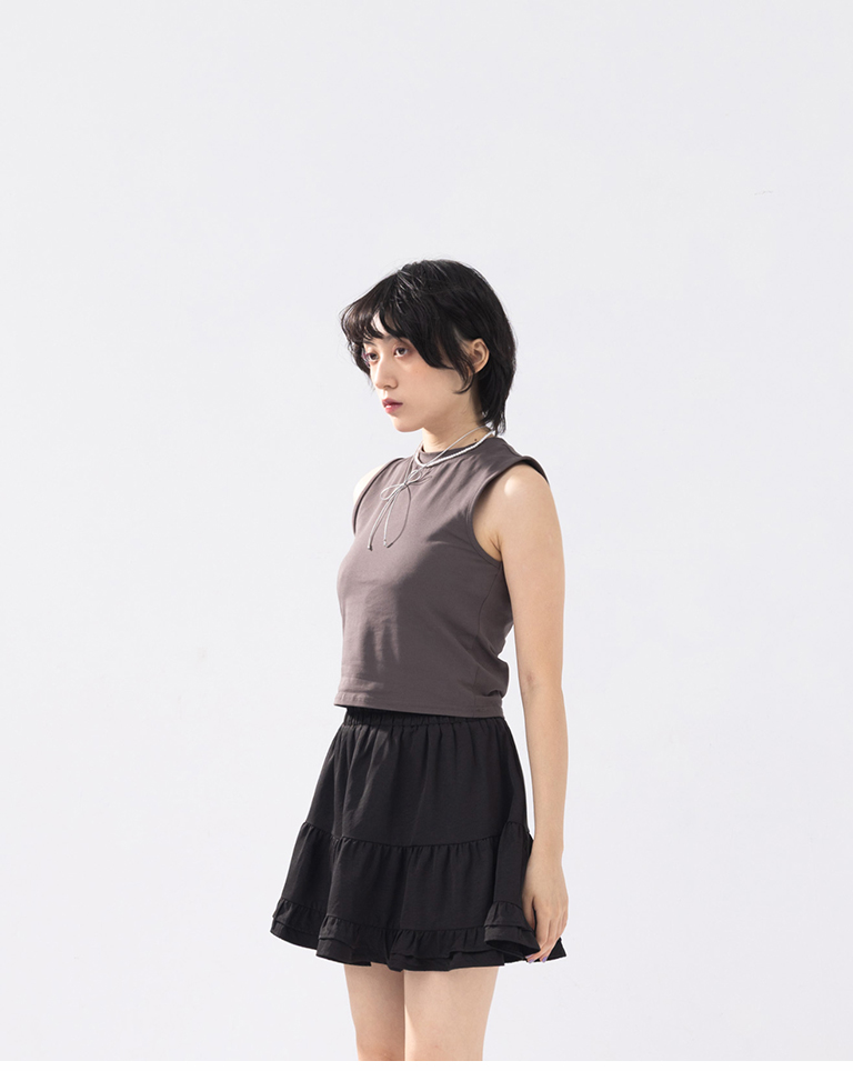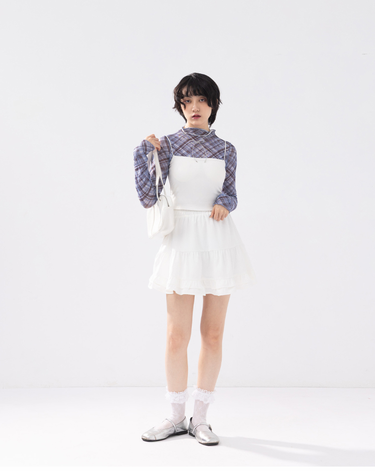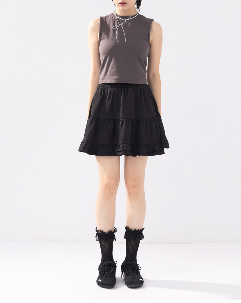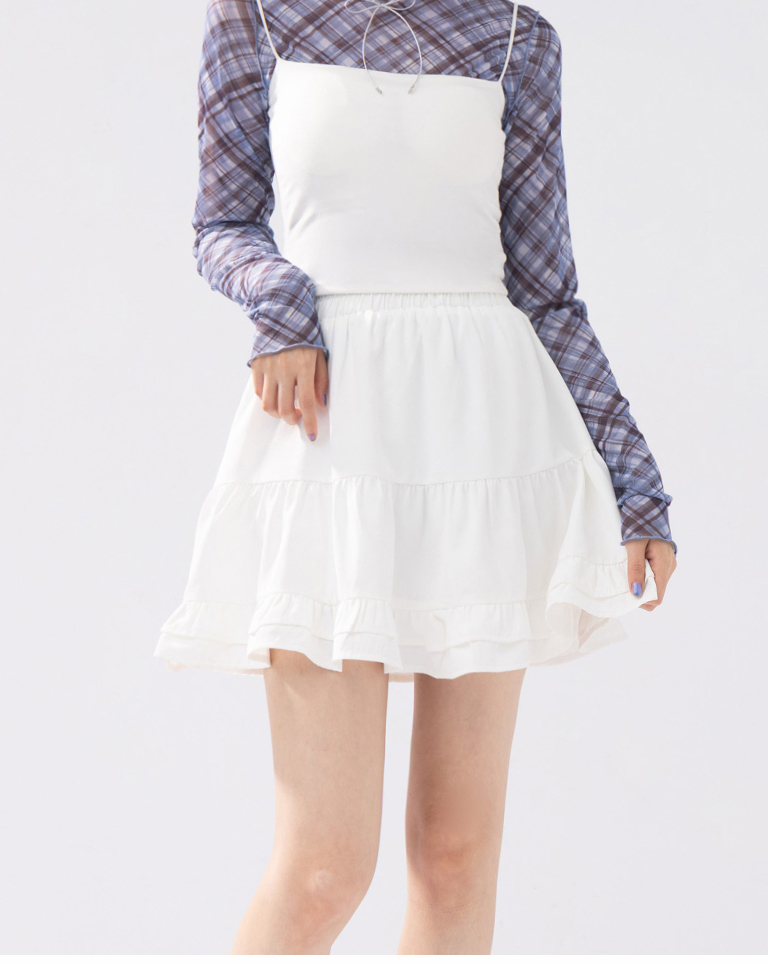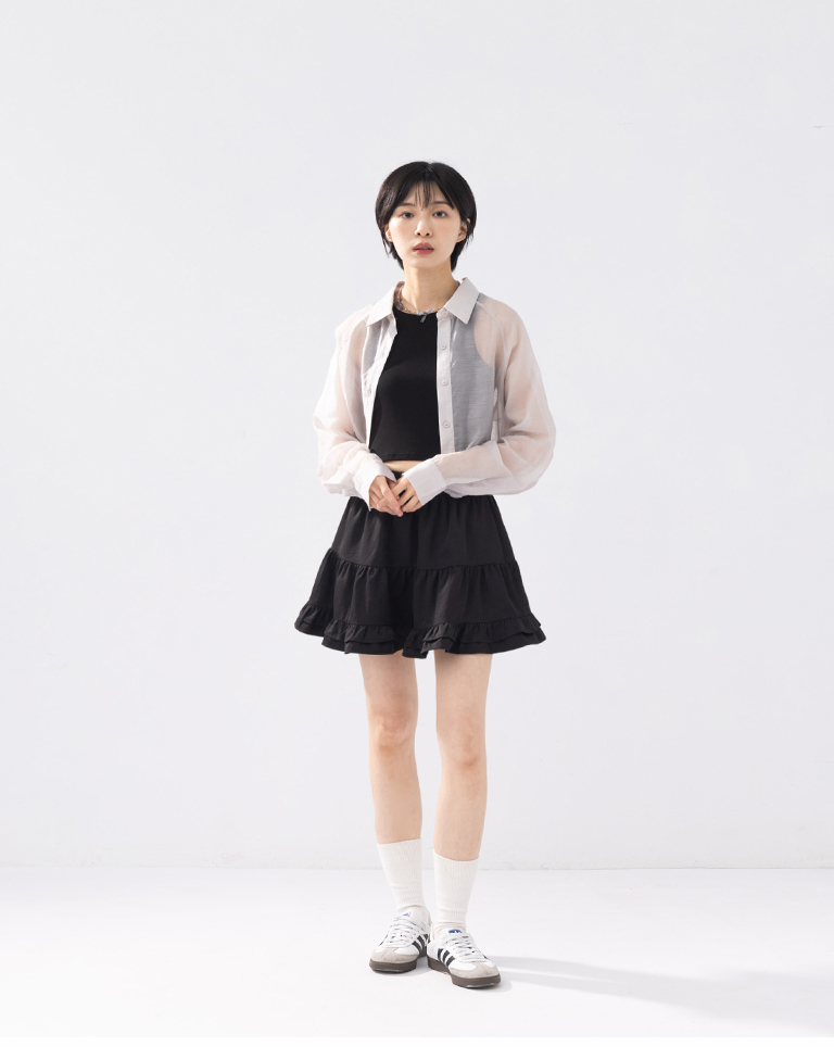 Double-layer lotus leaf cutting shape short skirt two colors sold S/M