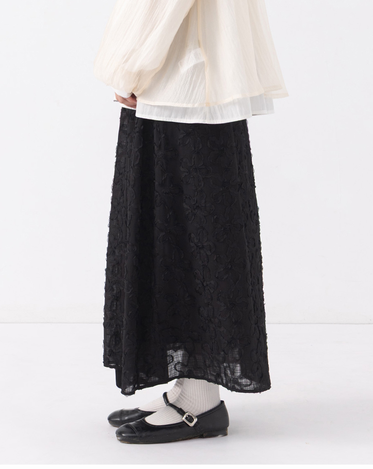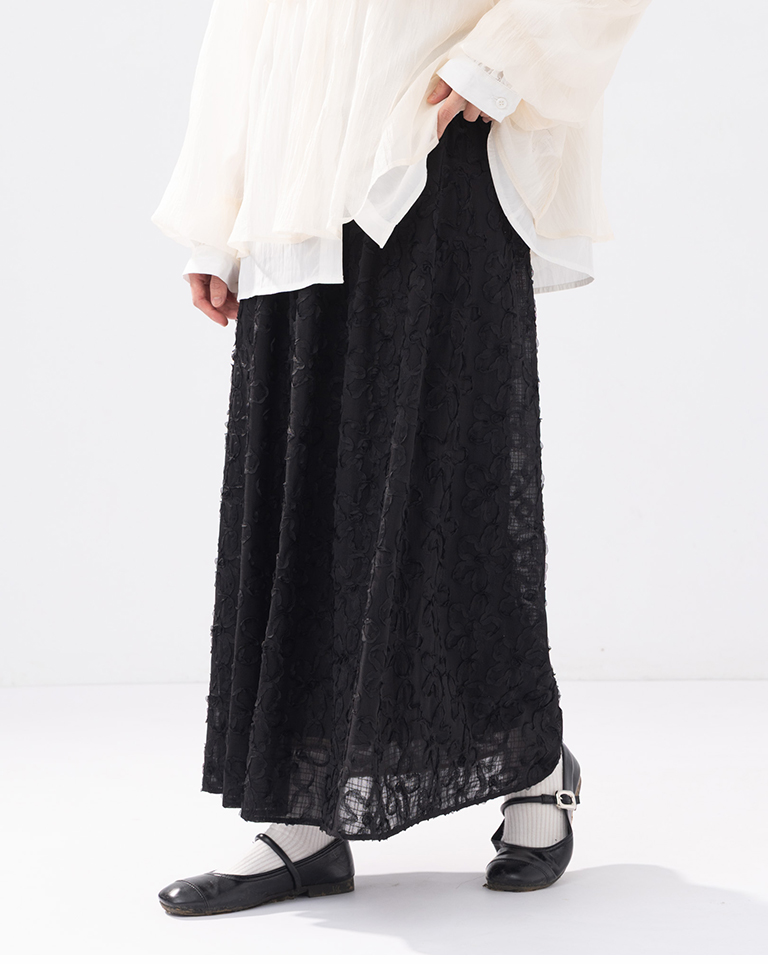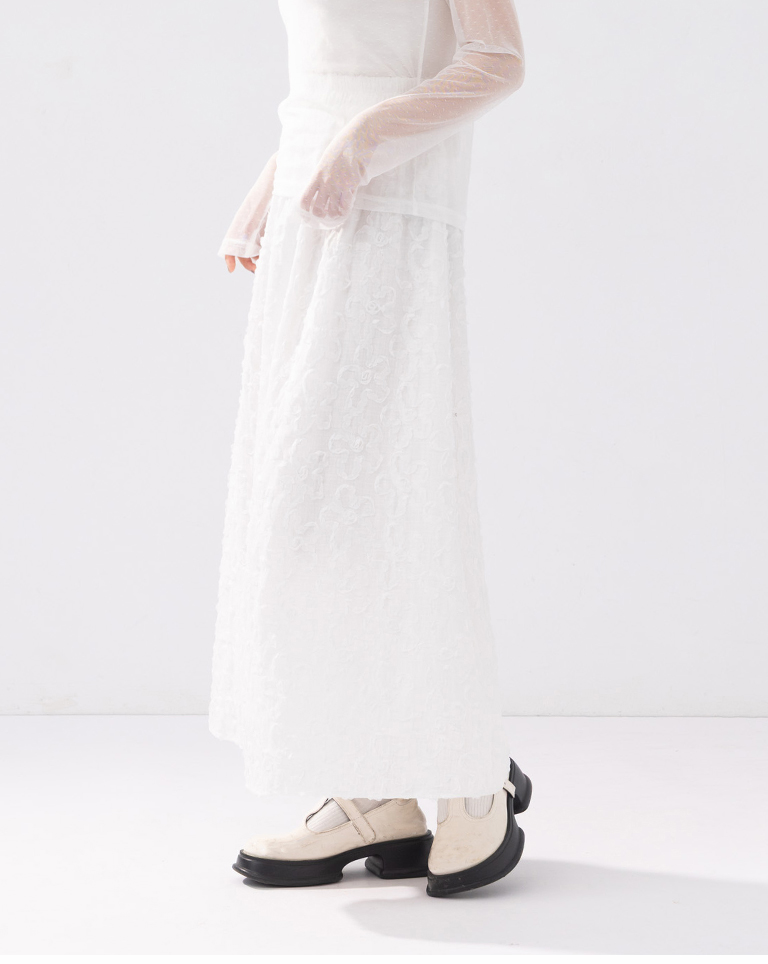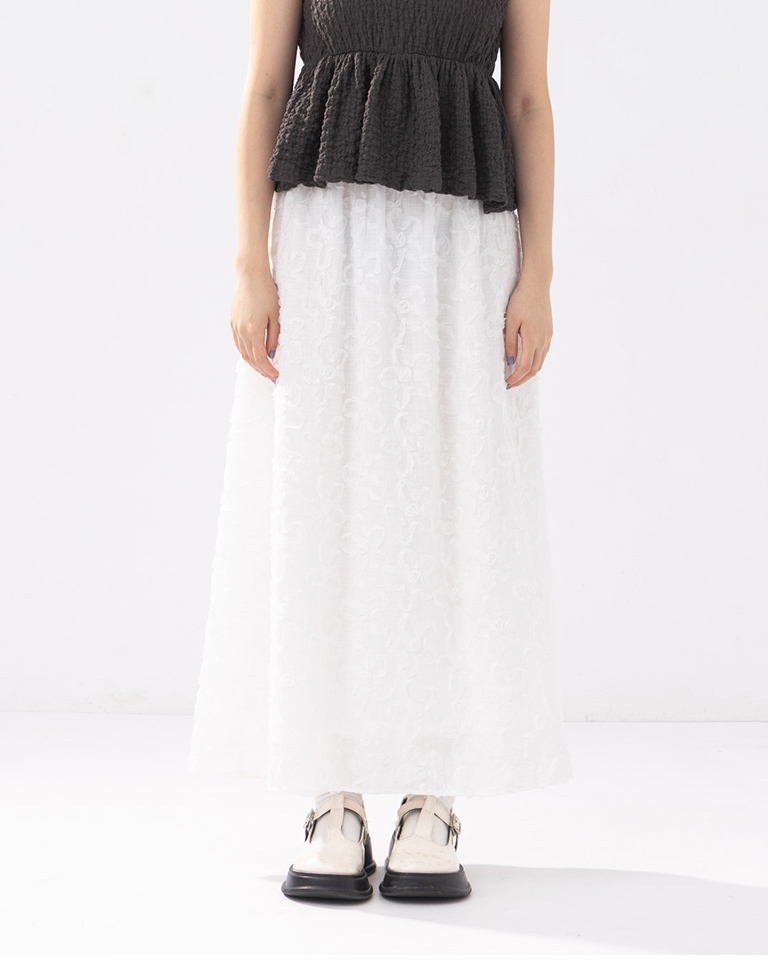 Three-dimensional jacquard design full hem maxi skirt, two colors available