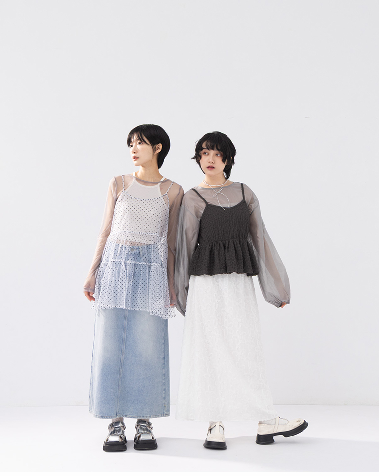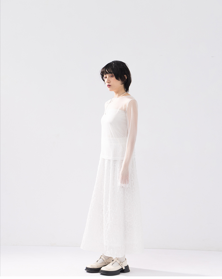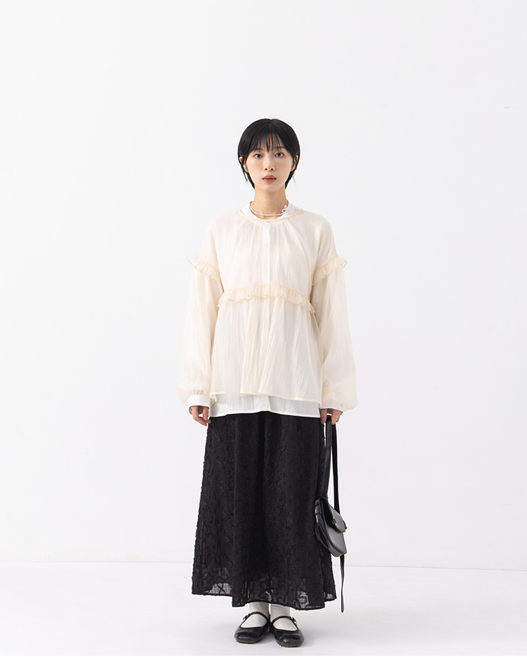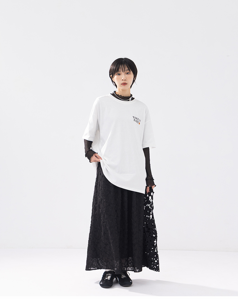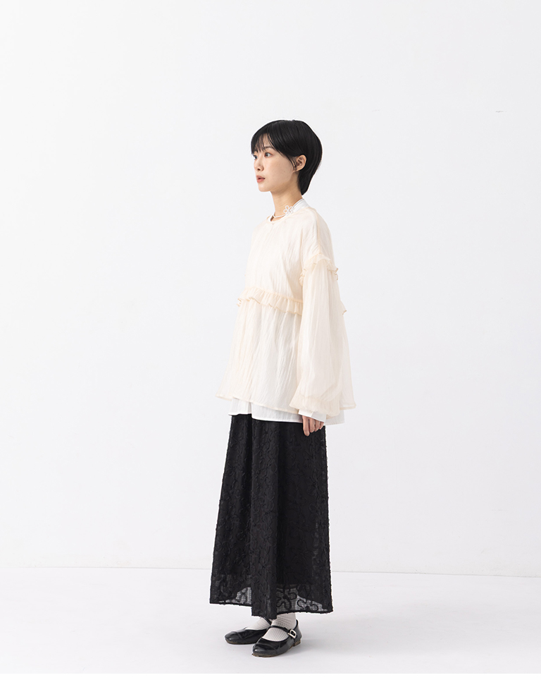 Three-dimensional jacquard design full hem maxi skirt, two colors available