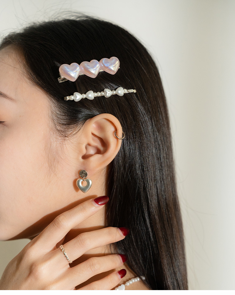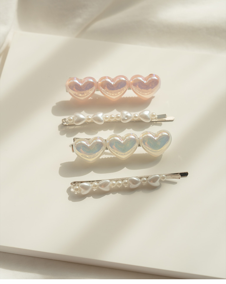 Fine glitter pearl heart hairpins two-piece set, two colors for sale