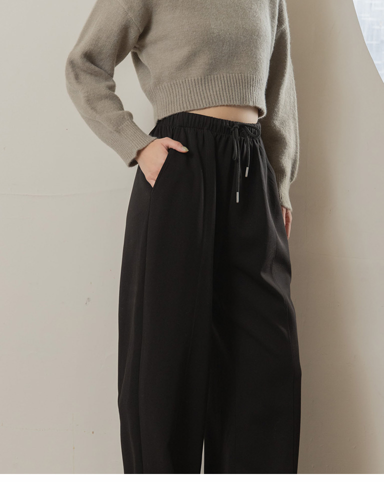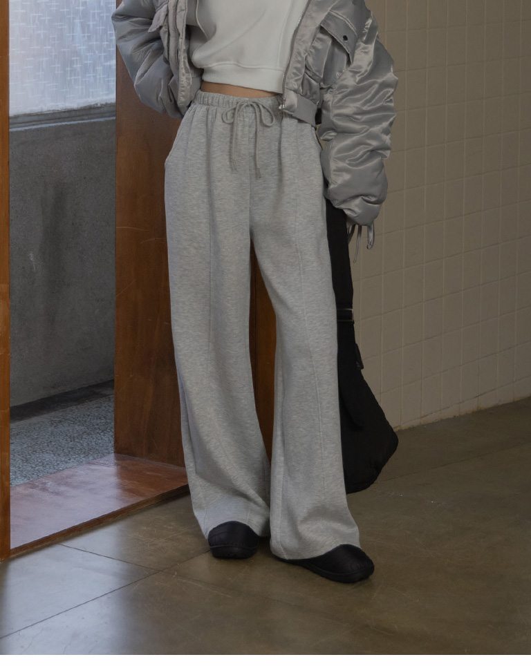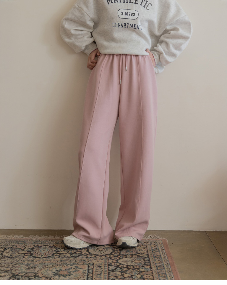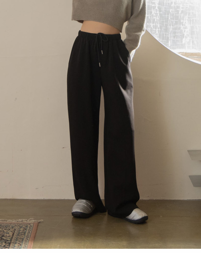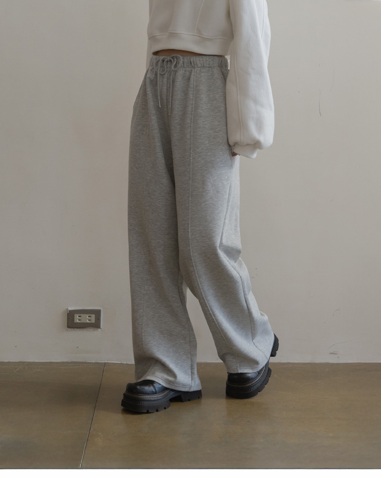 Casual plain cut wide space cotton pants sold in three colors
