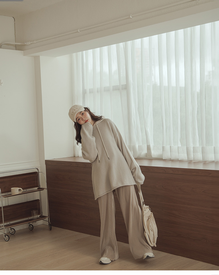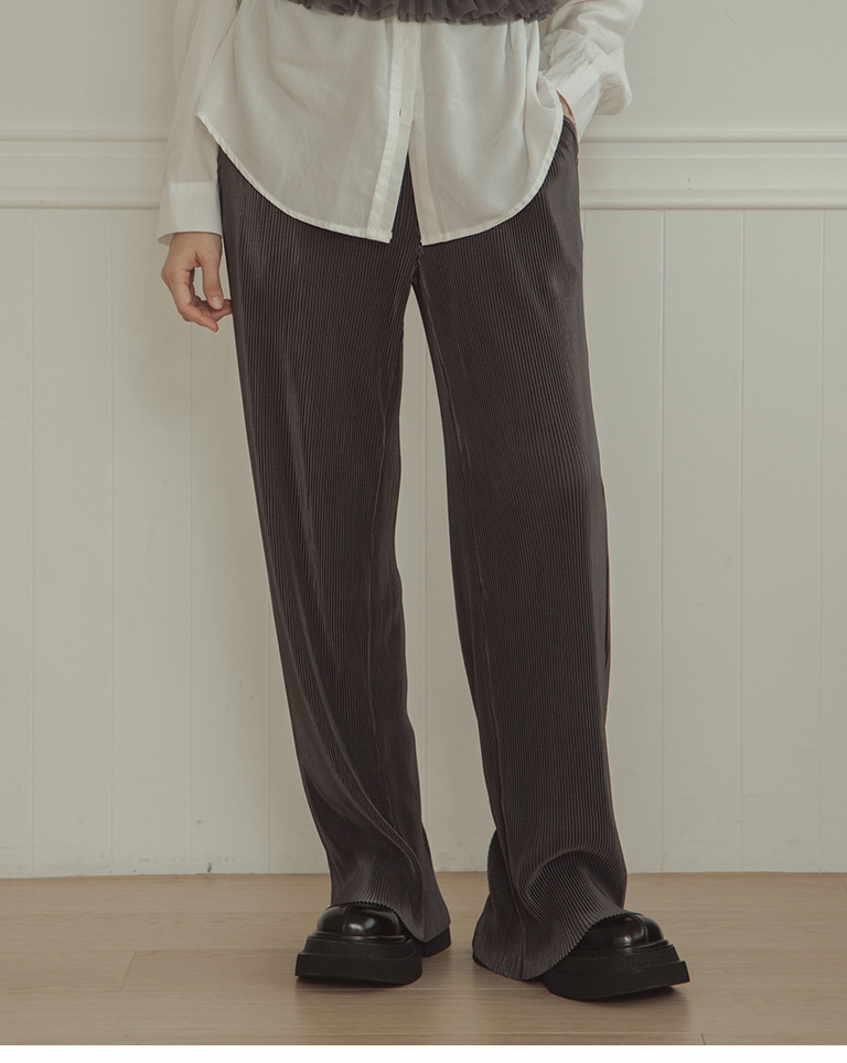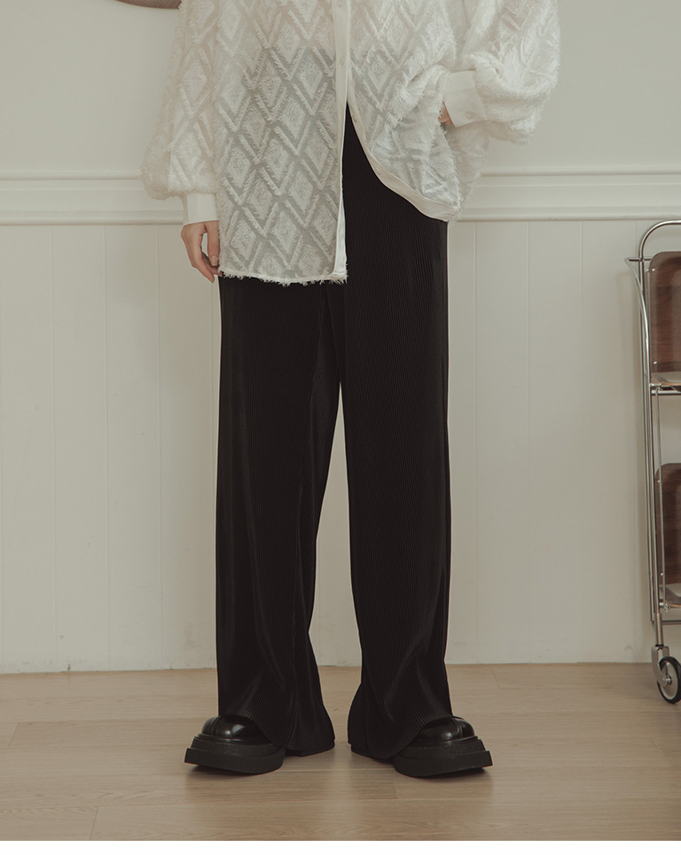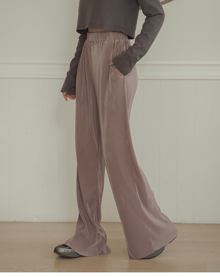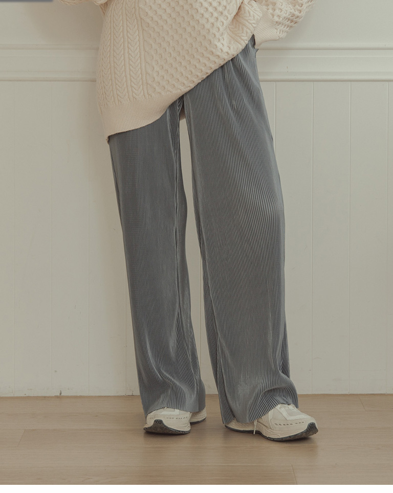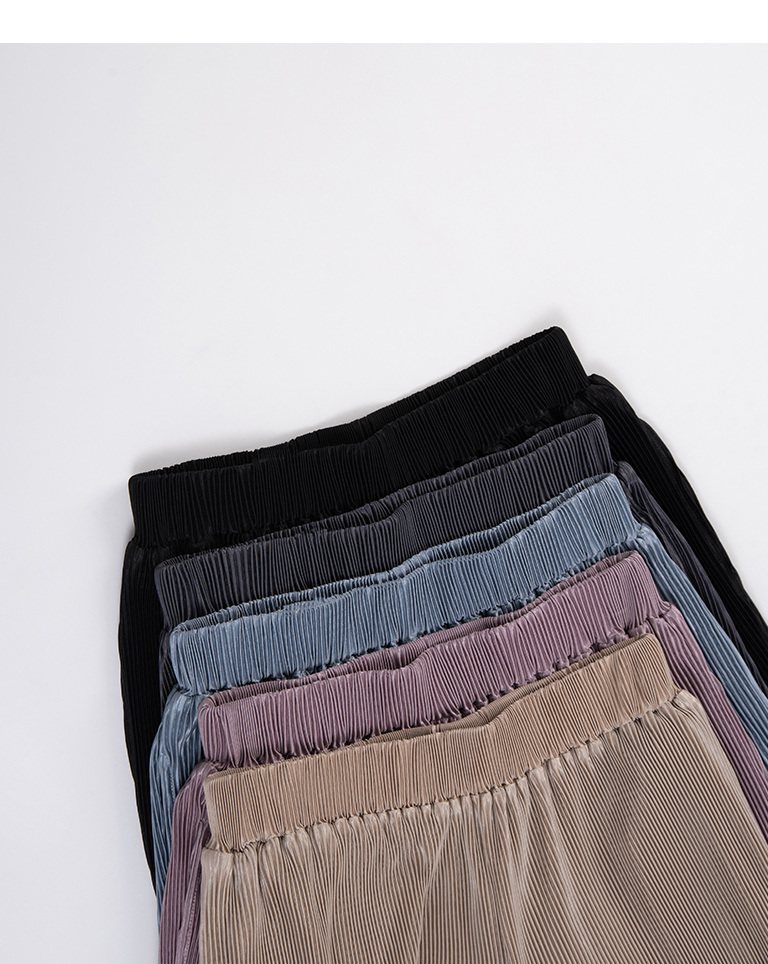 Glossy ribbed soft material long wide trousers sold in five colors S/M
