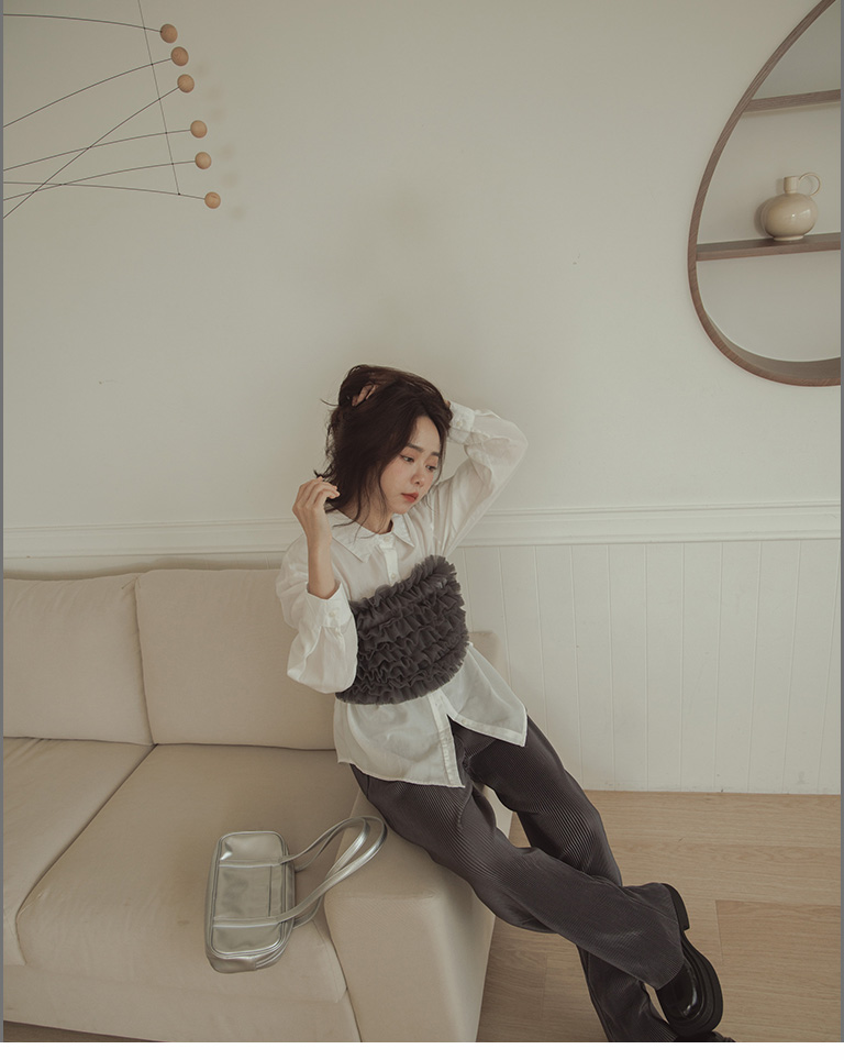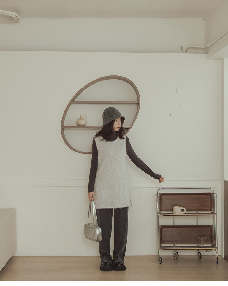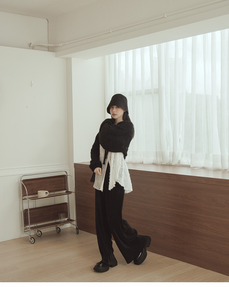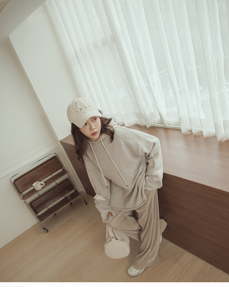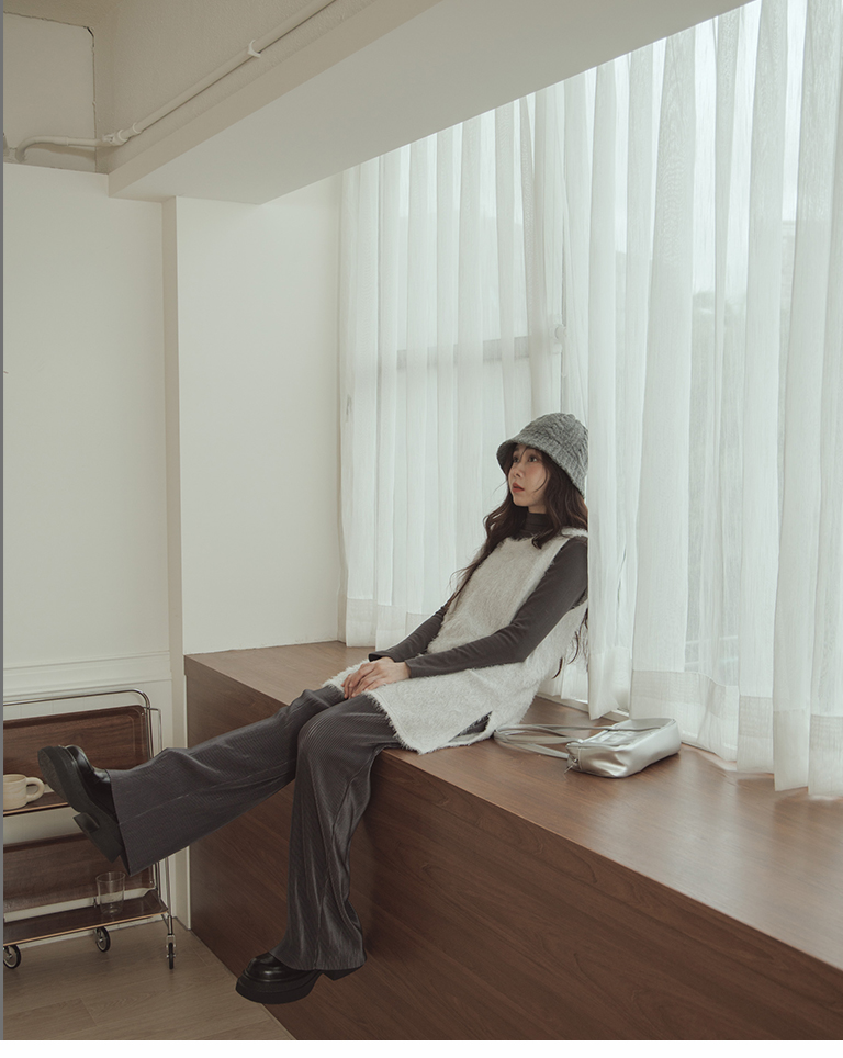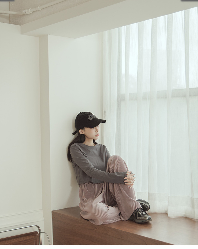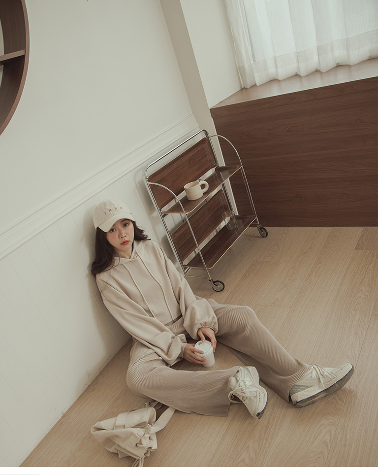 Glossy ribbed soft material long wide trousers sold in five colors S/M