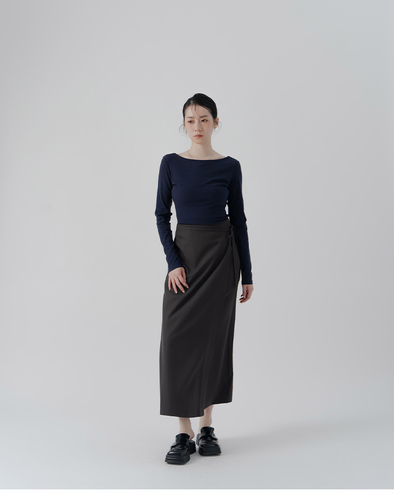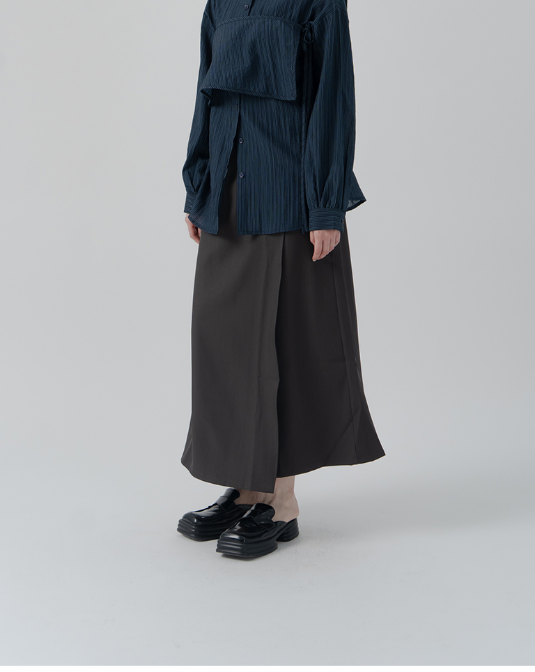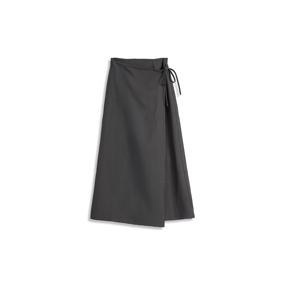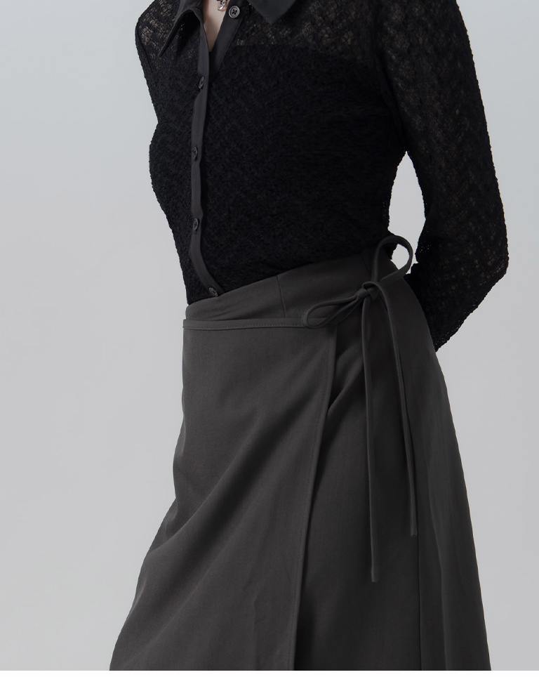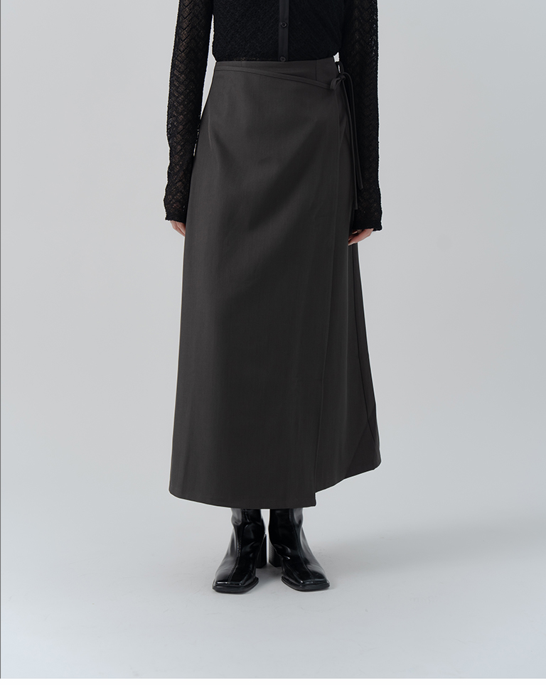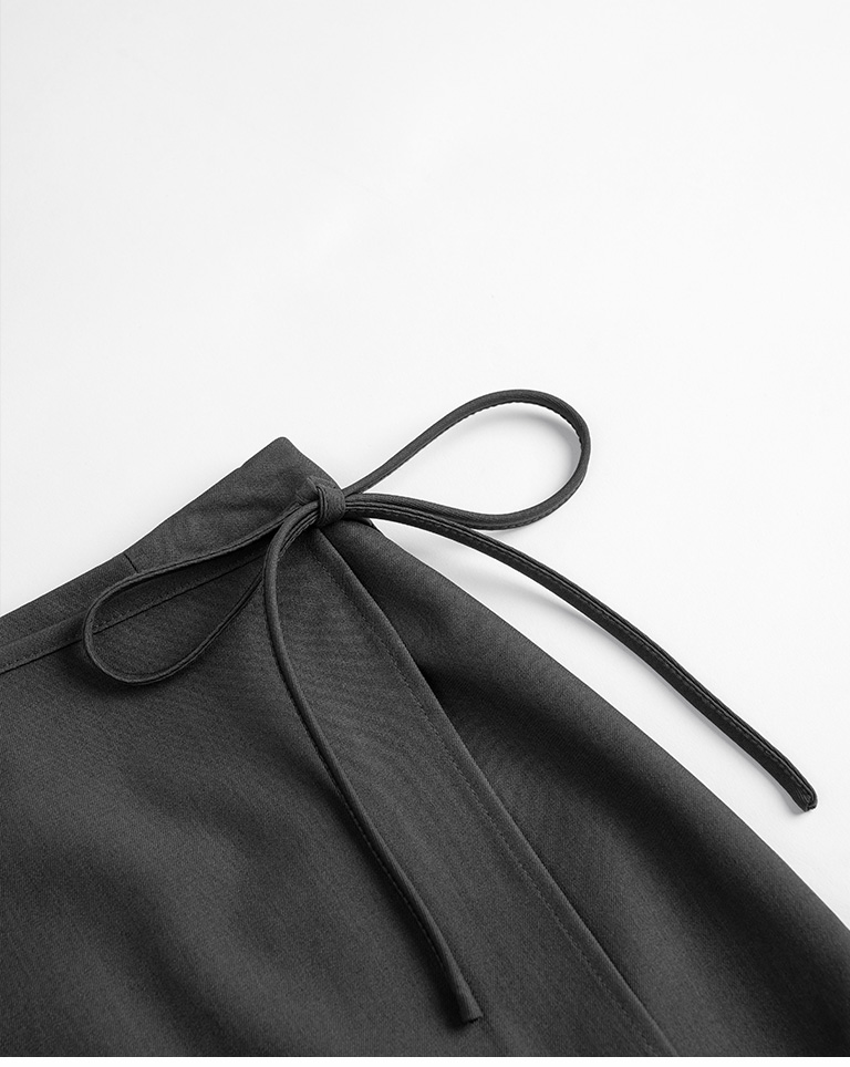 Plain Side Tie Slit Suit Long Skirt - Dark Gray S/M/L