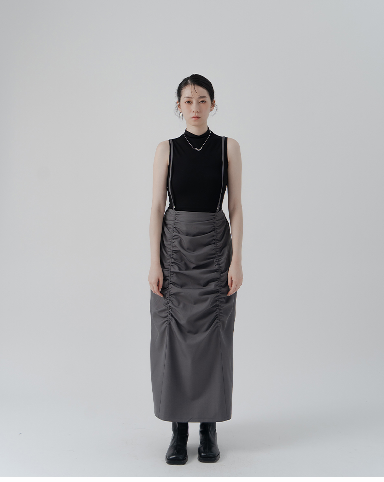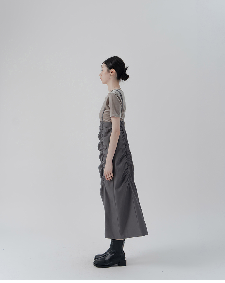 Wear more wrinkled tailored suspender skirt - dark gray S/M
