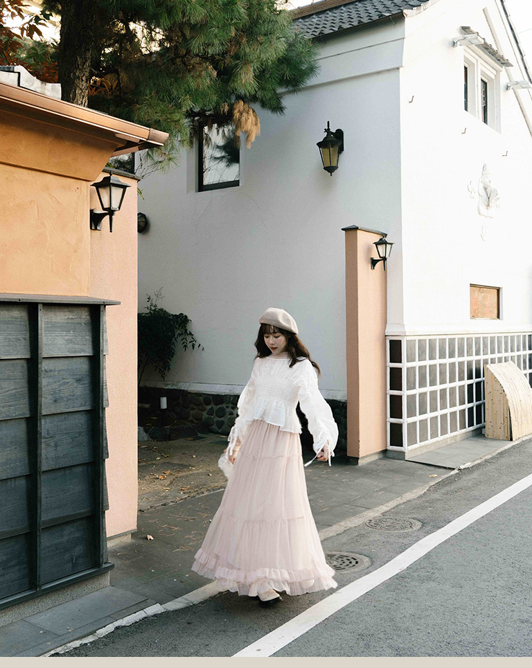 Q 3:您好 想請問粉色款抽皺上衣那款配的內搭上衣是哪款呢? 謝謝