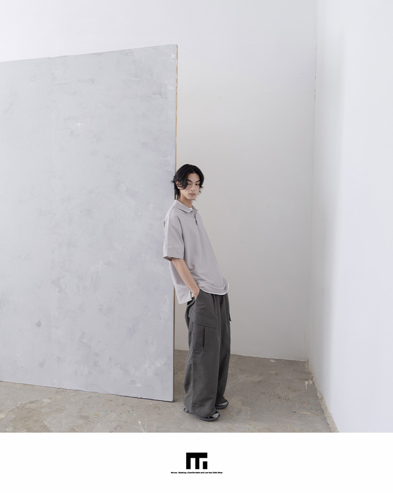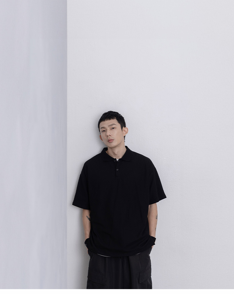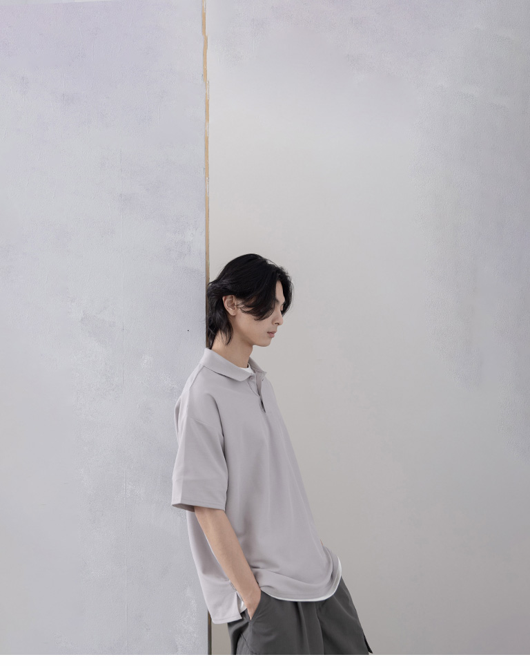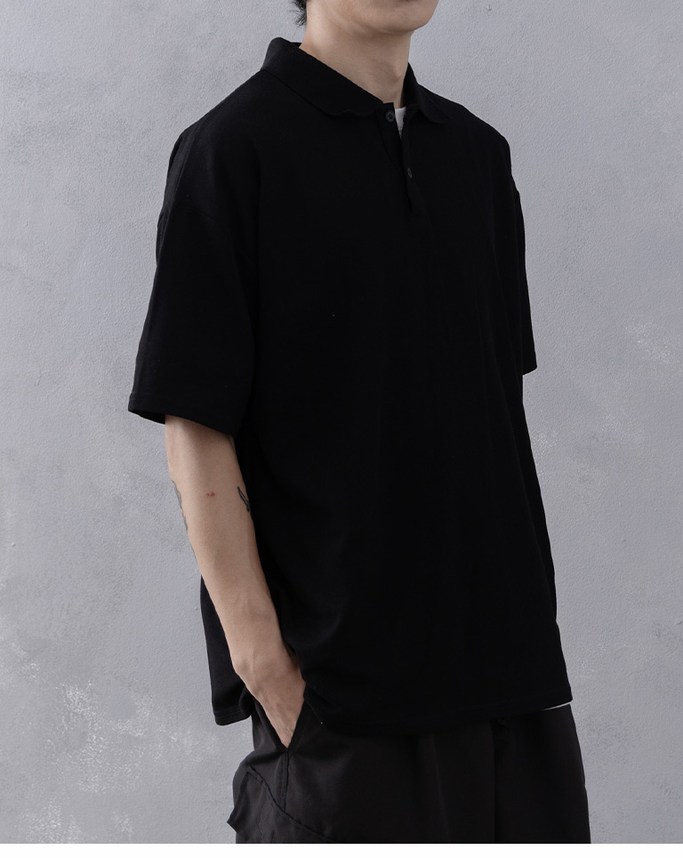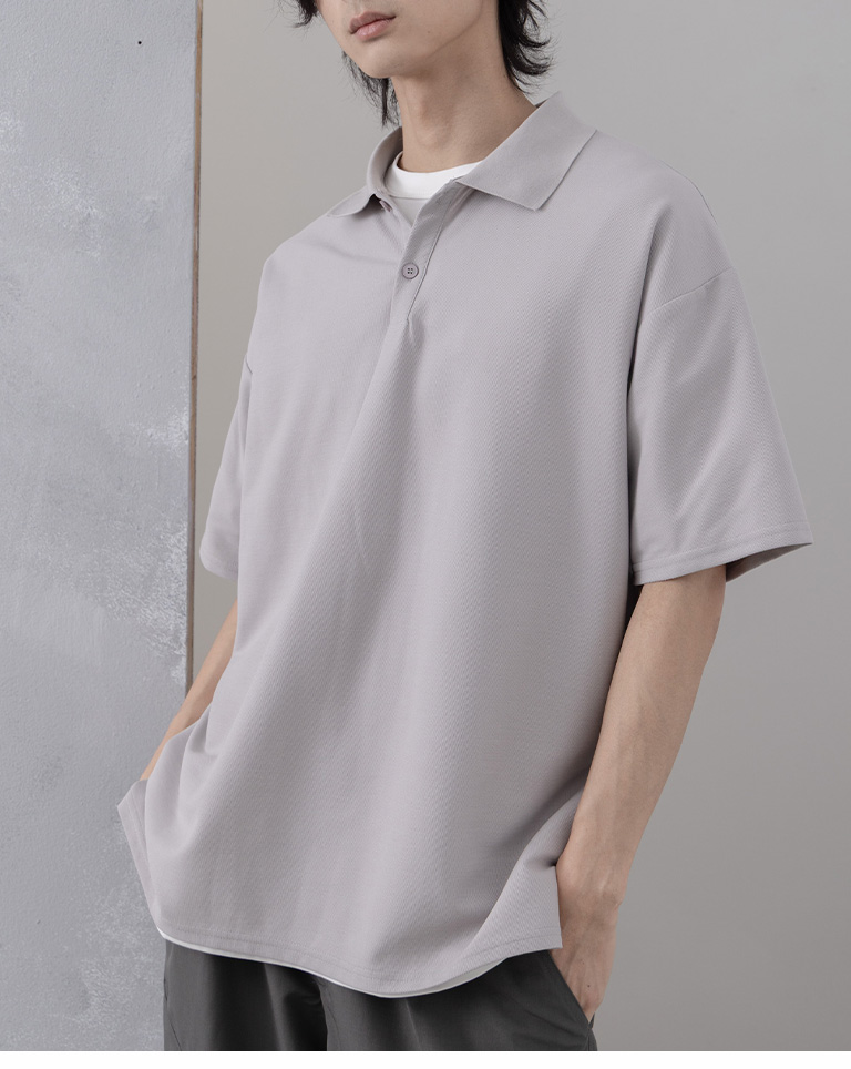 Men's simple Polo collar half placket top sold in two colors S-XL