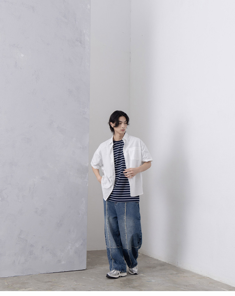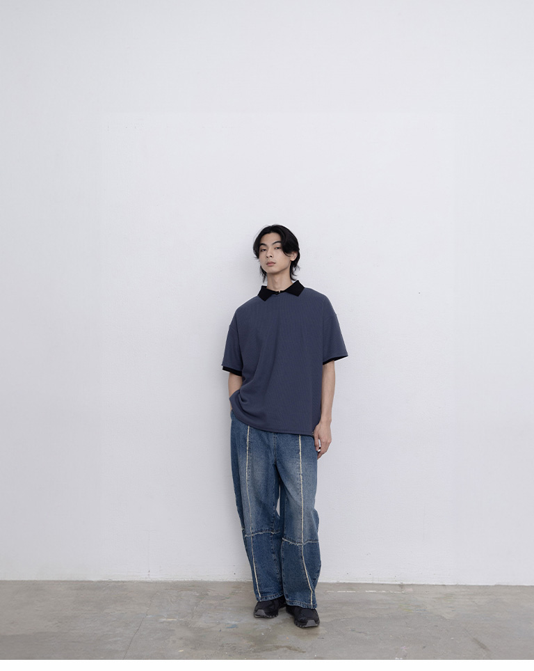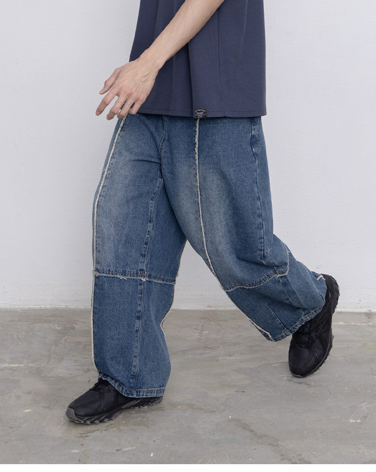 Men Washed Contrast Stitching Denim Pants M/L/XL