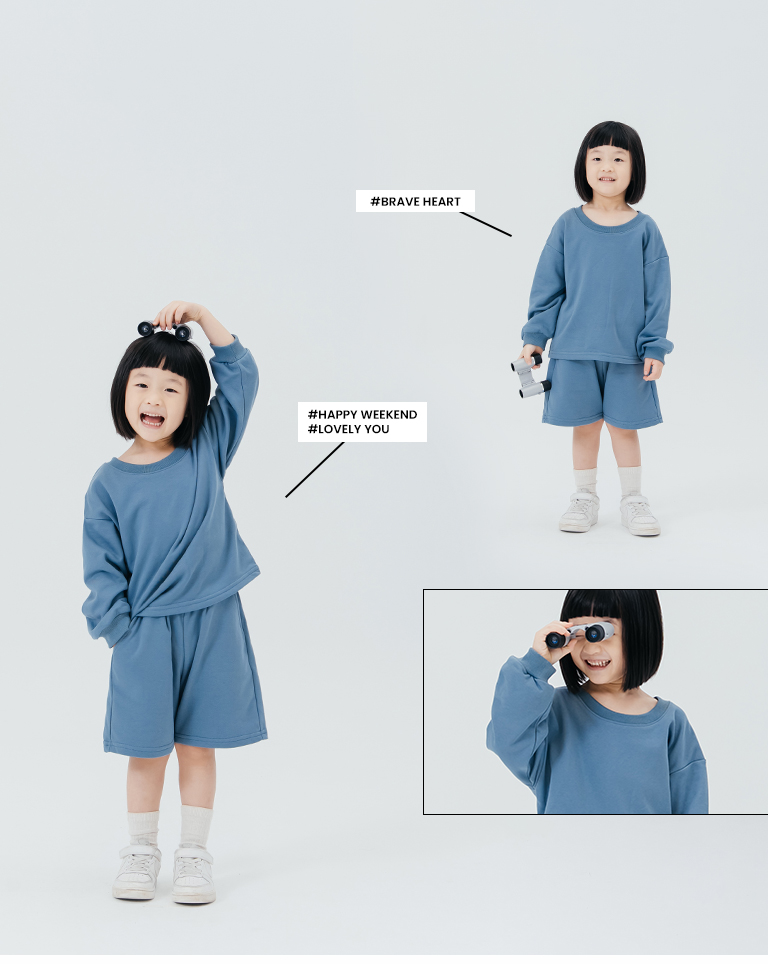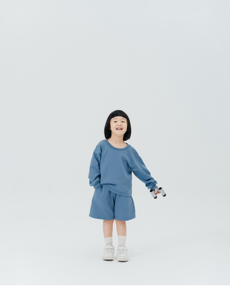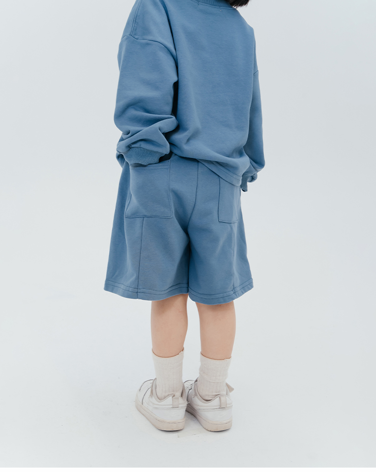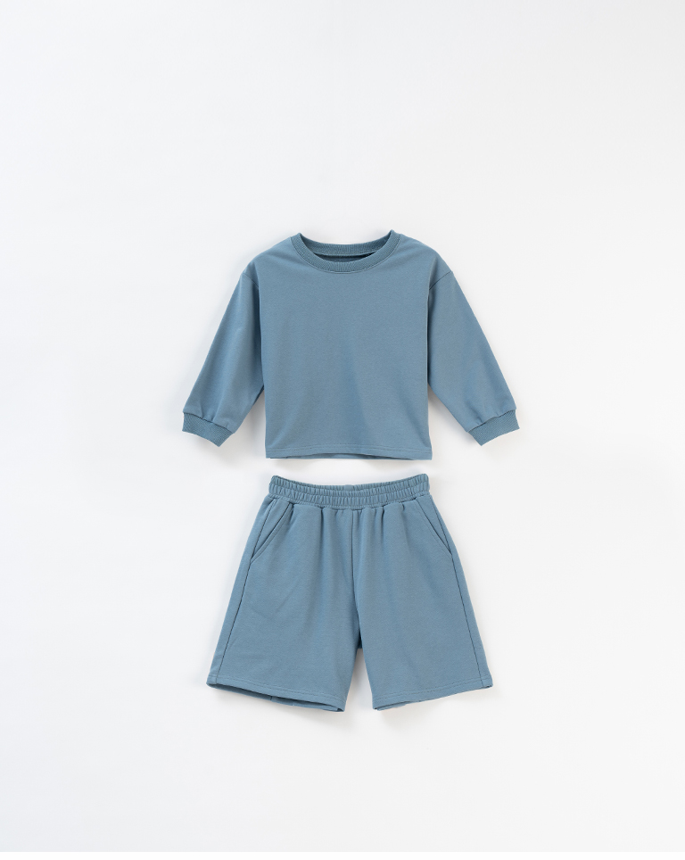 Kids Plain Casual Shorts Set - Blue M/L/XL
