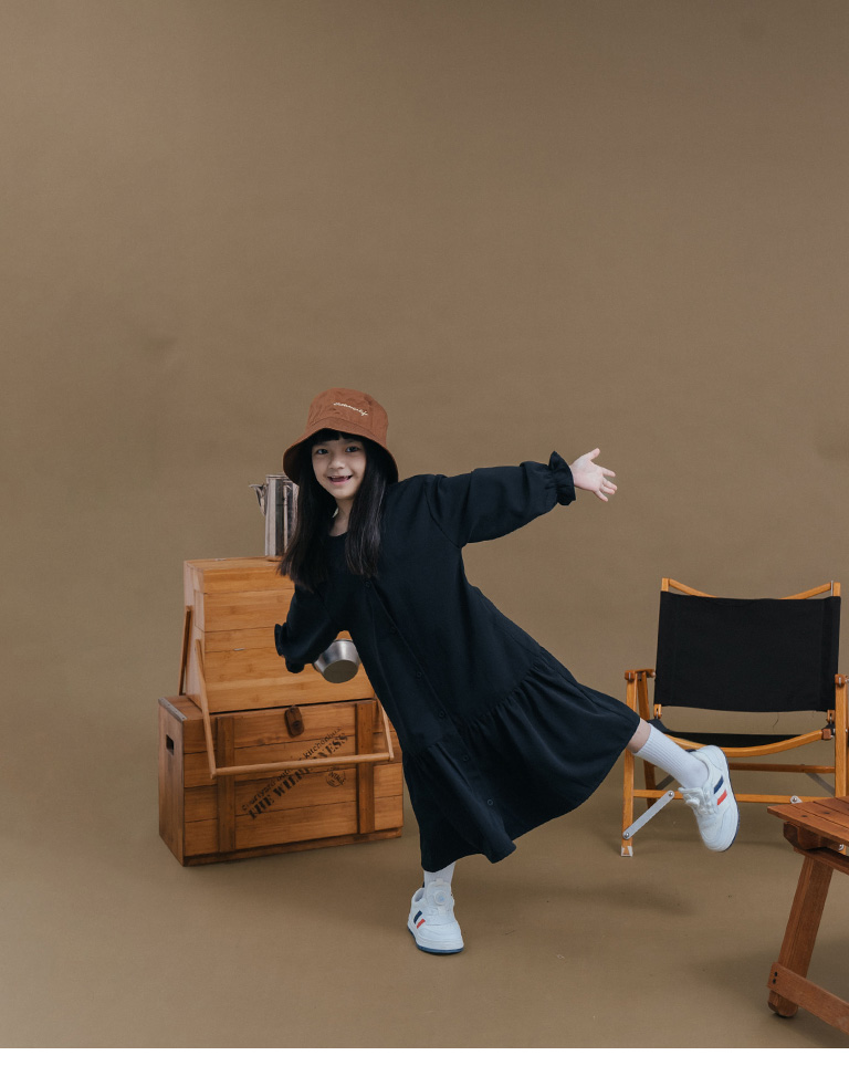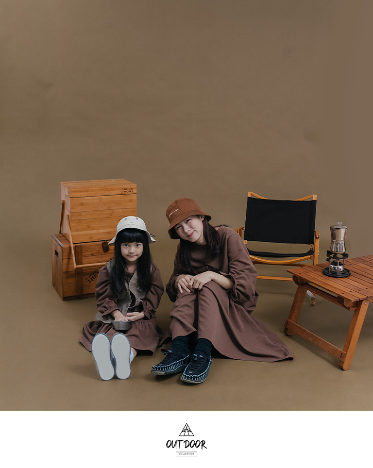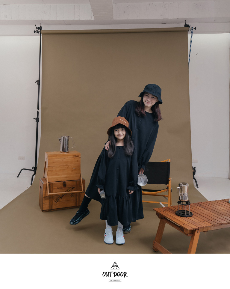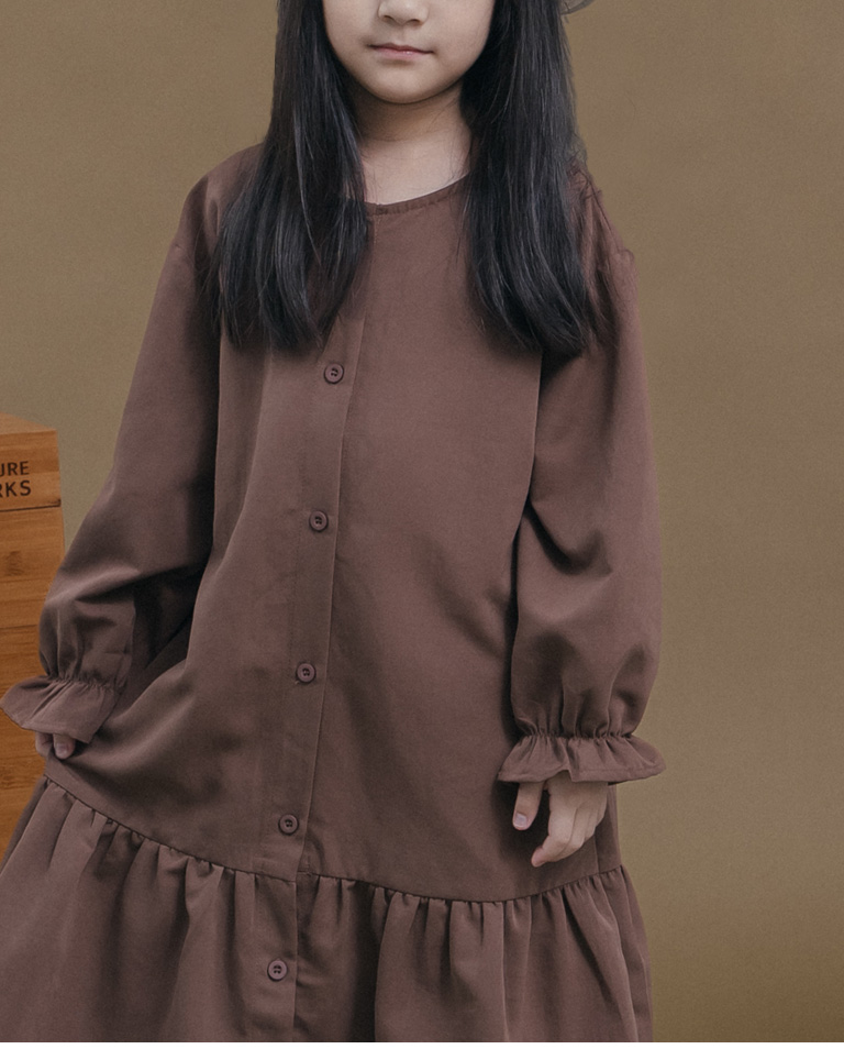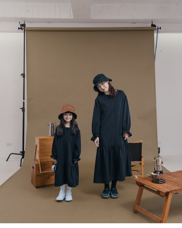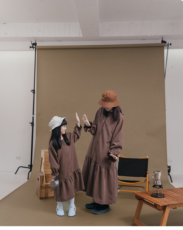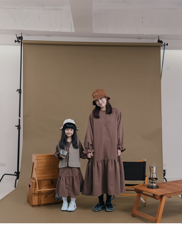 Children's Clothing Parent-Child Series Wrinkled Long Dress Sold in Two Colors M-XL