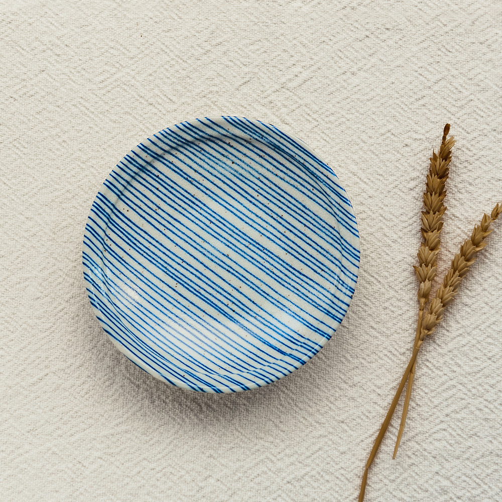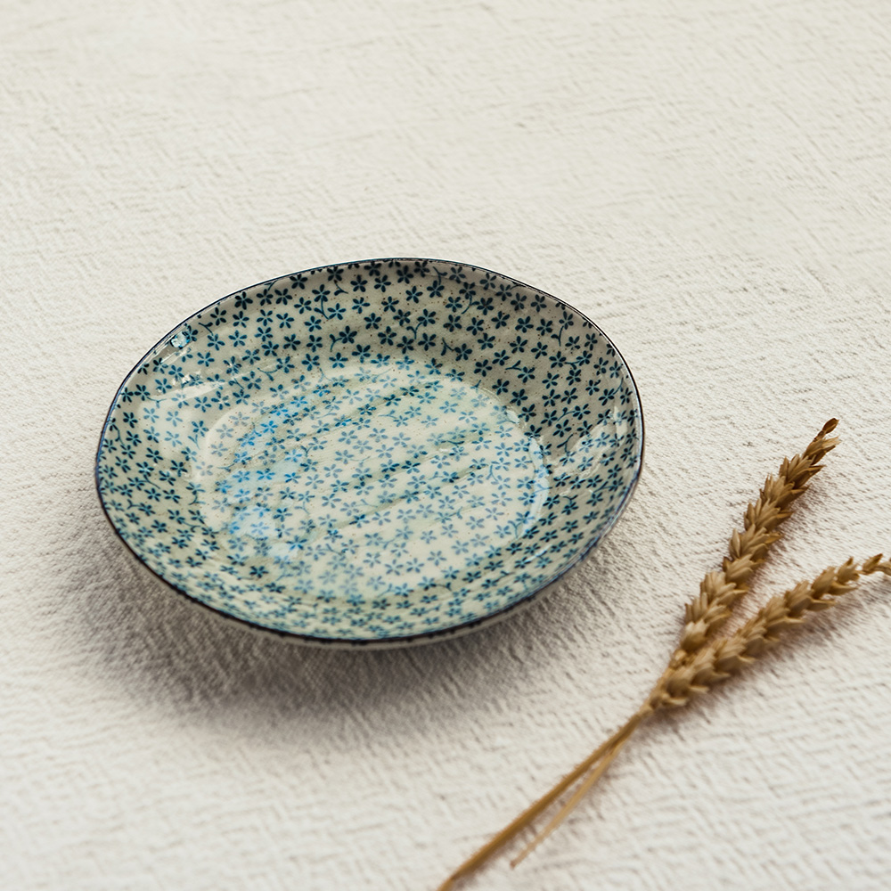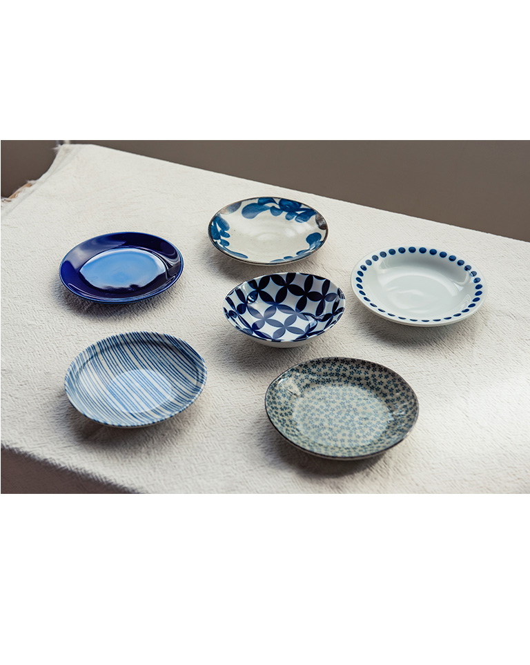 QS Daily Tableware Japanese blue glaze and wind pattern plate A-F