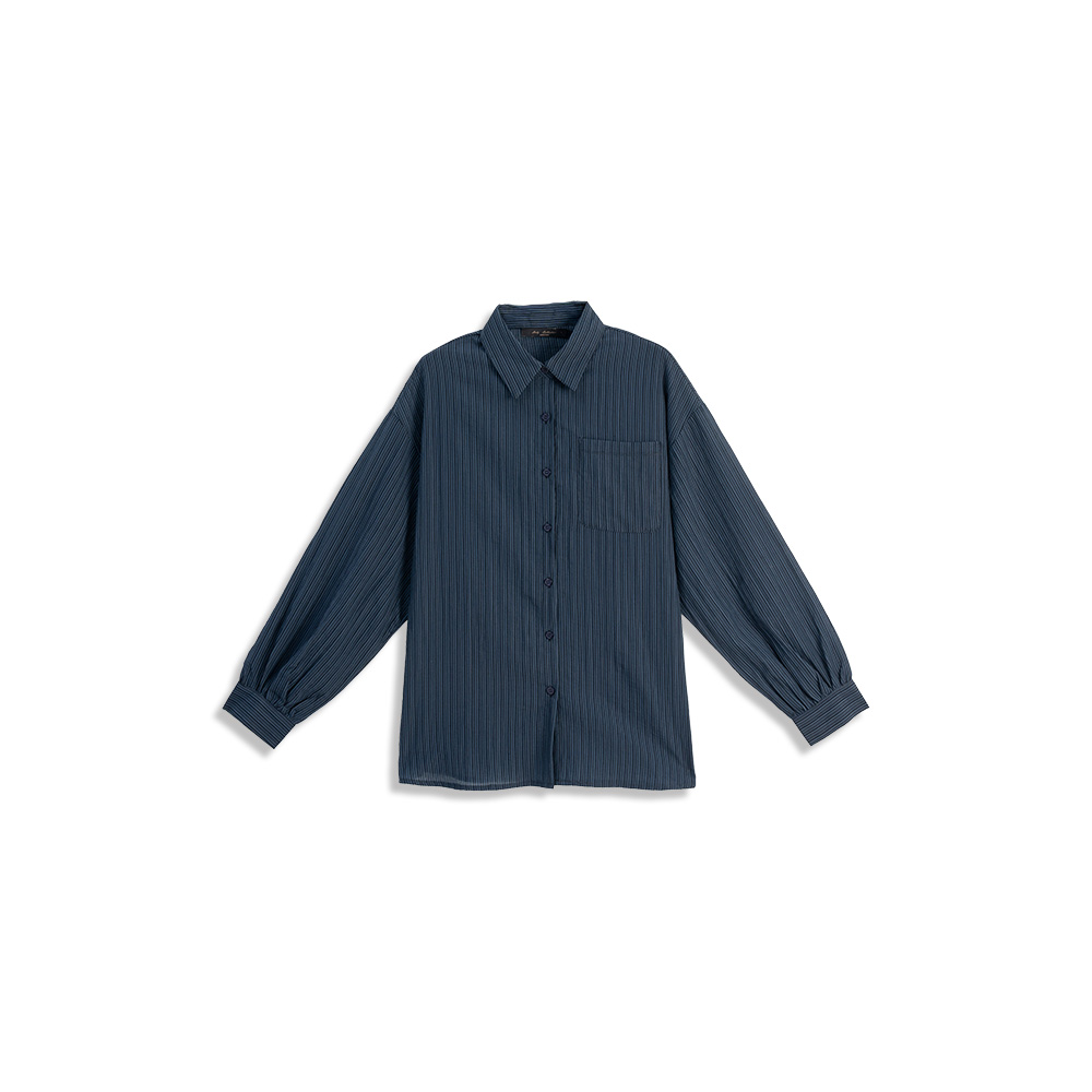 Slightly Shiny Striped Transparent Wide Shirt - Gray