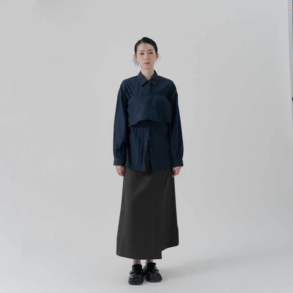 Straight Striped Two-Piece Shirt with Tulle Skirt - Blue