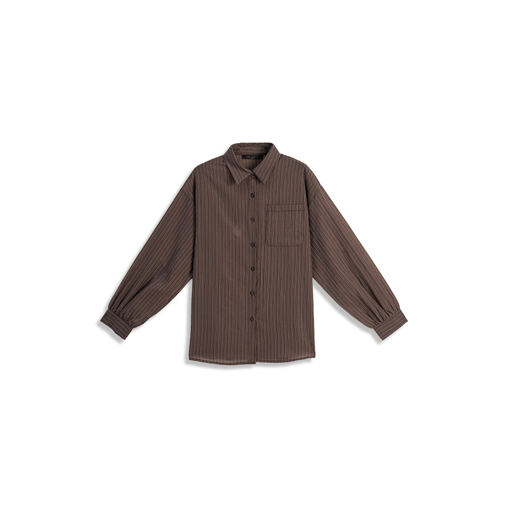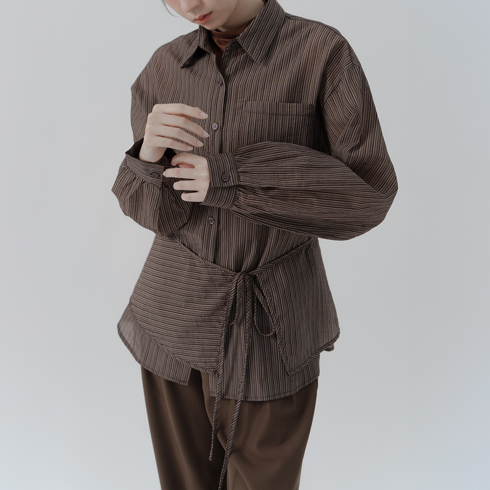 Straight Striped Two-Piece Shirt with Tulle Skirt - Brown