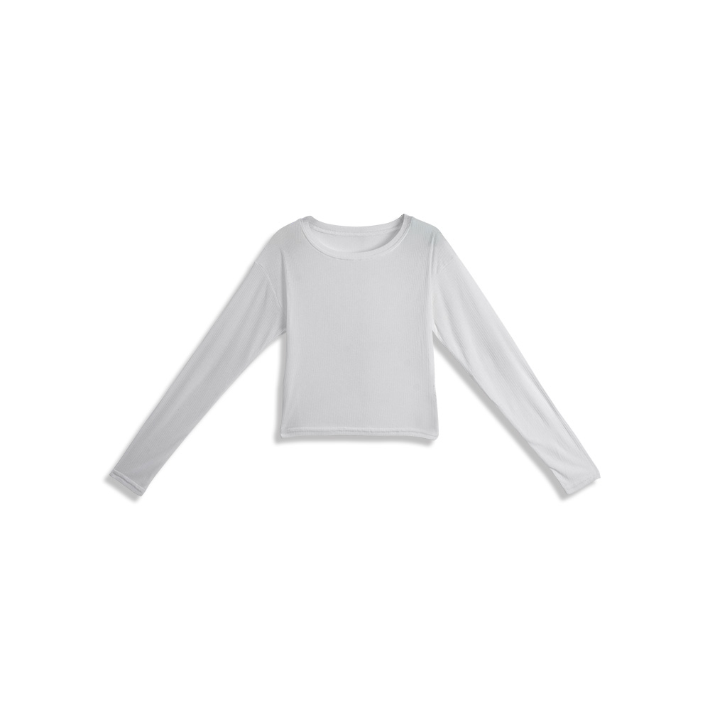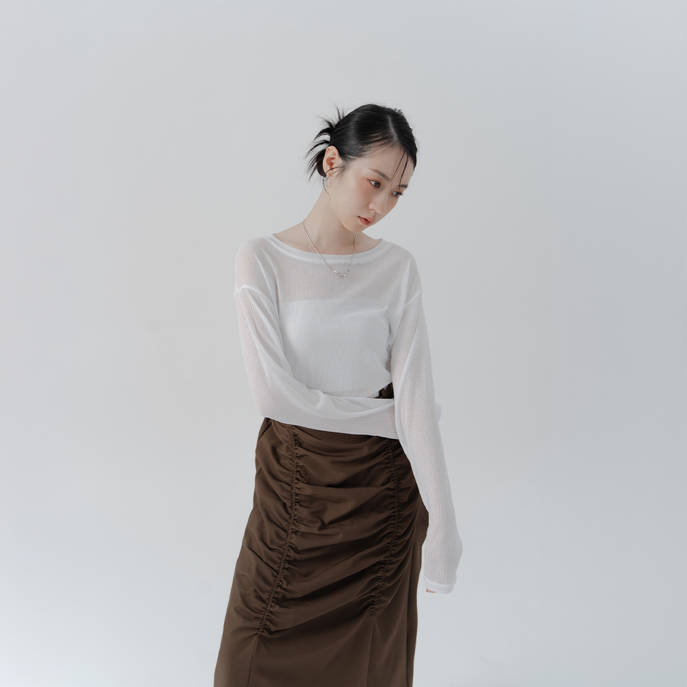 Straight Woven Slightly Transparent Knitted Long Sleeve Top - WhiteS/M/L