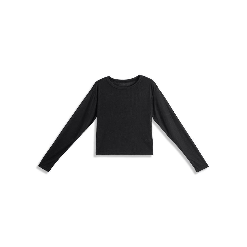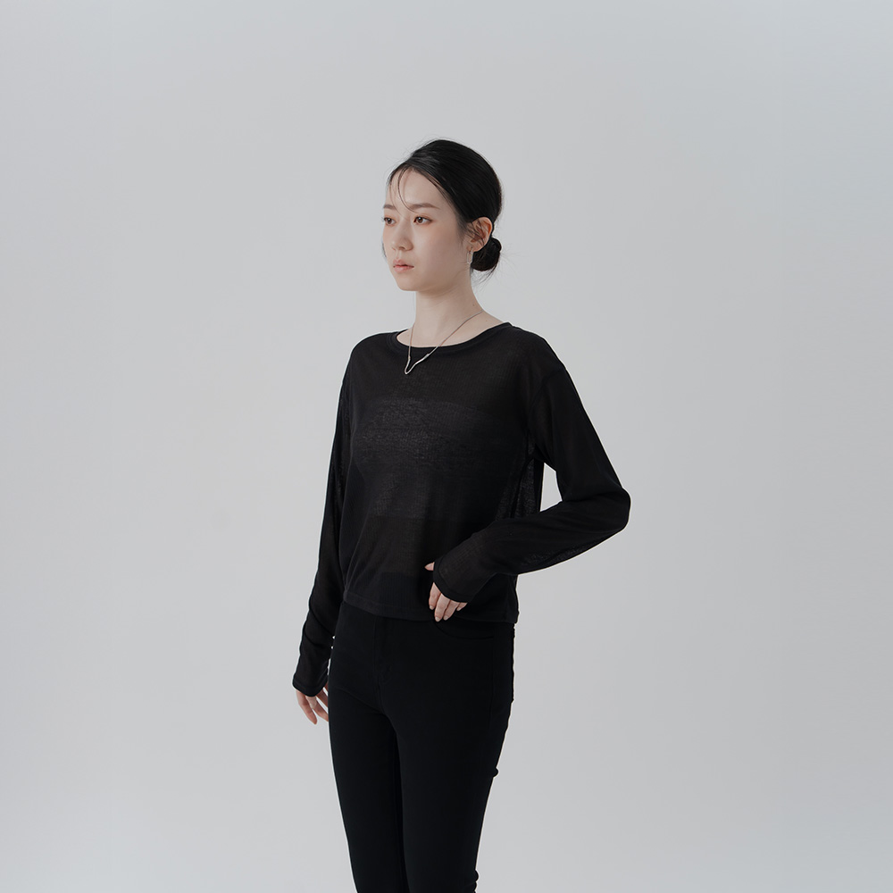 Straight Weave Slightly Transparent Knitted Long Sleeve Top - BlackS/M/L